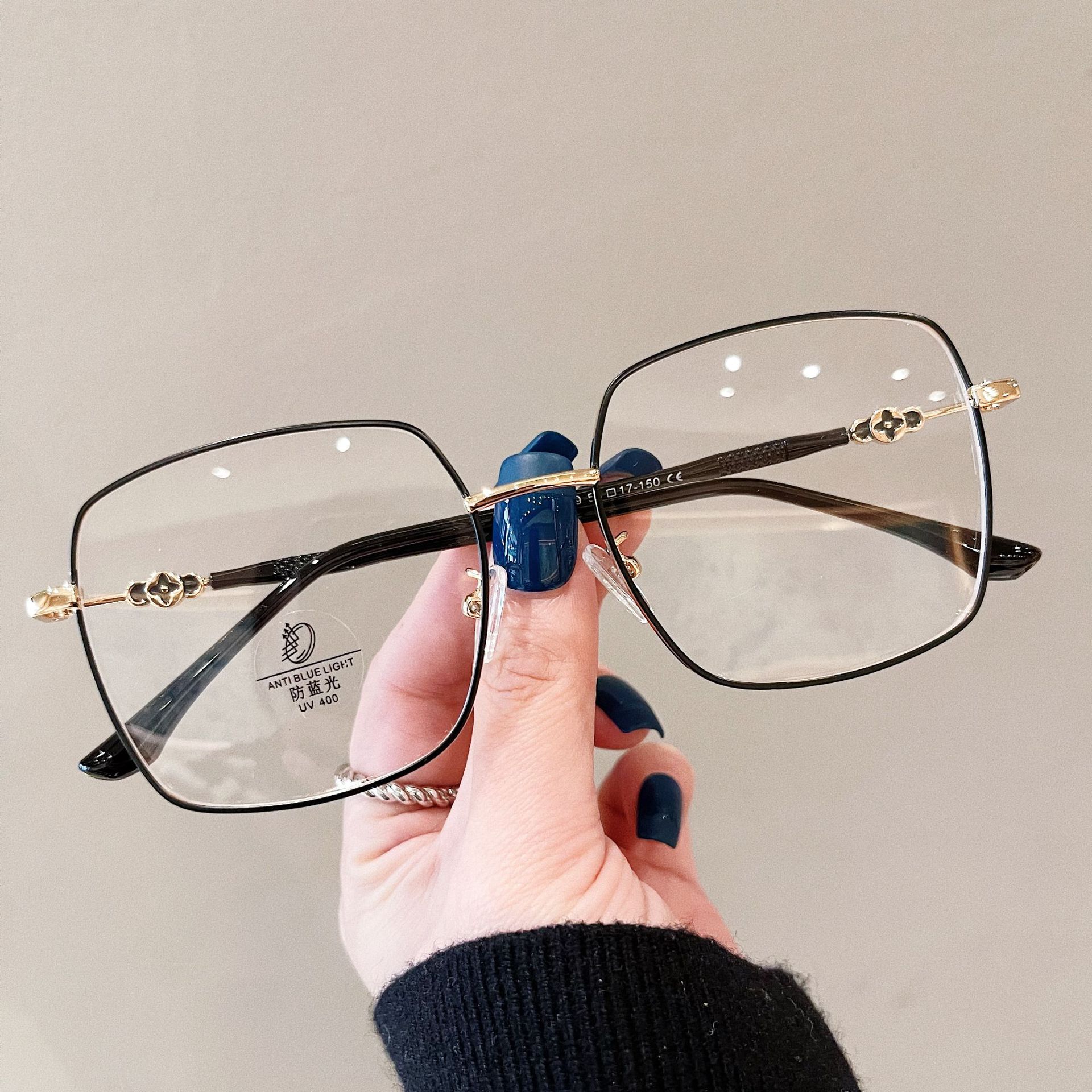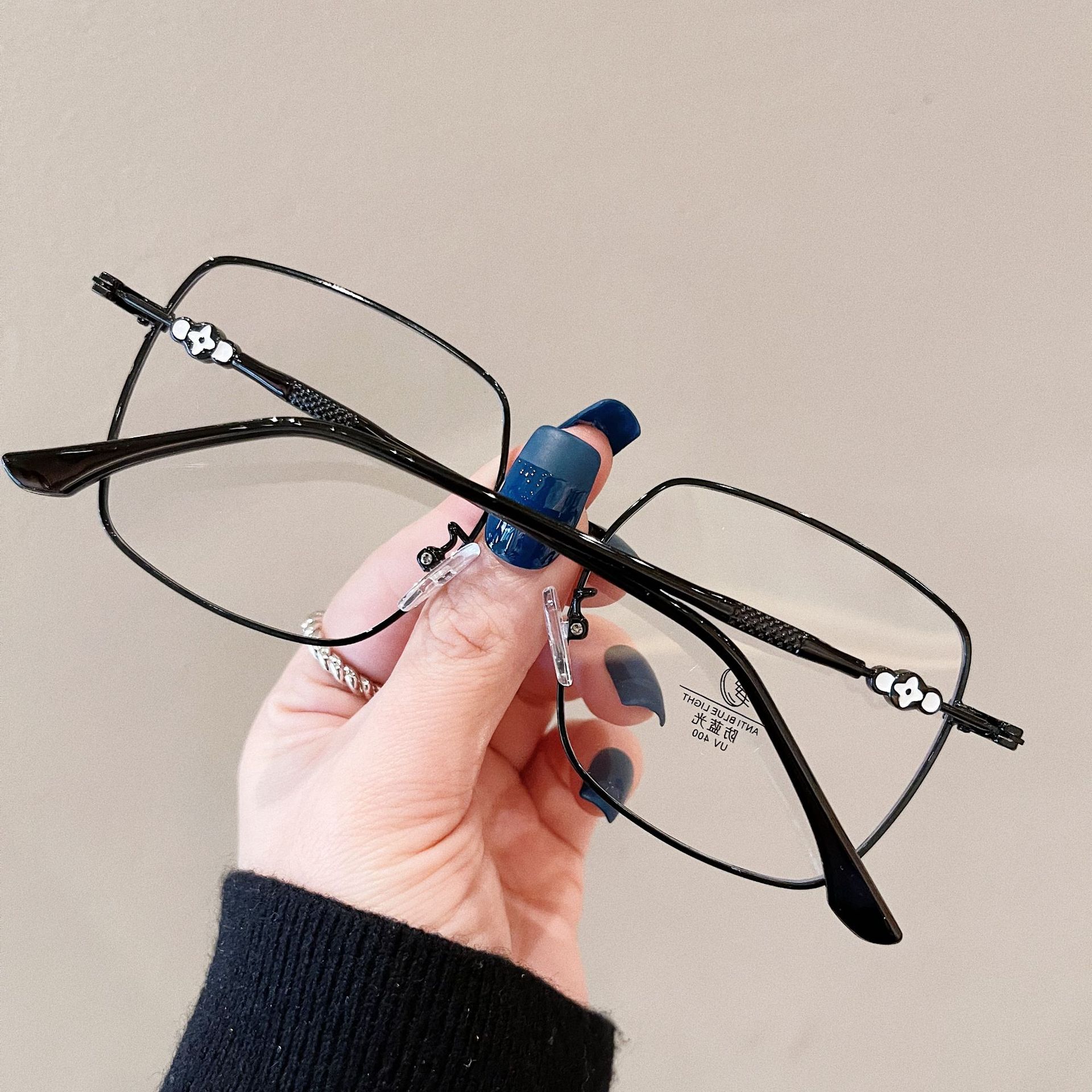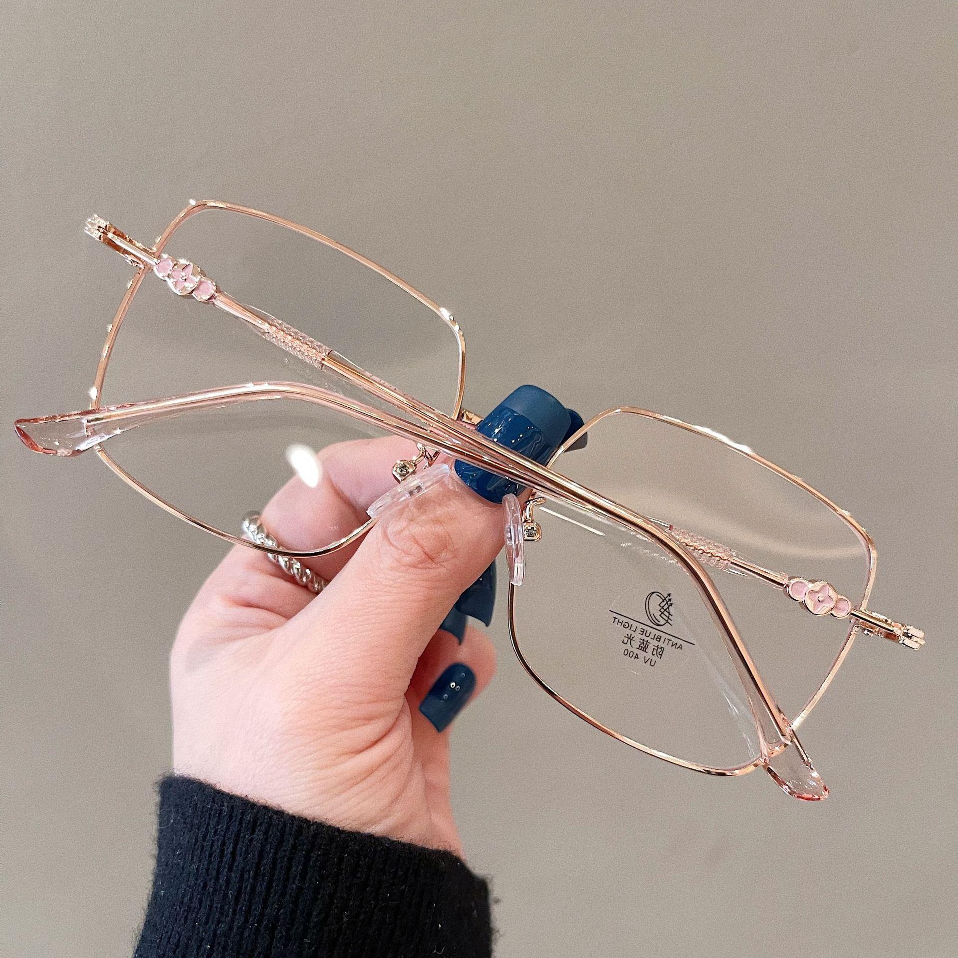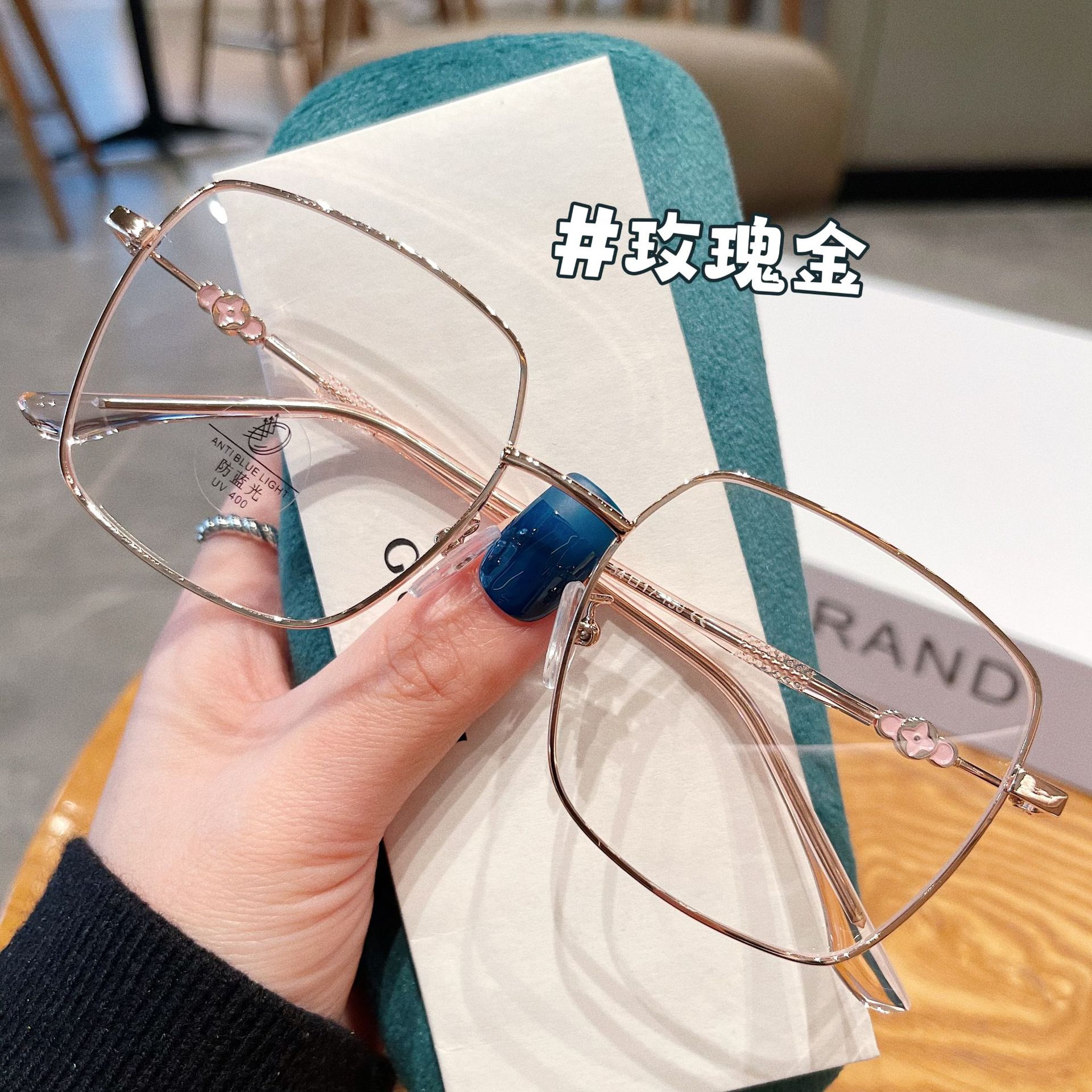 Las gafas para miopía de mujer se pueden equipar con lentes de protección para los ojos con grado anti-luz azul y anti-radiación, montura de seda dorada para mostrar rostros pequeños.