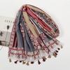 Otoño e invierno Nuevo pañuelo étnico bohemio con borlas de algodón y lino para mujer, chal de viaje, bufanda larga, venta al por mayor al contado