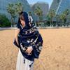 Bufanda de orejas de nuevo estilo, versátil, de doble cara, estilo coreano, para mujer, con cinta decorativa intercalada, pequeña, estampada