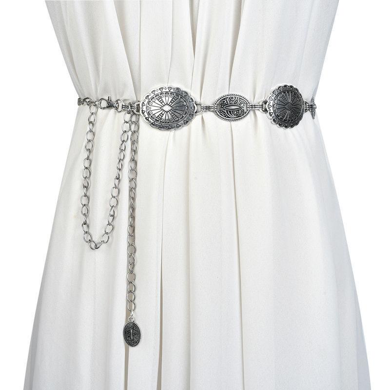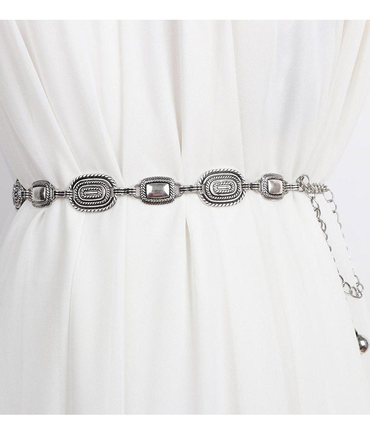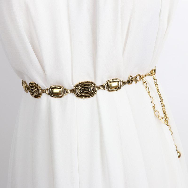 Cadena de cintura de metal retro francesa con diseño transfronterizo europeo y americano para mujer, cadena decorativa para cinturón con falda, camisa y pantalones.
