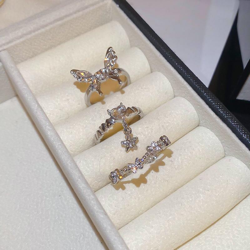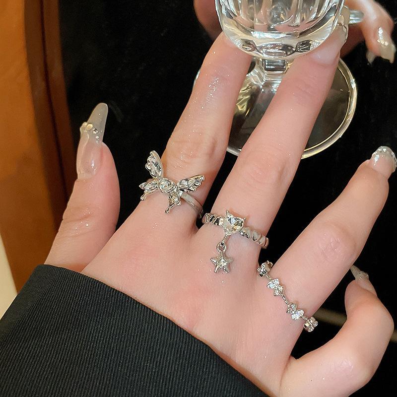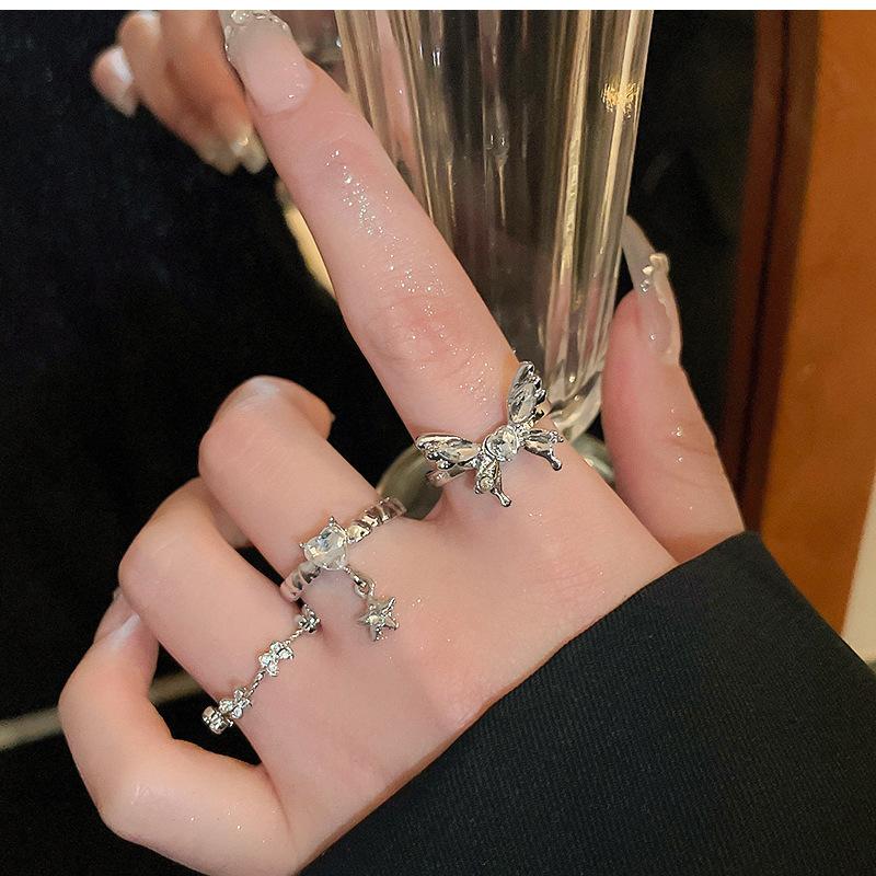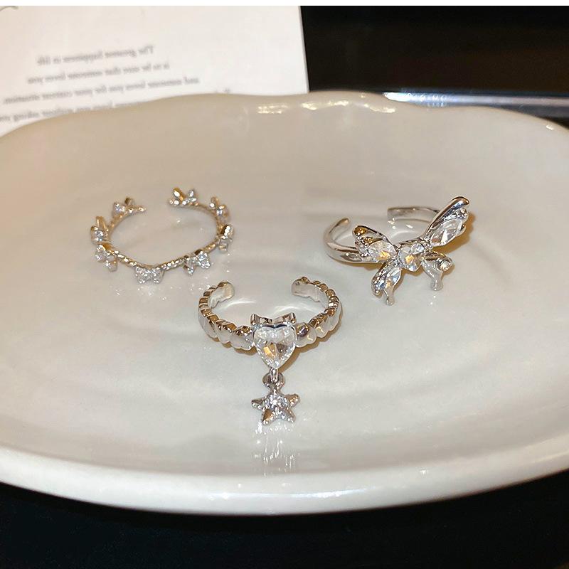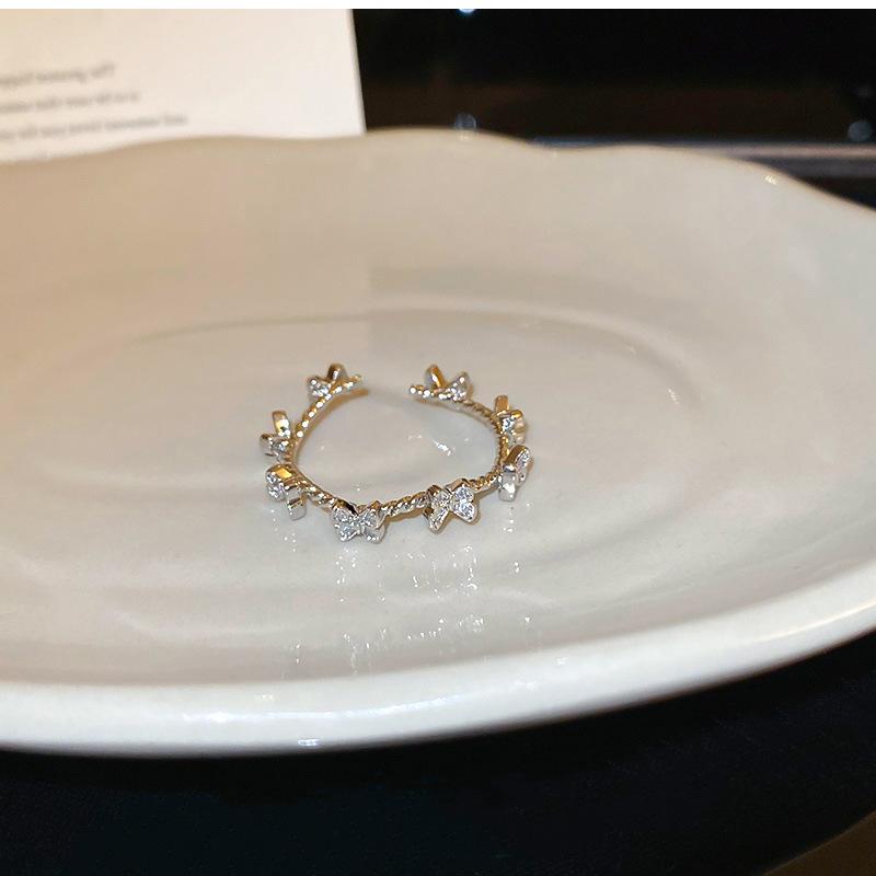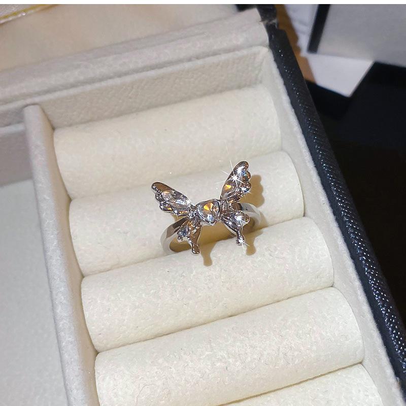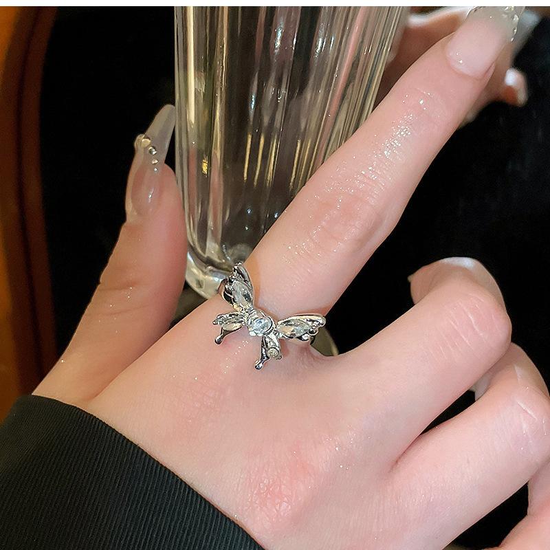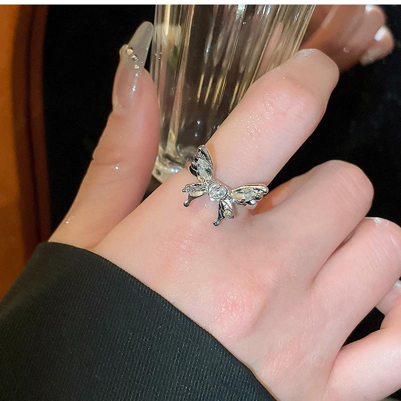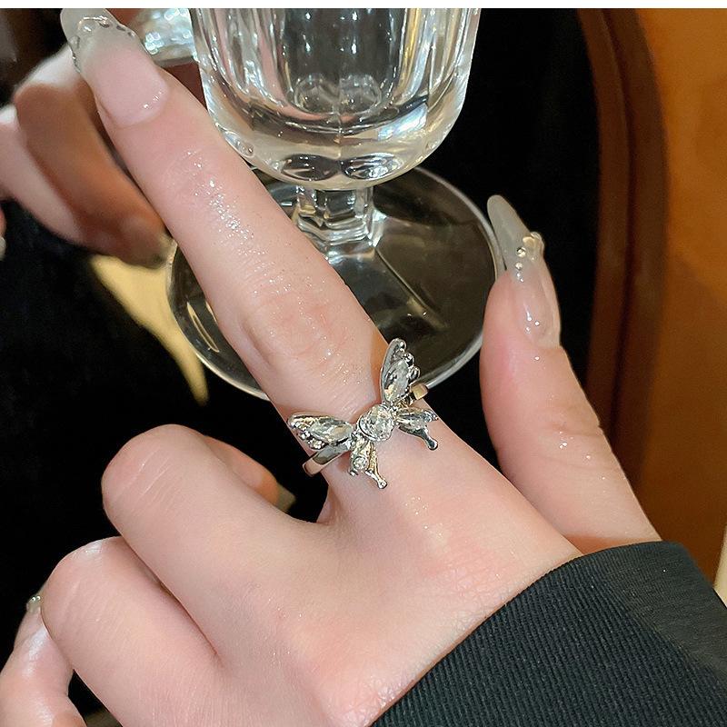 Anillo Abierto de Diamantes Mariposa Amor Luz Anillo de Dedo Moda de Lujo Exquisito de Alta Gama Nuevo Estilo Joyería de Anillo para Mujeres