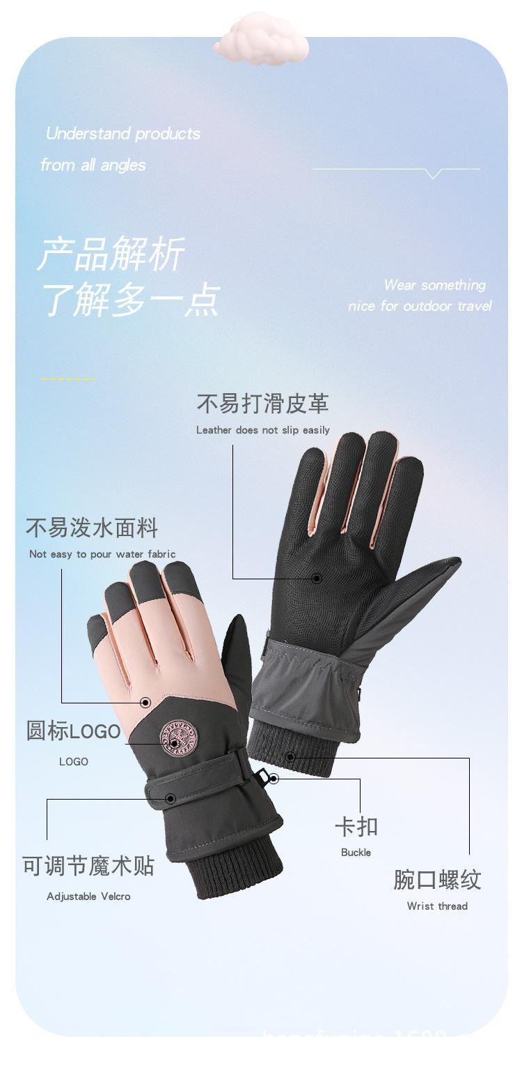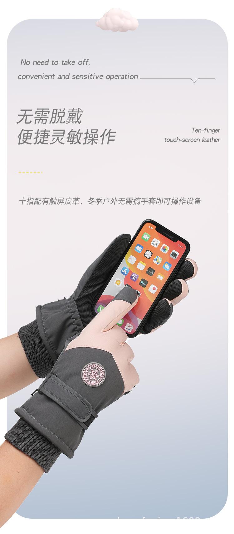 Winter outdoor travel, cycling, sports, skiing, fleece-linedthickened, heattech wind-resistant, cold-proof gloves