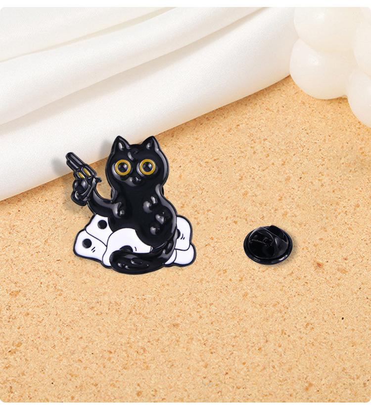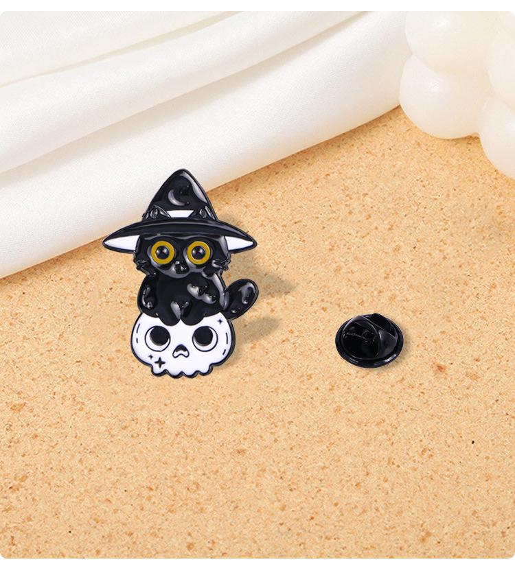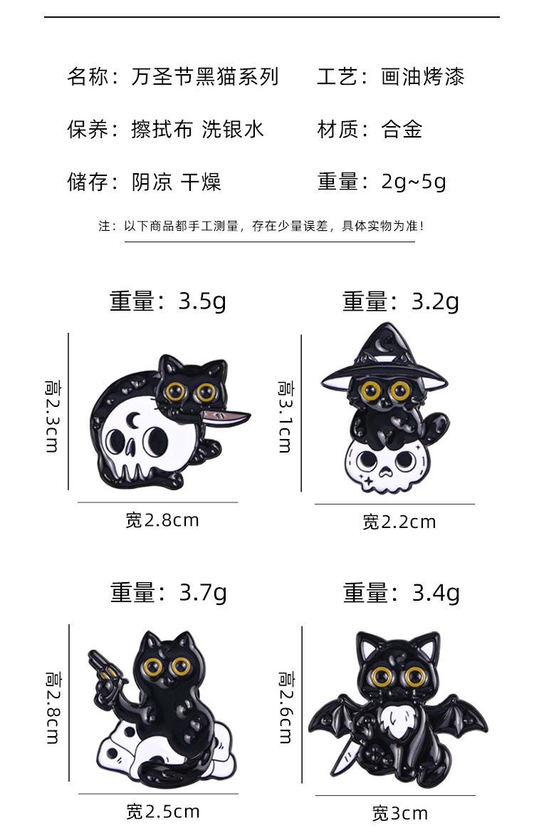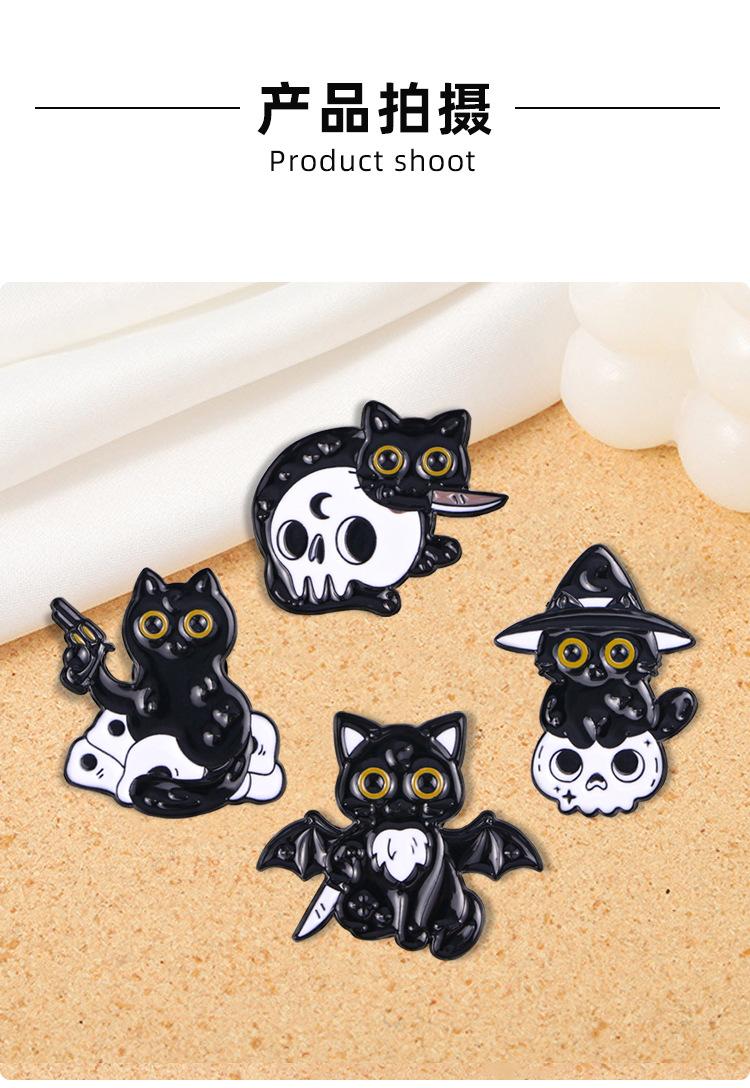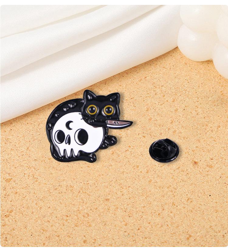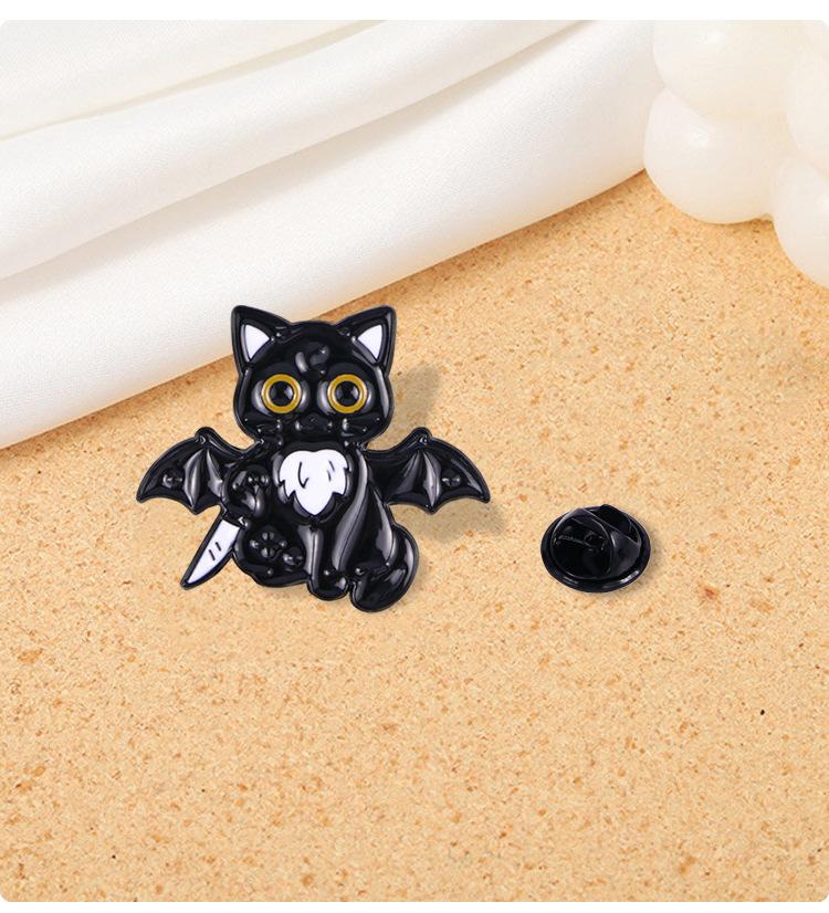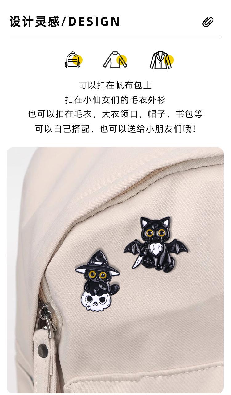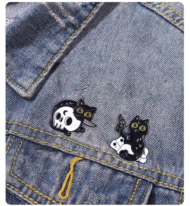 Broche de gato Wansheng creativo personalizado de dibujos animados, insignia de gato negro de murciélago de calavera divertida, accesorios de bolsa con goteo de aceite