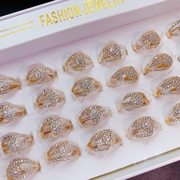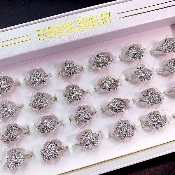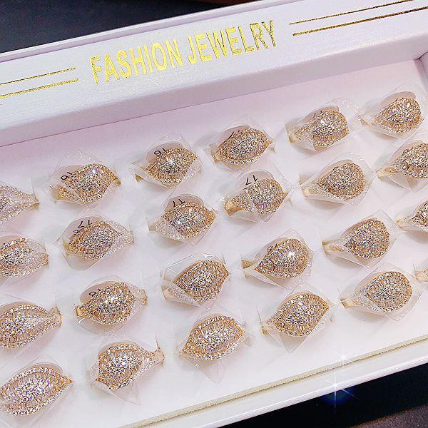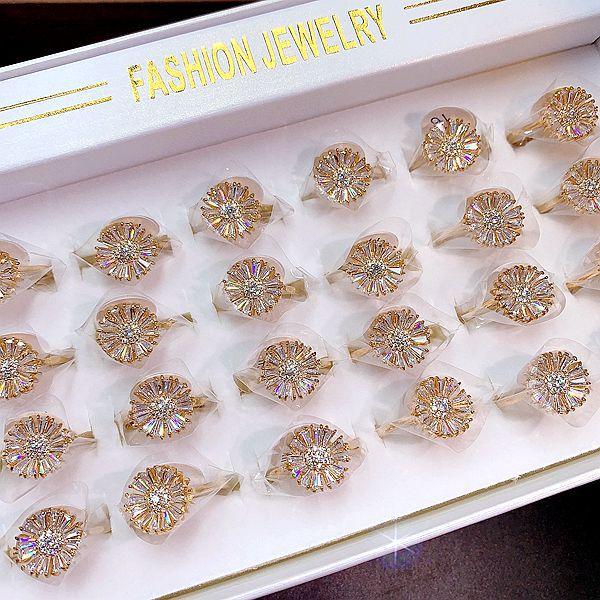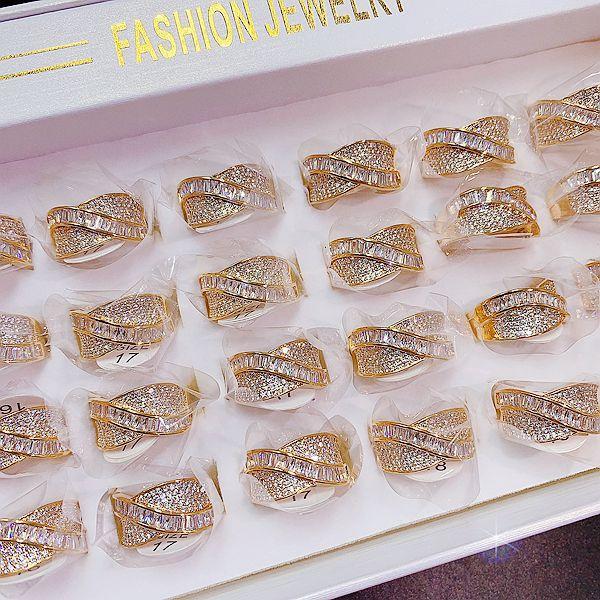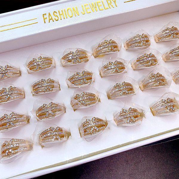 Este anillo es un anillo de circonitas micro-incrustadas súper brillante. La parte metálica es galvanoplastia real que conserva el color dorado, que tiene un buen efecto de retención del color y está disponible en dorado y plateado. Los anillos se venden en múltiplos de 24 por caja. Puede pedir un solo estilo y tallas mixtas, o puede pedir estilos mixtos y tallas mixtas. Si desea un solo estilo y tallas mixtas, por favor deje un mensaje. Si no deja un mensaje, ¡serán estilos mixtos por defecto!