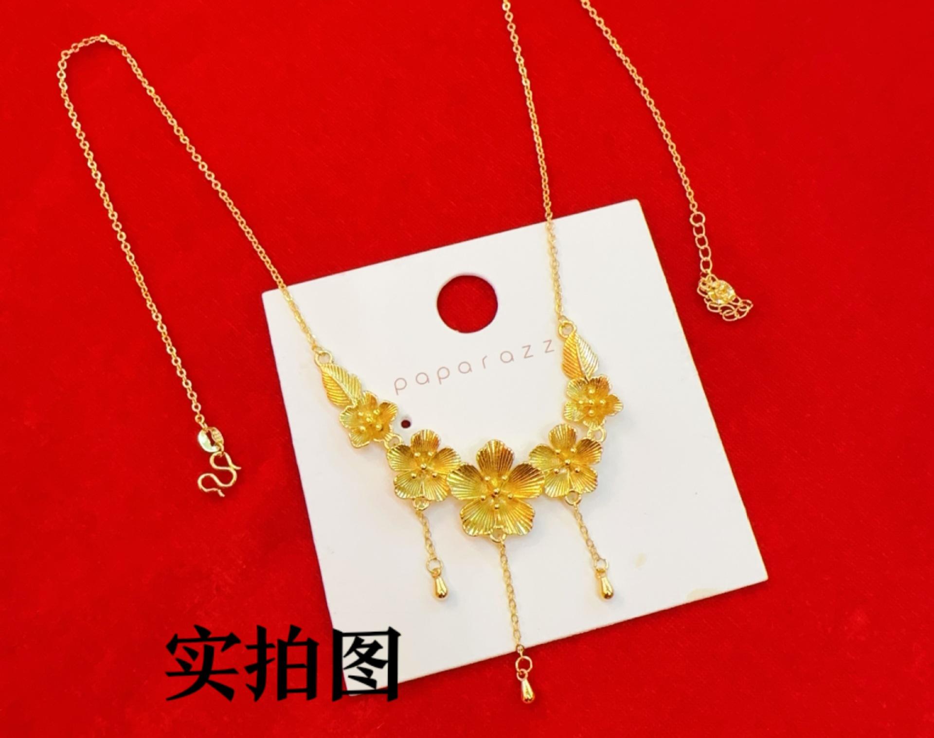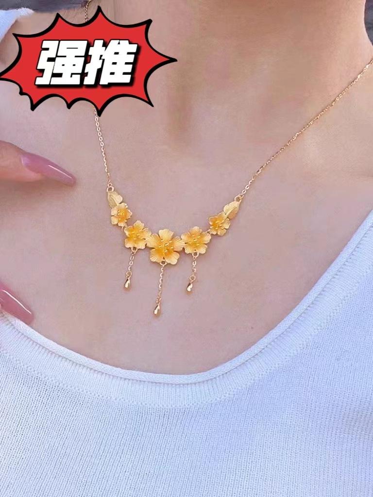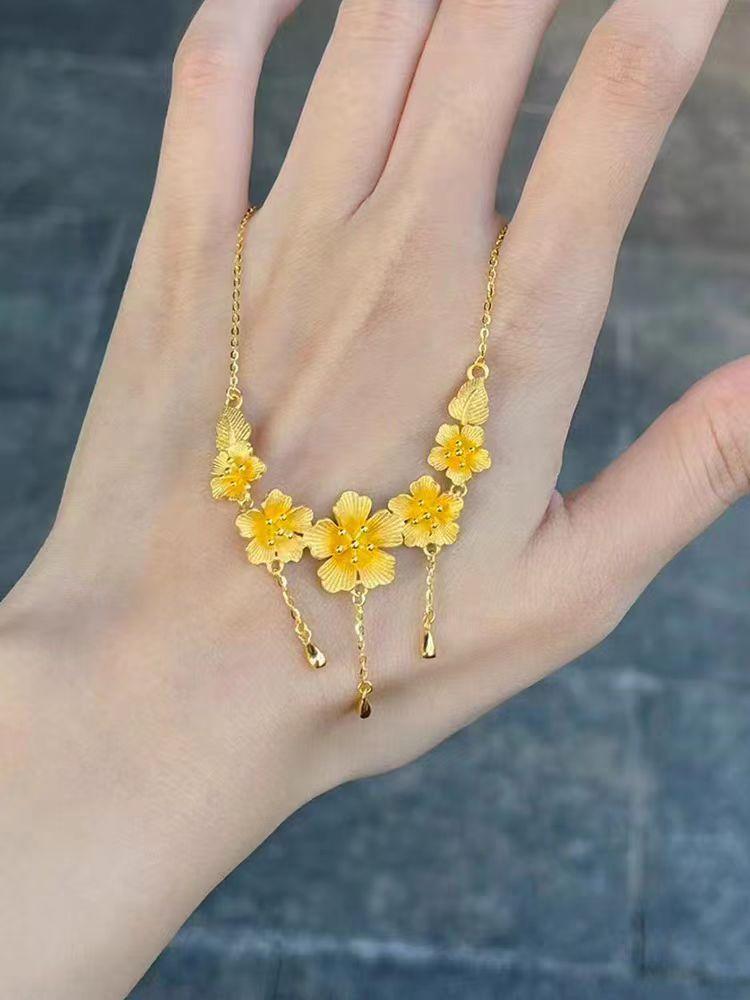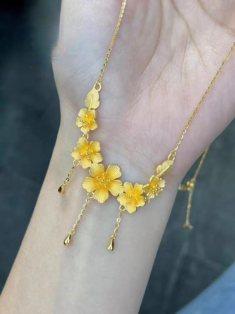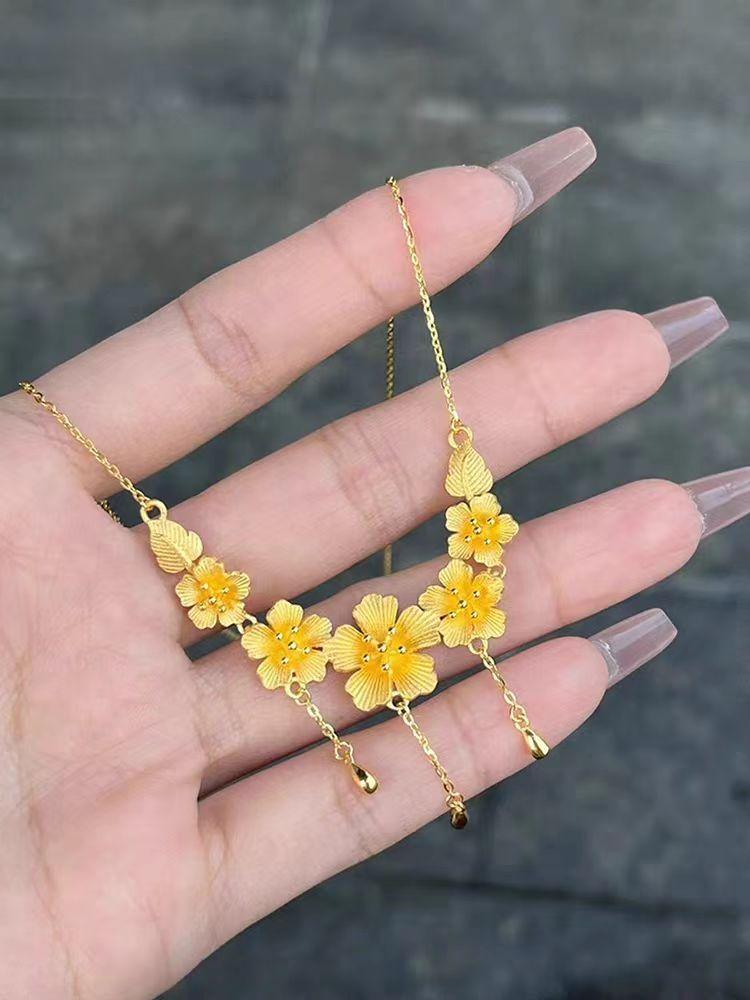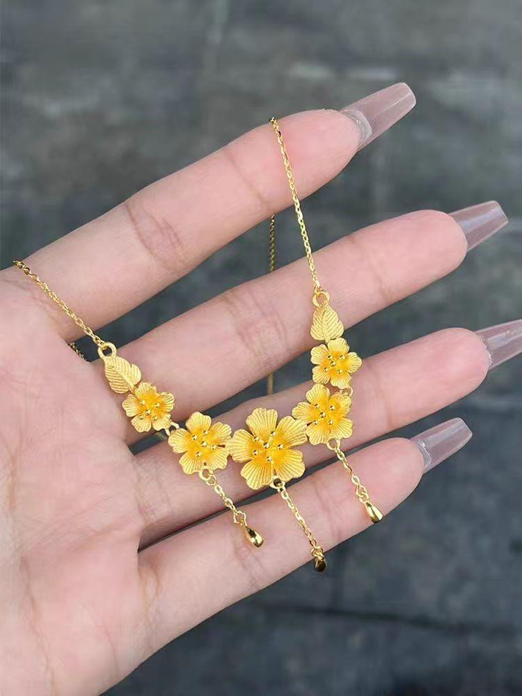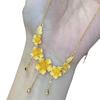 Collar de brocado con forma de flor dorada, cadena de flores chapada en oro, colgante de cadena de clavícula elegante y de moda para mujer, joyería de boda