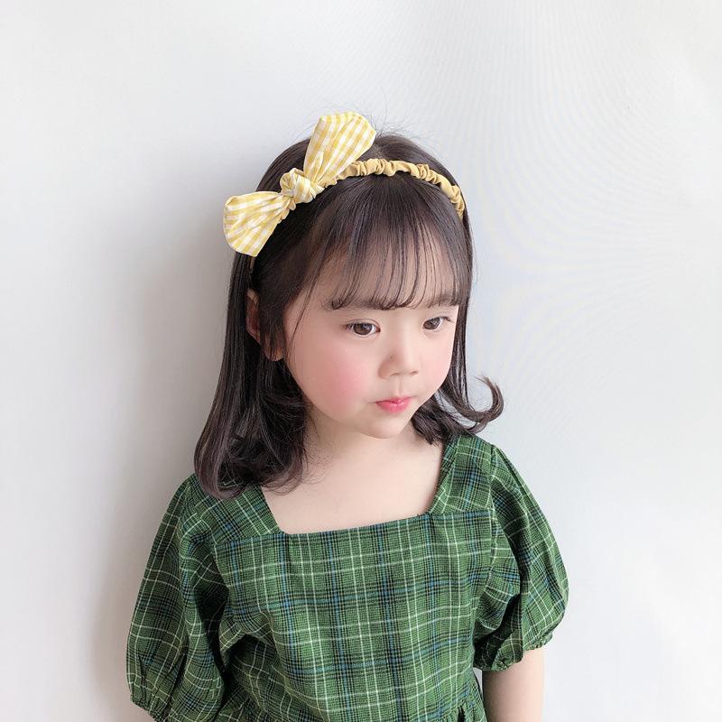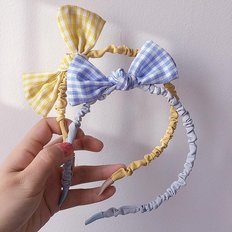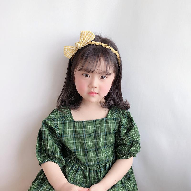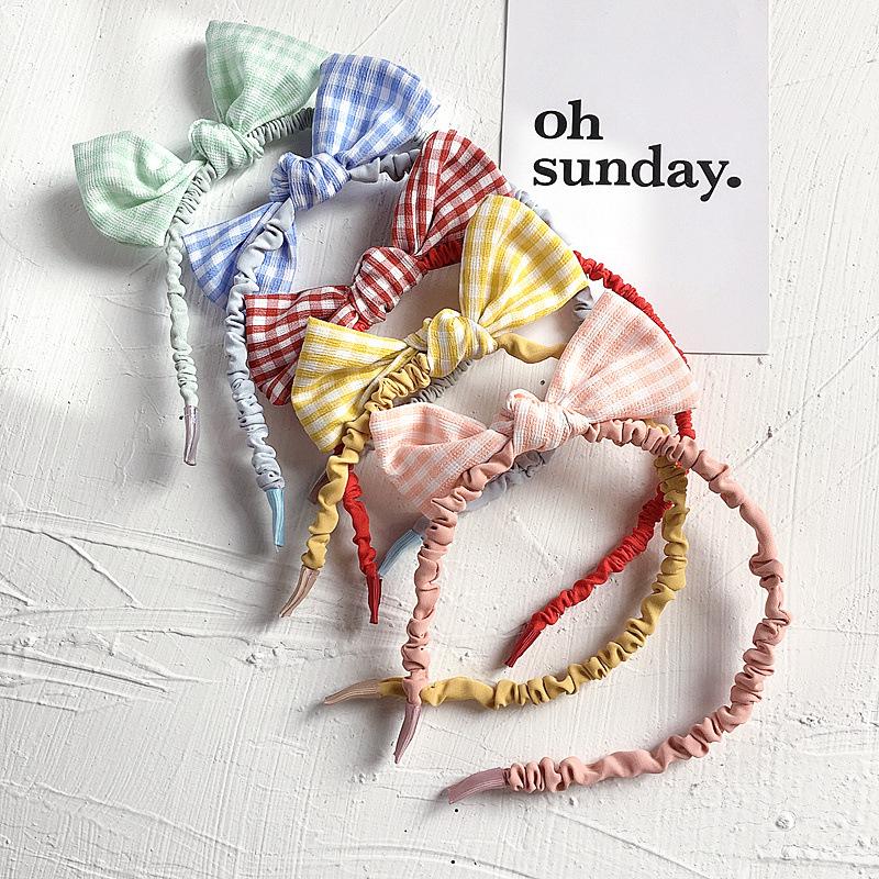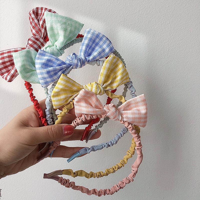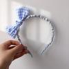 Diadema de flores de estilo coreano para niñas, bonita diadema de bolas de pelo a cuadros para estudiantes, accesorios para el cabello de bebés, tela dulce para niñas