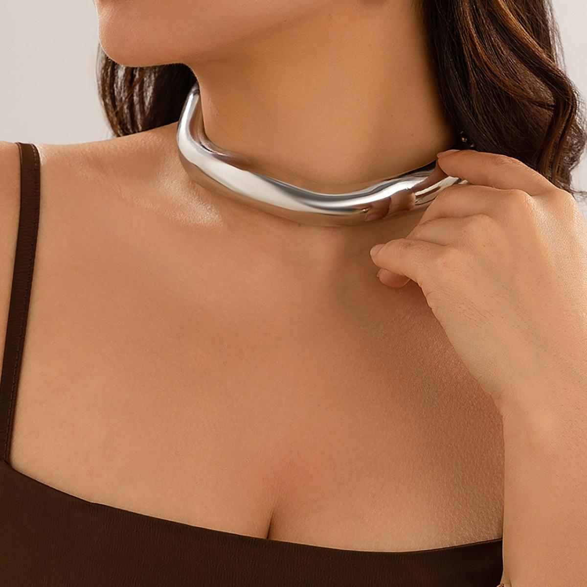 Gargantilla con superficie fotosensible y textura de nicho de moda con cuello abierto ondulado de metal de diseño transfronterizo entre Europa y Estados Unidos