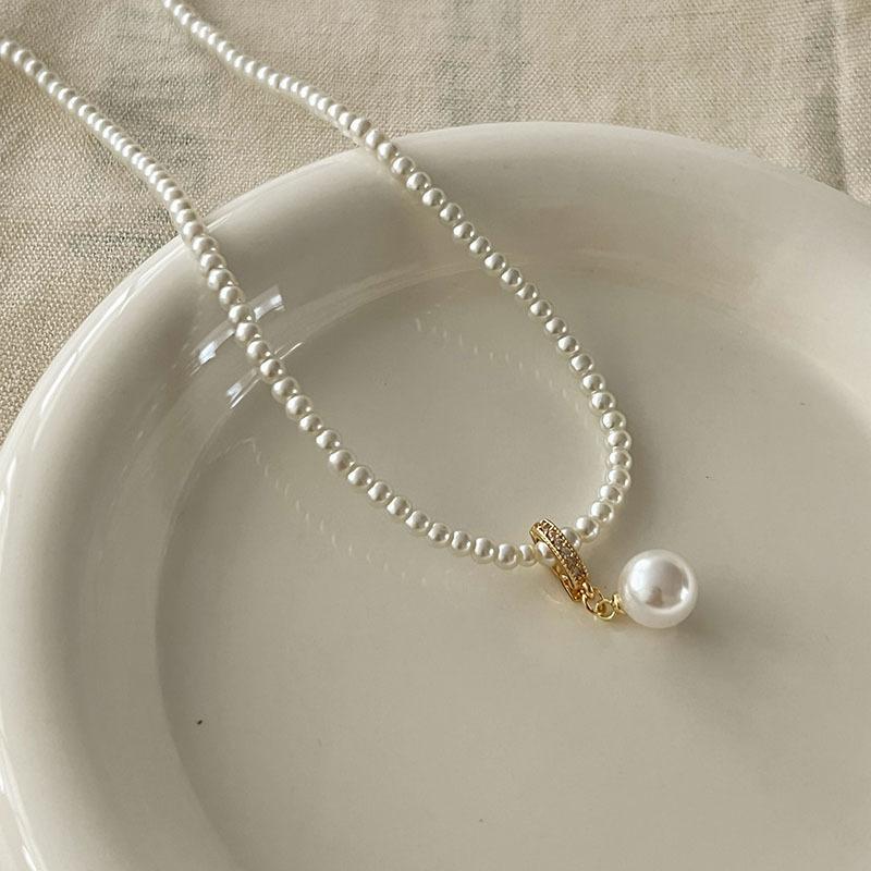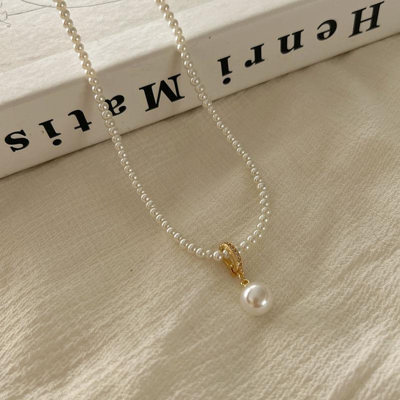 Collar de perlas elegante y sencillo de nicho, diseño de cadena de clavícula francesa retro de alta calidad, accesorios 2024 Nuevo