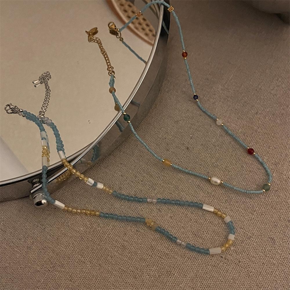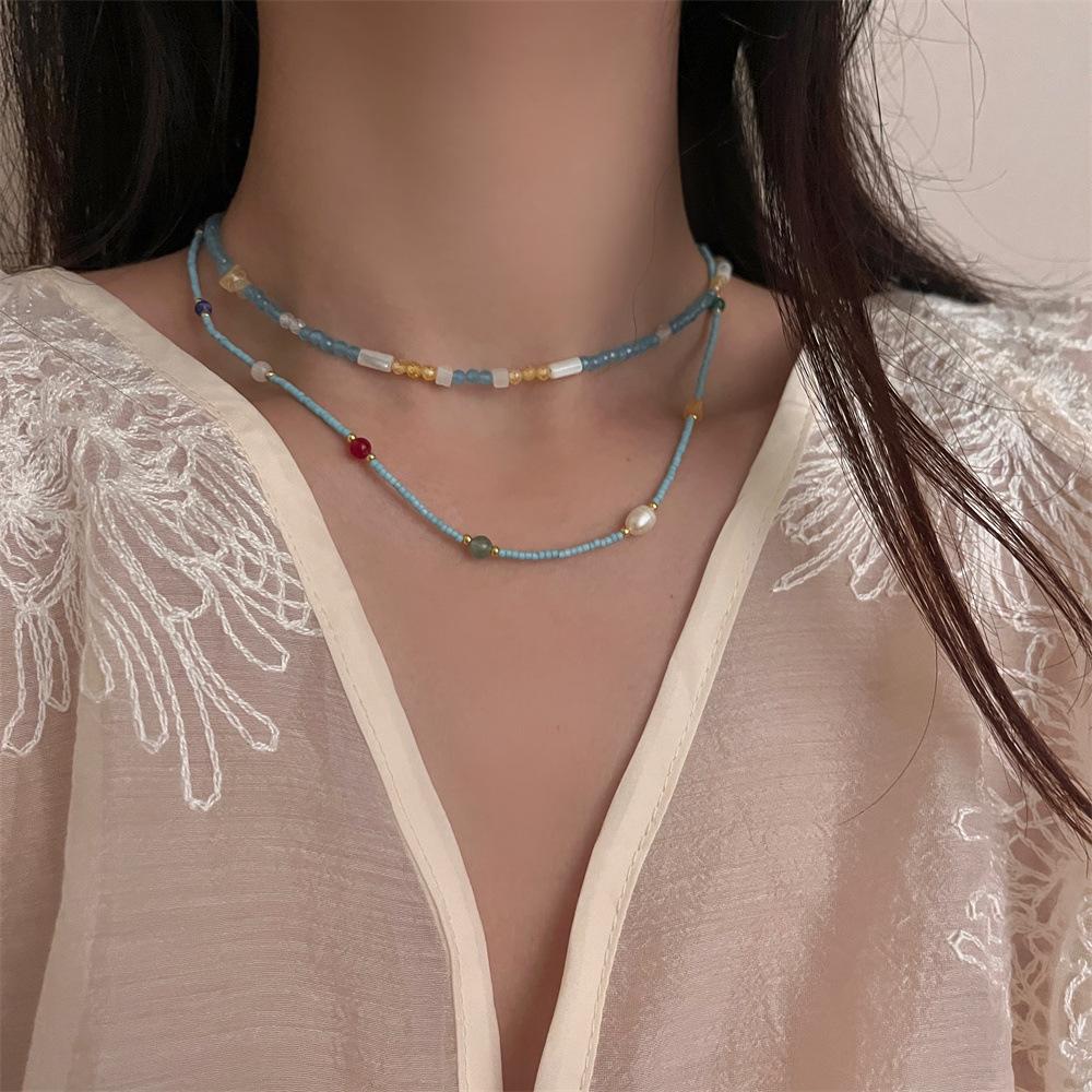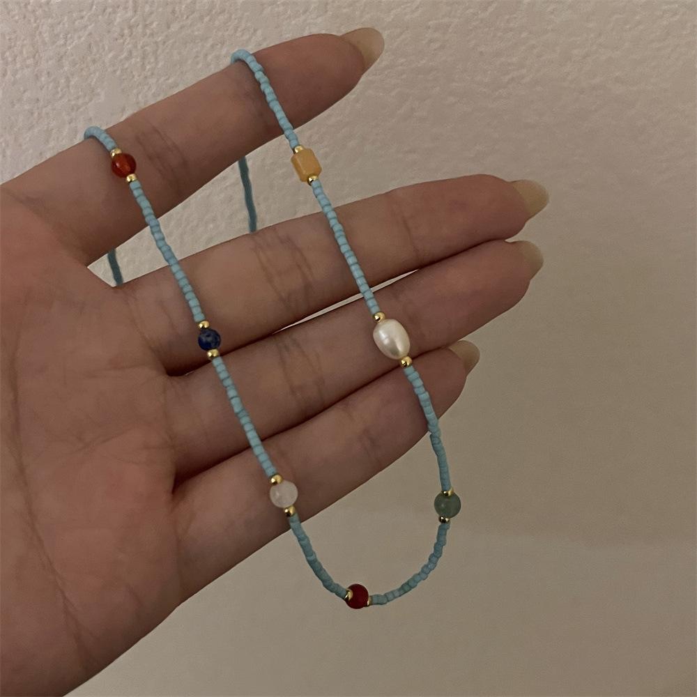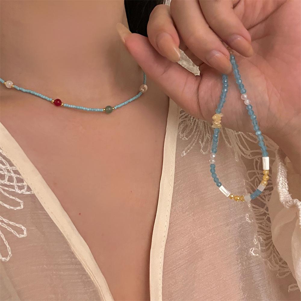 Collar de cuentas azules frescas Mint Mambo con ágata, perla de agua dulce, piedra natural, cadena de clavícula superpuesta.
