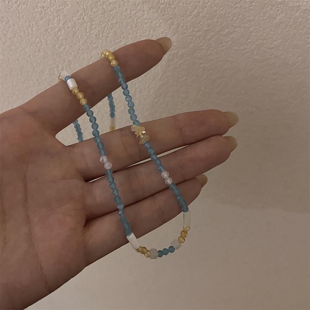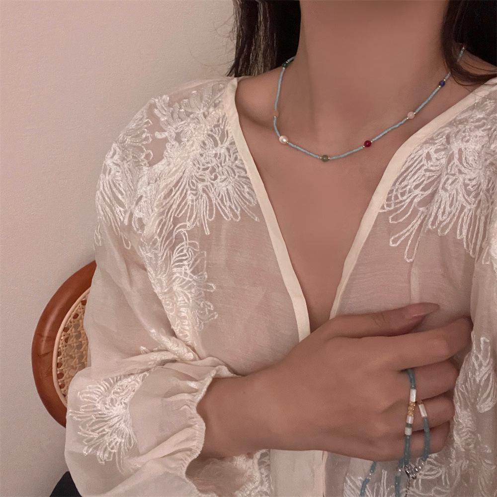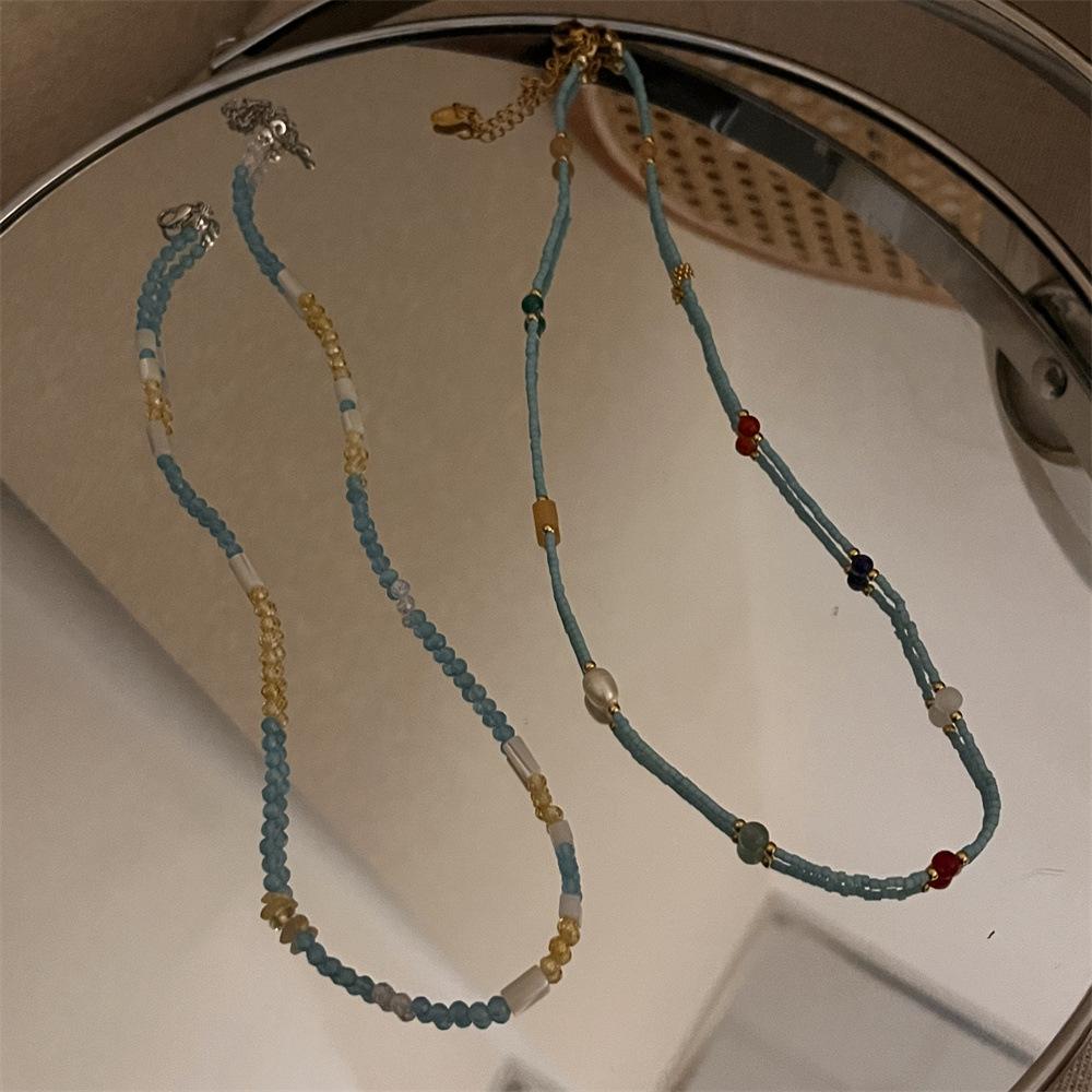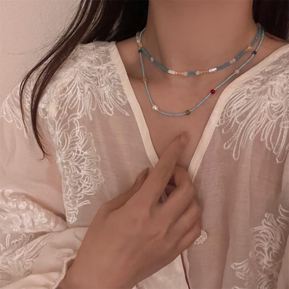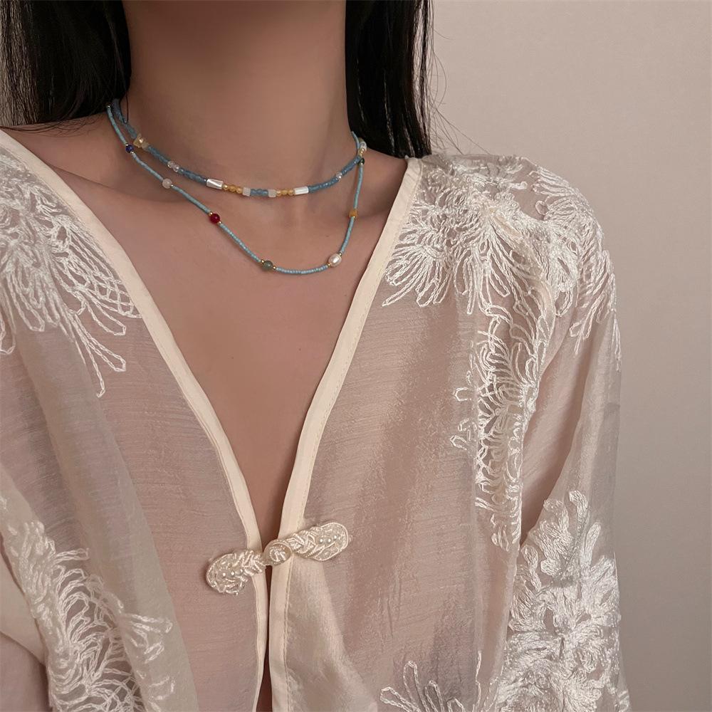 Collar de cuentas azules frescas Mint Mambo con ágata, perla de agua dulce, piedra natural, cadena de clavícula superpuesta.