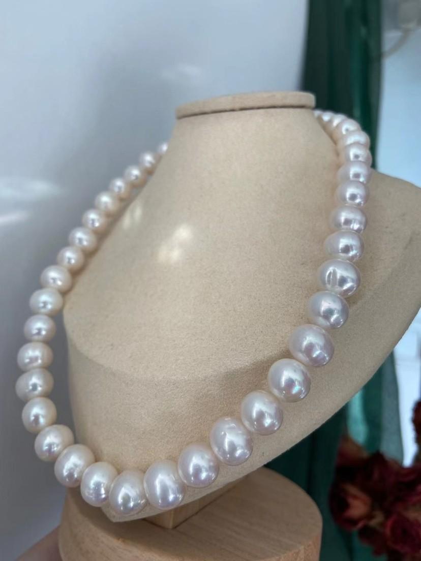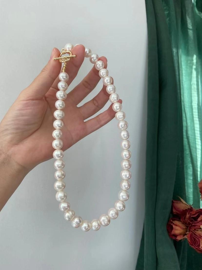 Collar de perlas naturales de agua dulce de 10-11 mm, sencillo, moderno, combinable, elegante, estilo retro, estilo socialité.