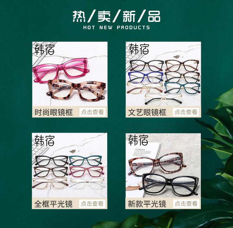 Nueva moda con marco de ojo de gato, espejo óptico, tendencia europea y americana, gafas planas de calle, gafas TR anti-azul