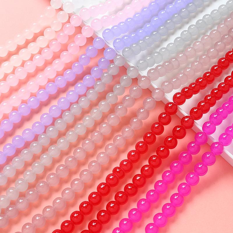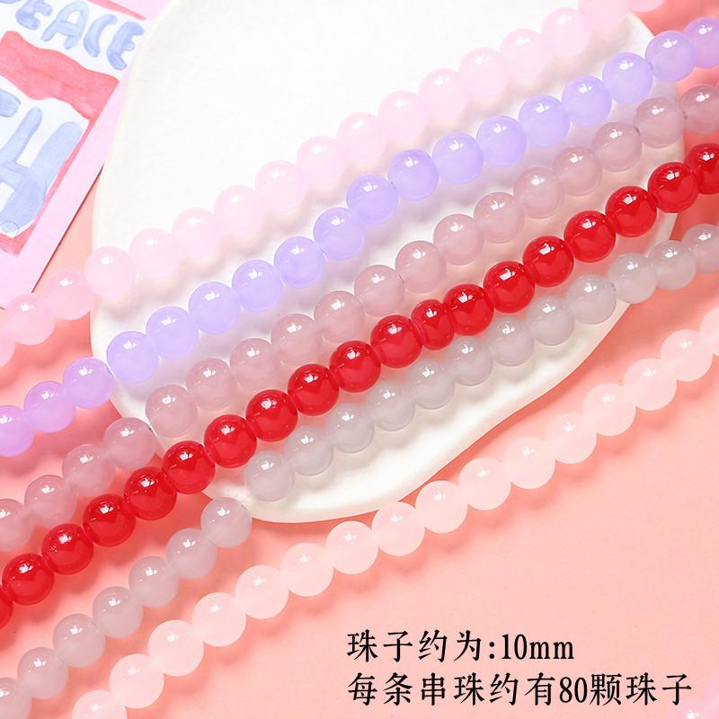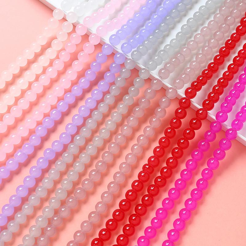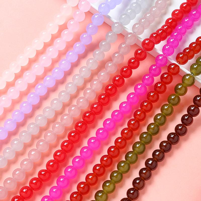 Cuentas redondas con agujero recto para hacer joyas, collares y pendientes, accesorios hechos a mano, con glaseado de gelatina.