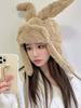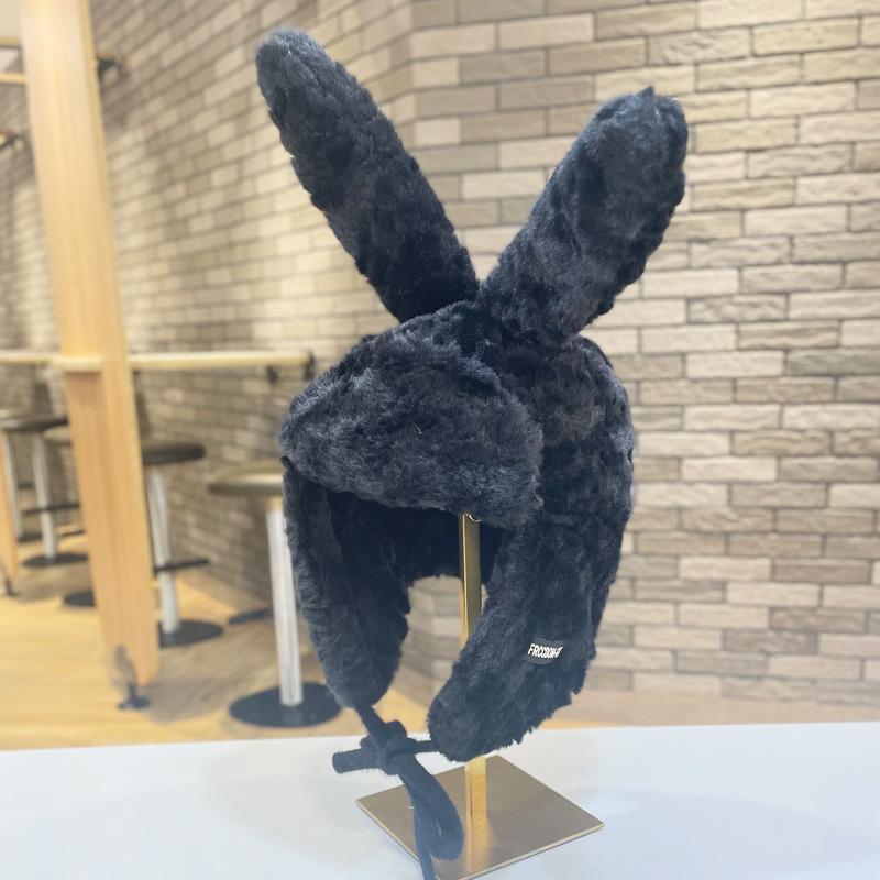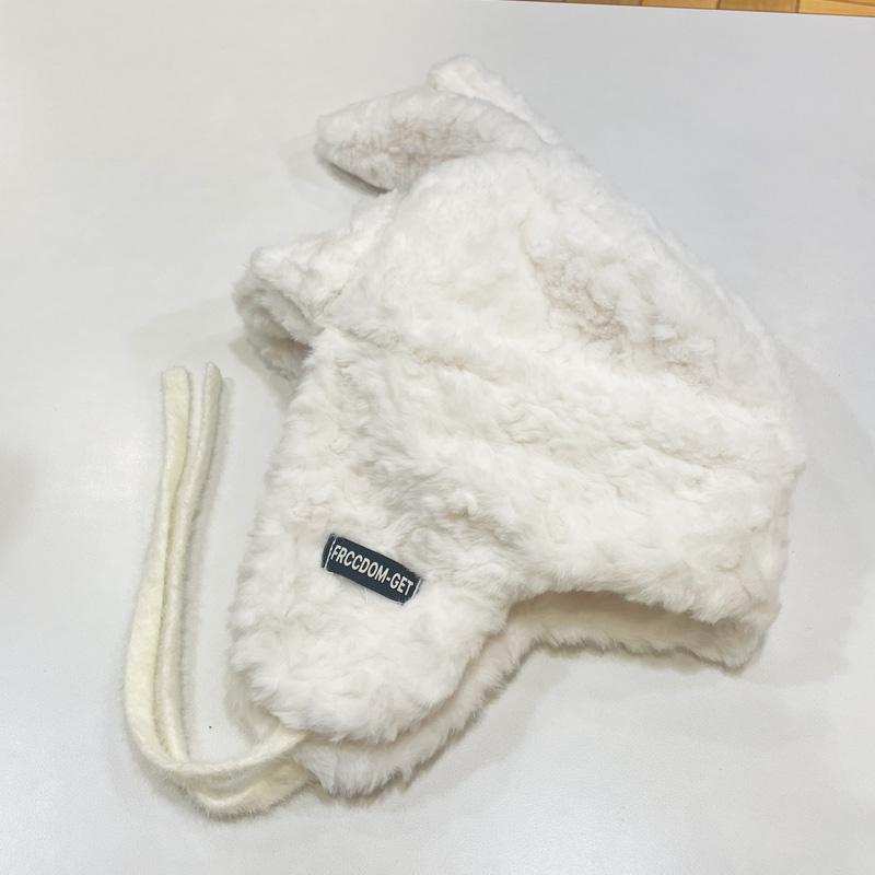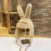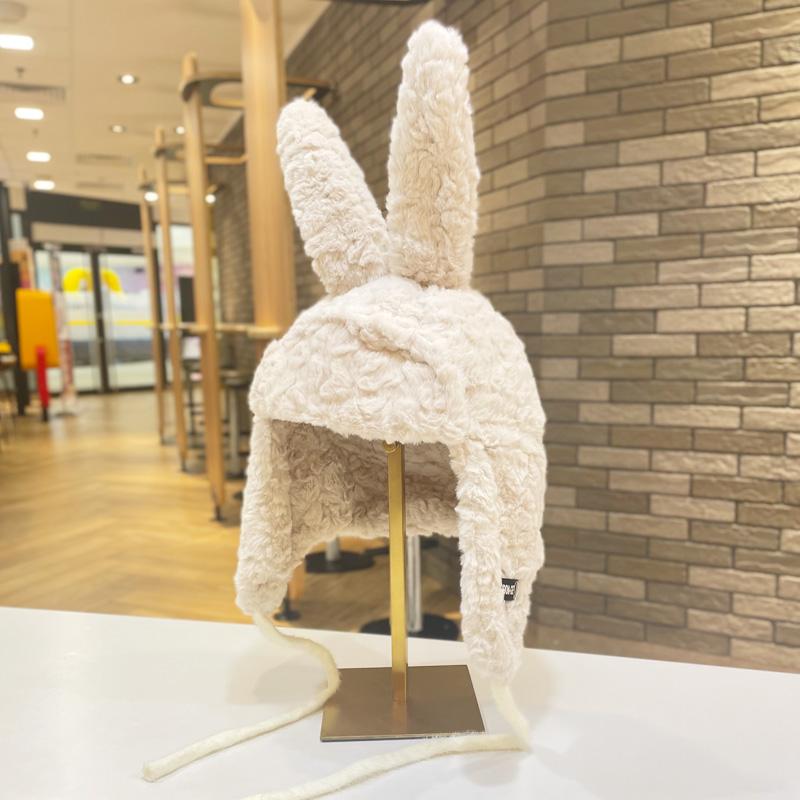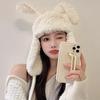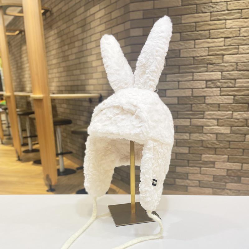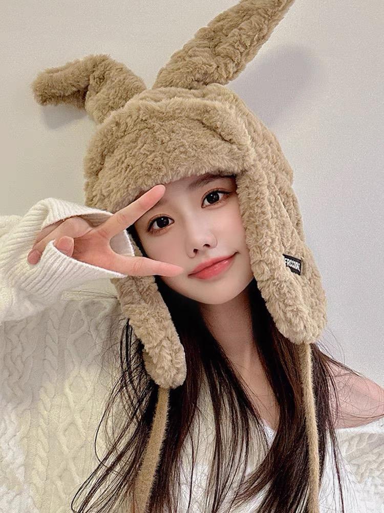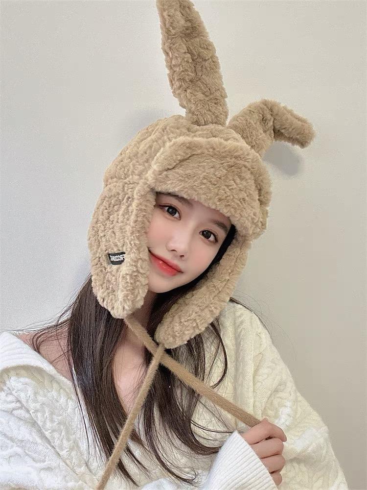 Lindo gorro Lei Feng de felpa con orejas de conejo para mujer, invierno, forrado de vellón, grueso, cálido, para exteriores, esquí, ciclismo, orejeras