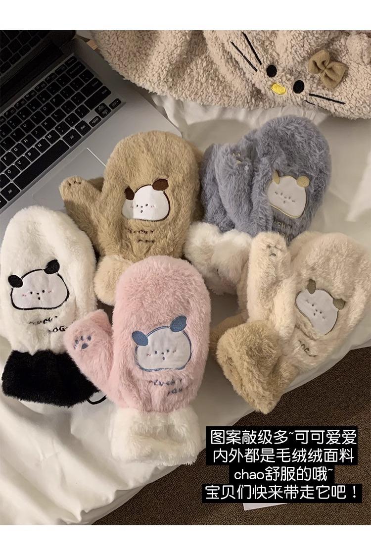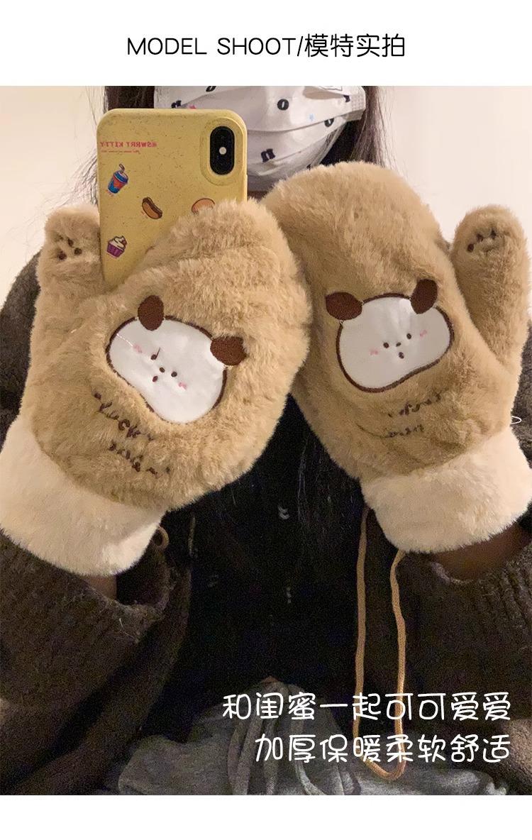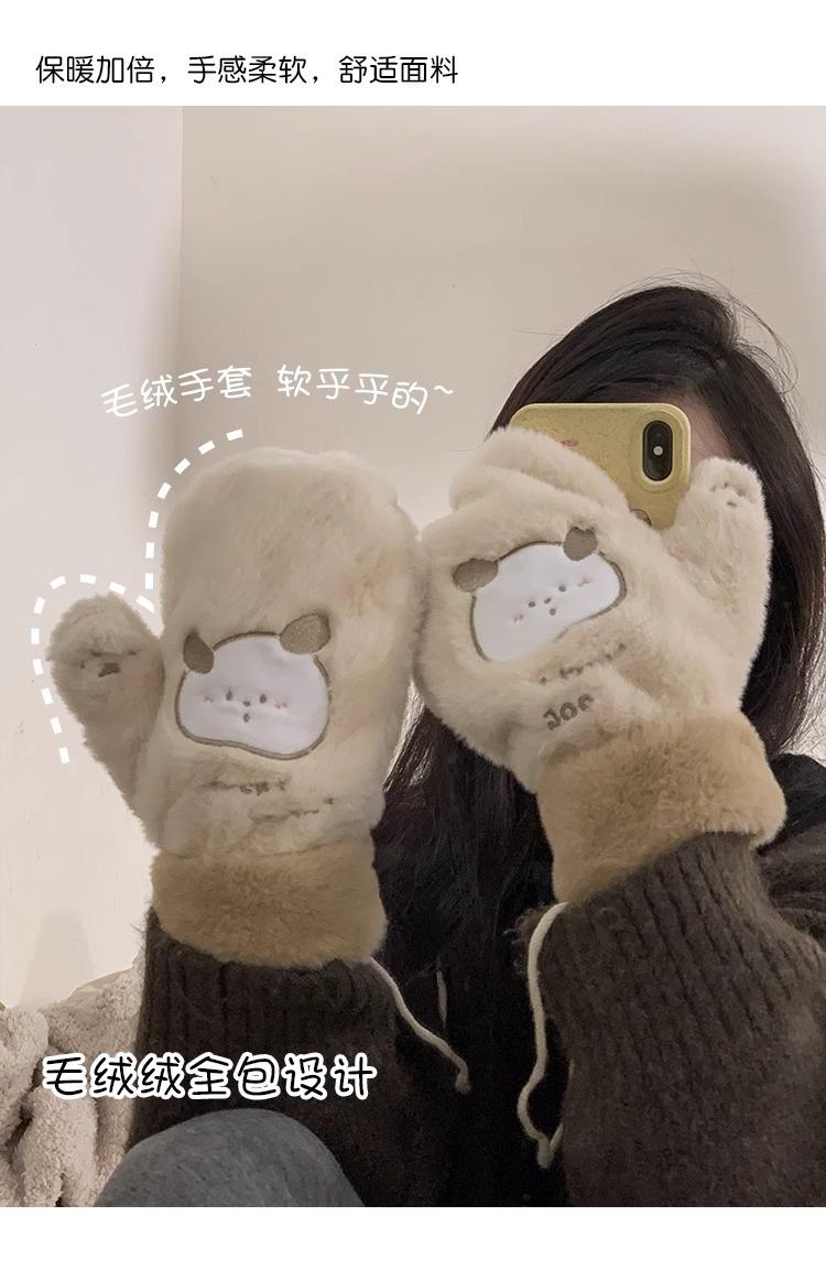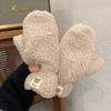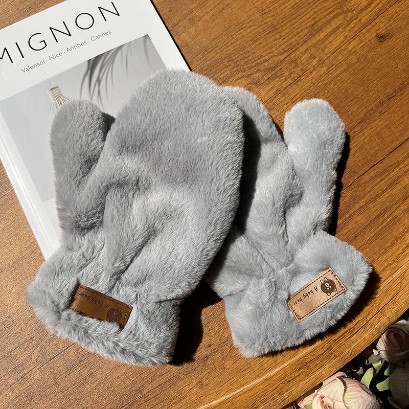 Guantes de piel de conejo tipo terciopelo y guantes cálidos de felpa de papel para otoño e invierno, moda de invierno, lindos para niñas y estudiantes