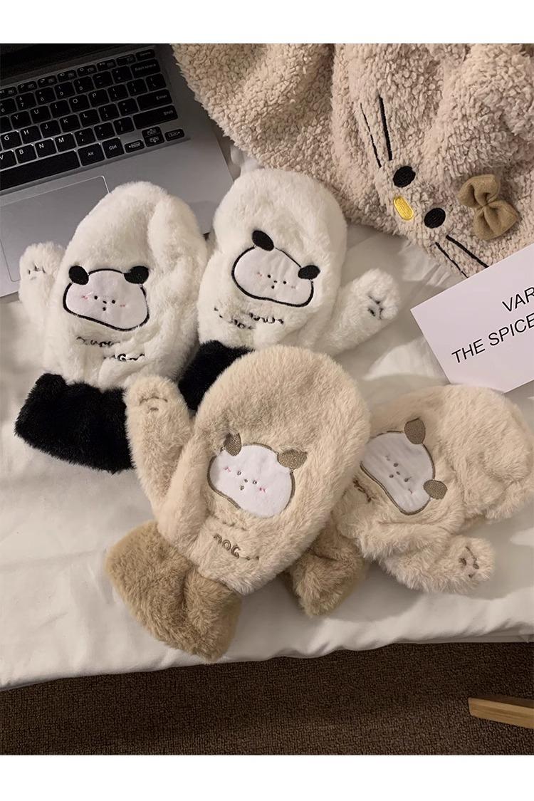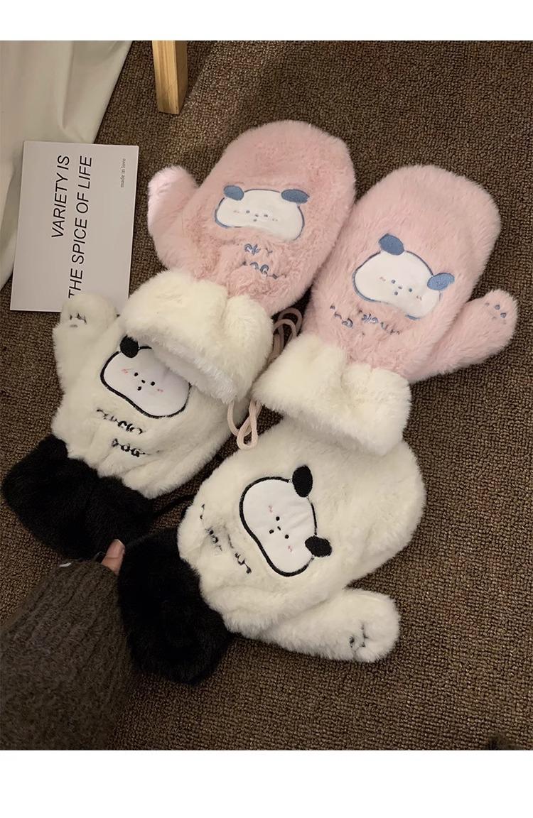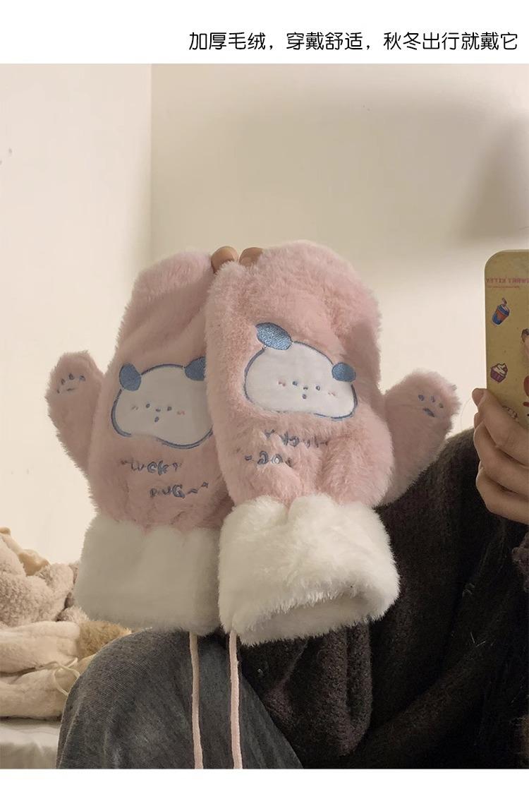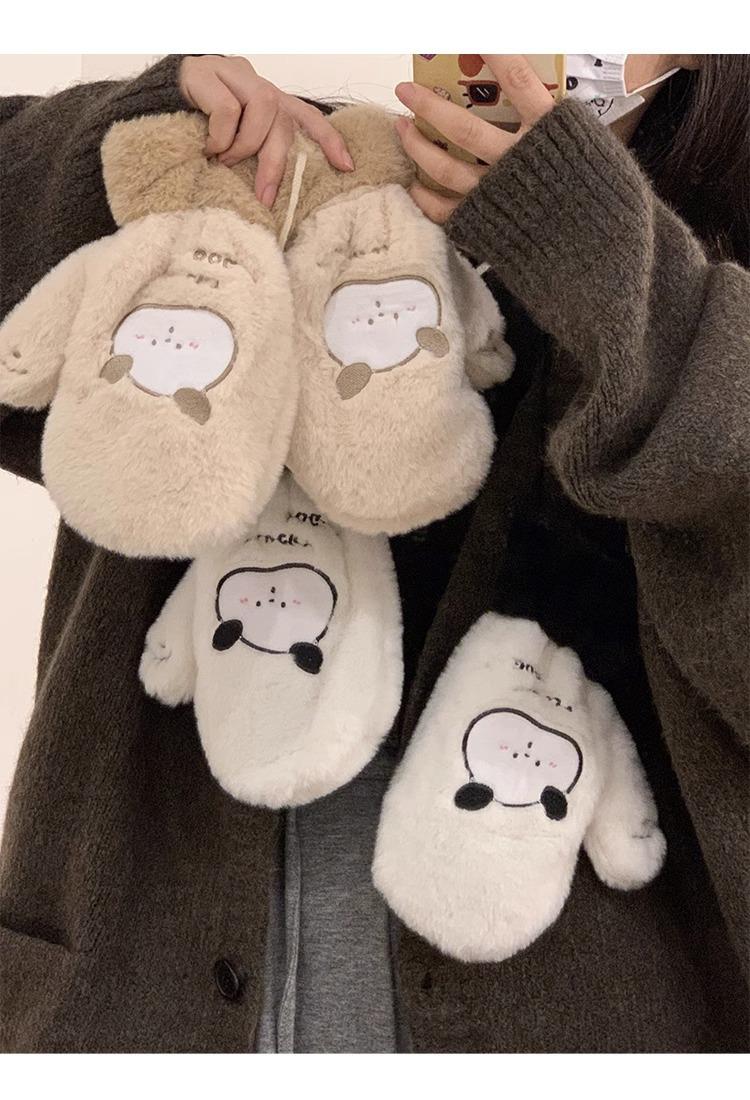Guantes de piel de conejo tipo terciopelo y guantes cálidos de felpa de papel para otoño e invierno, moda de invierno, lindos para niñas y estudiantes