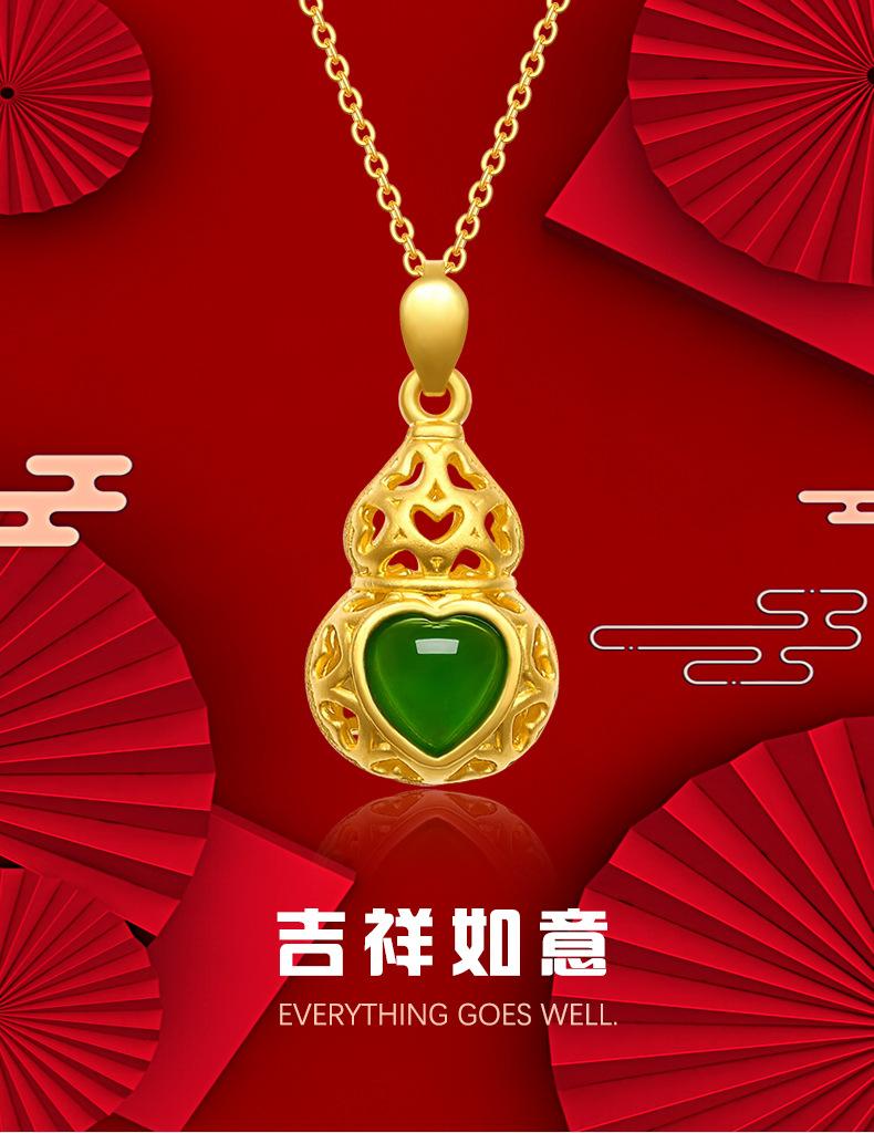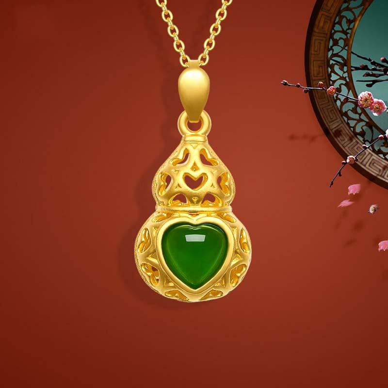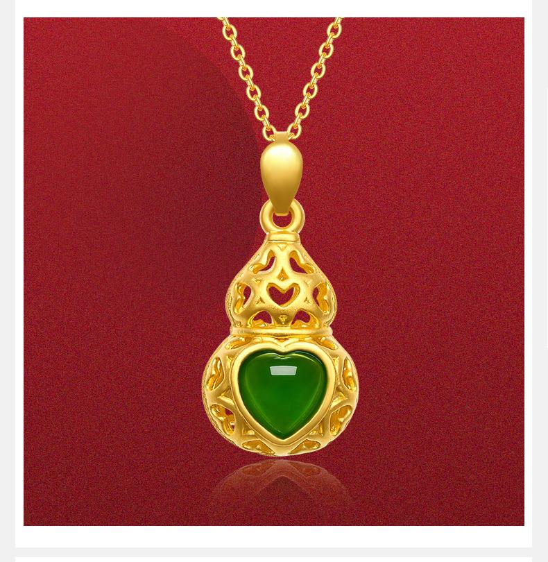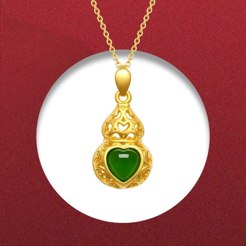 Colgante Antiguo Dorado Chapado en Oro Color Oro Femenino Jade Blanco de Hotan Arenas Oro Forma de Corazón Calabaza Paz Colgante Calcedonia Verde Collar