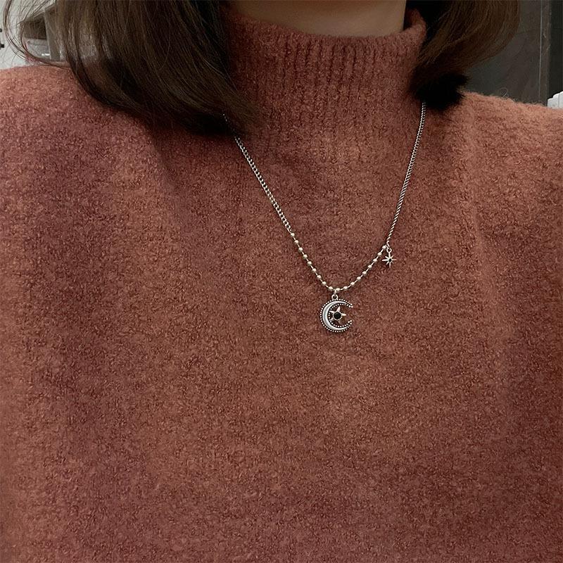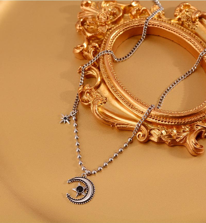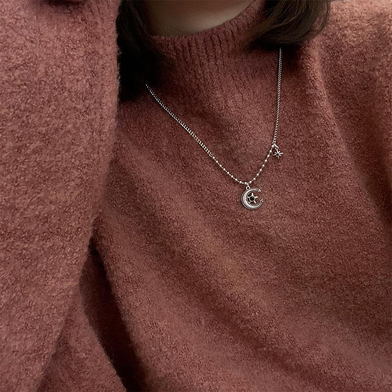 Verano Nueva Moda Collar con Colgante de Luna Estrella para Mujer Diseño Nicho ins Lujo Ligero Cadena de Suéter de Estrella Luna