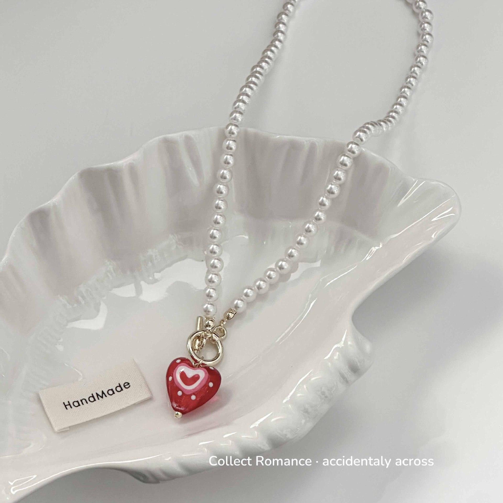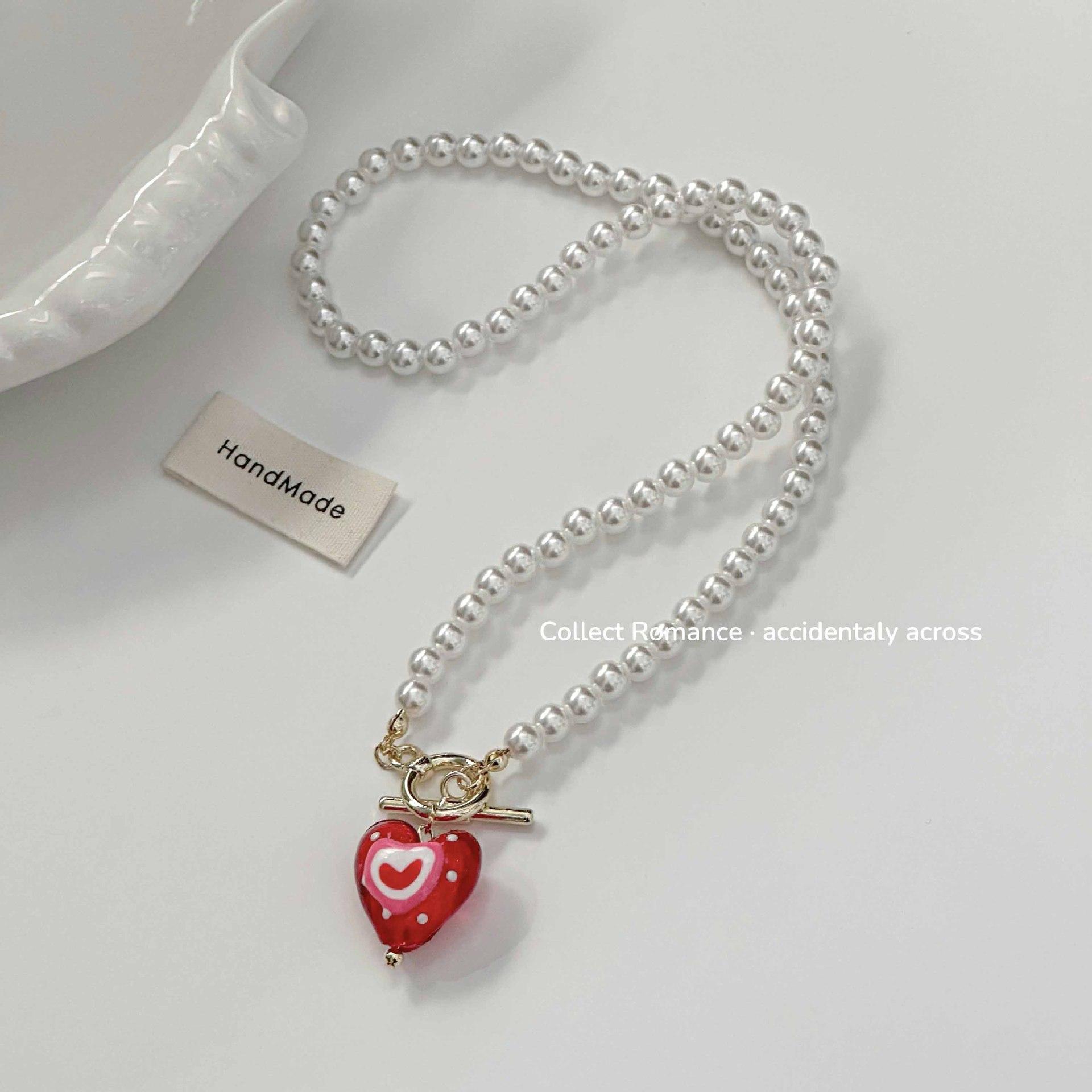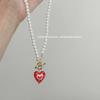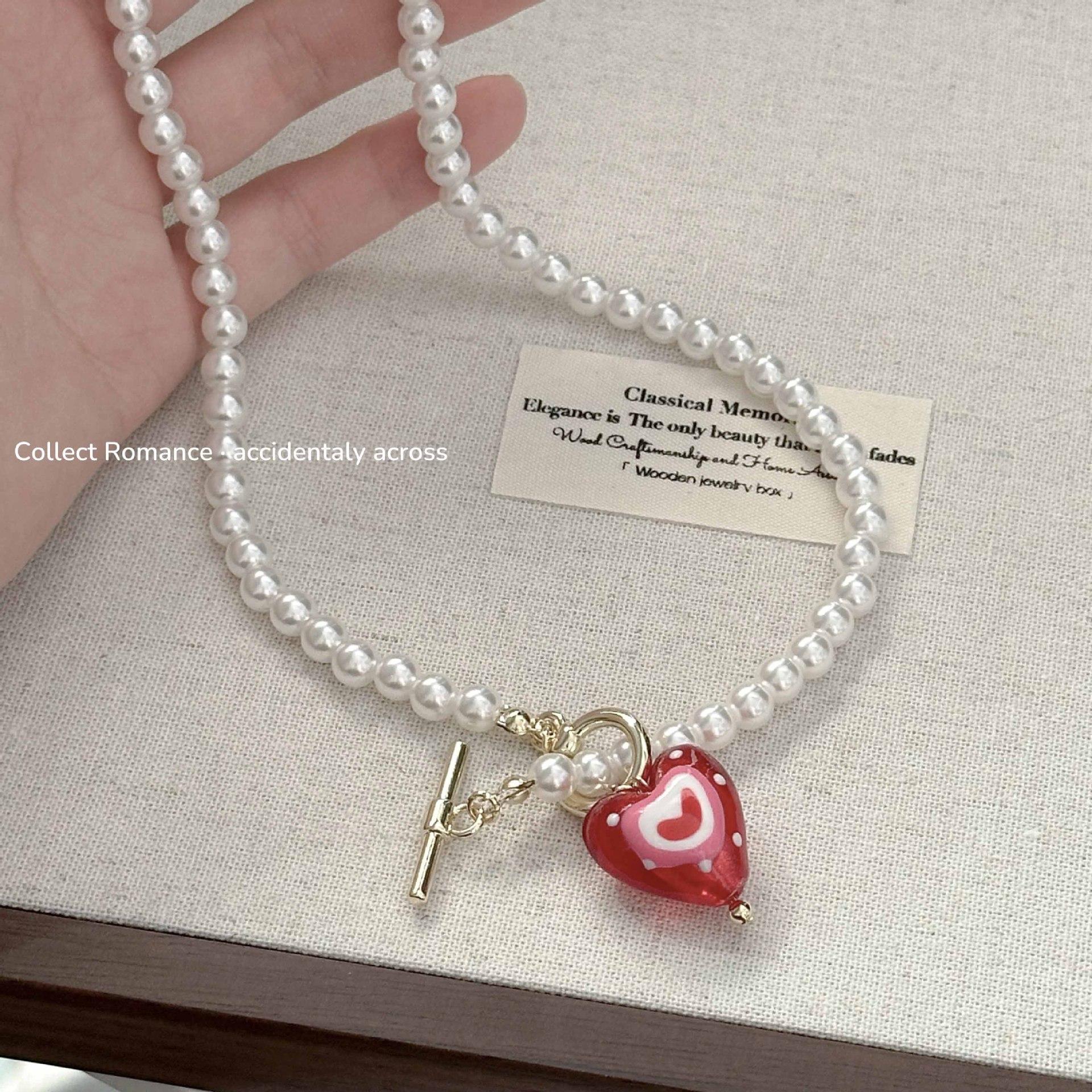 Accesorios Nuevo Producto Dulce y Lindo Colgante de Amor Rojo Collar de Perlas de Lujo Ligero de Alta Gama Collar de Niña en Forma de Corazón