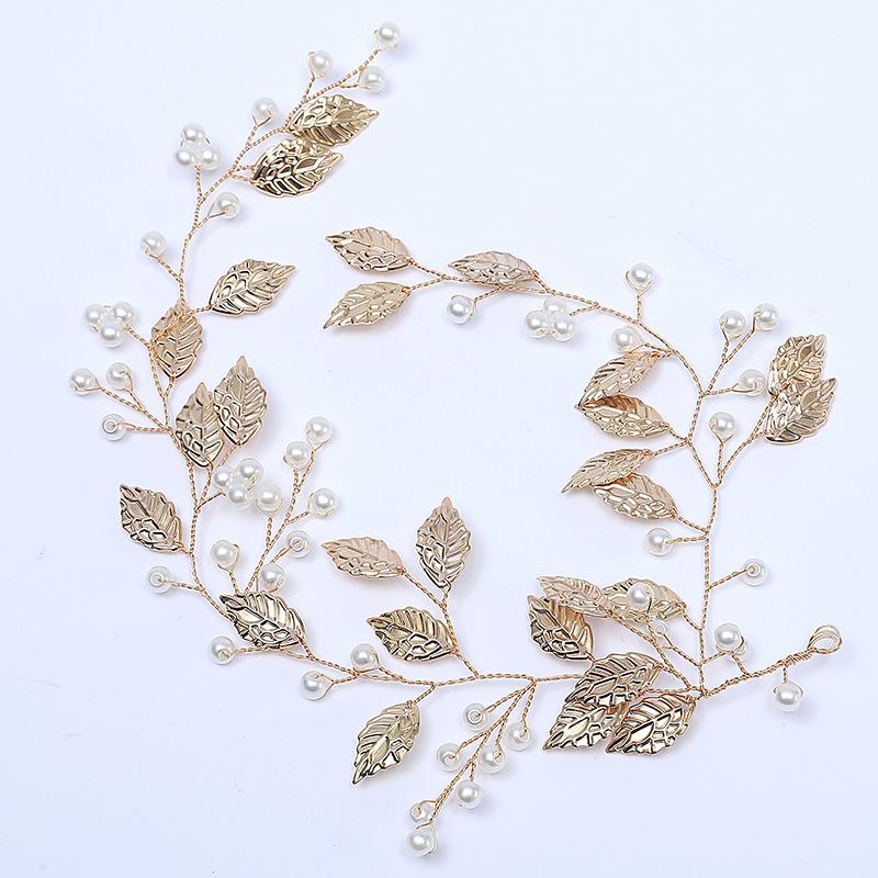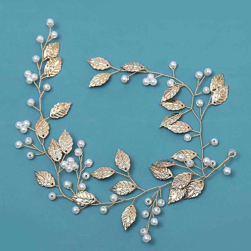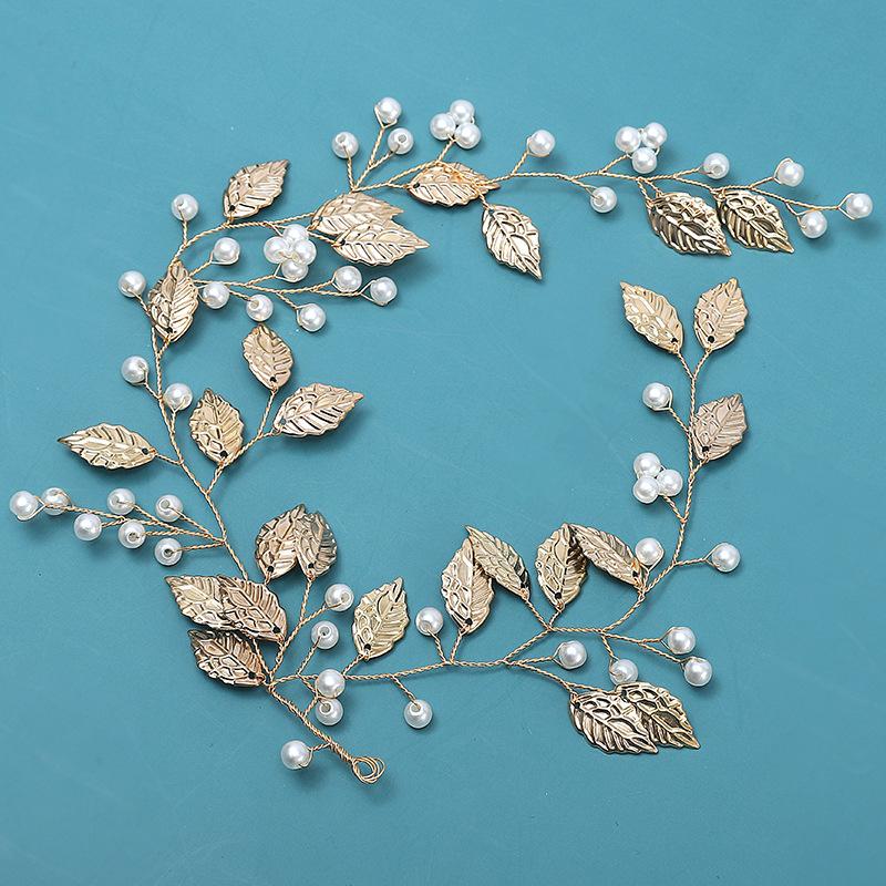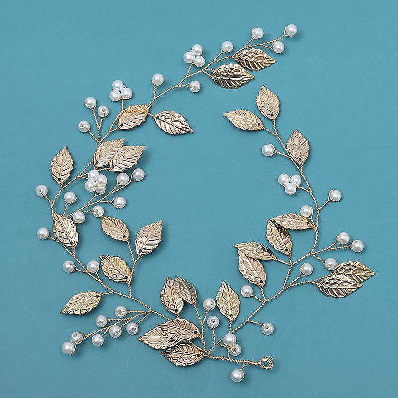 Diadema con perlas Mori, accesorios para el cabello de novia coreanos, corona de moda, tocado, flor de hoja dorada, accesorios de boda al por mayor