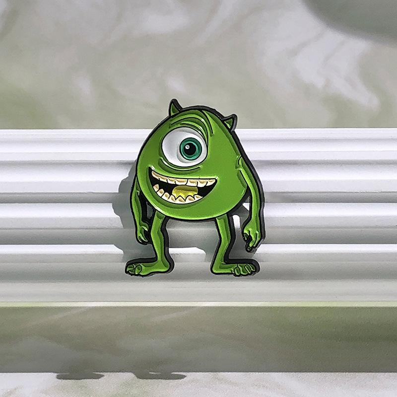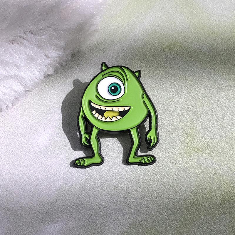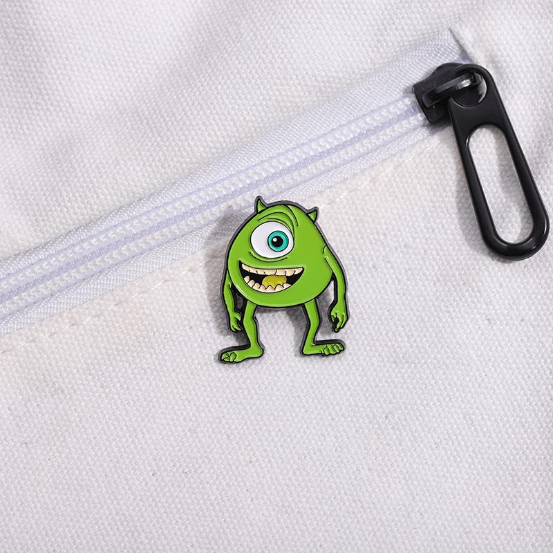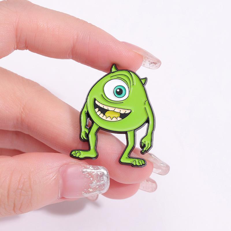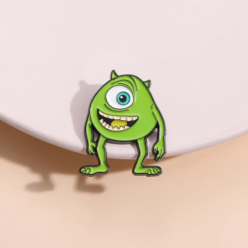 Broche de personaje de dibujos animados, pequeño monstruo, ojos grandes, accesorios de metal, ropa creativa periférica, insignia verde goteando