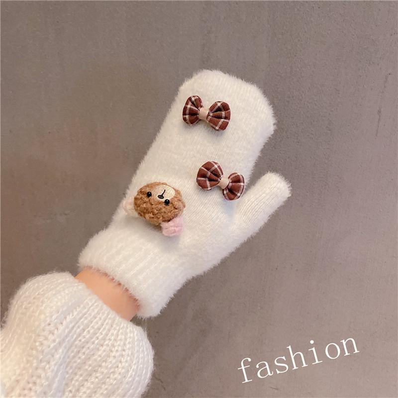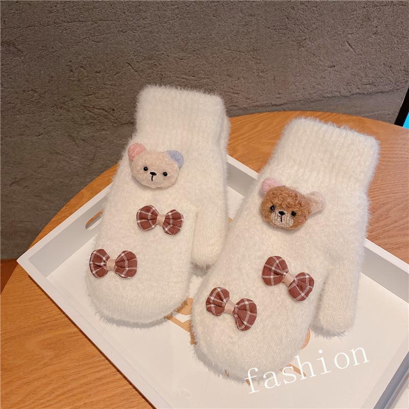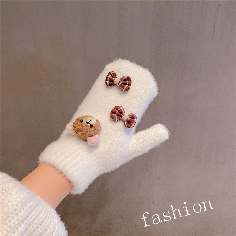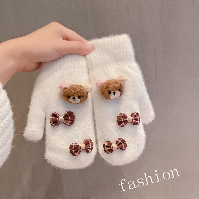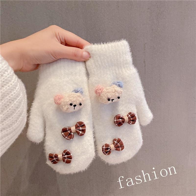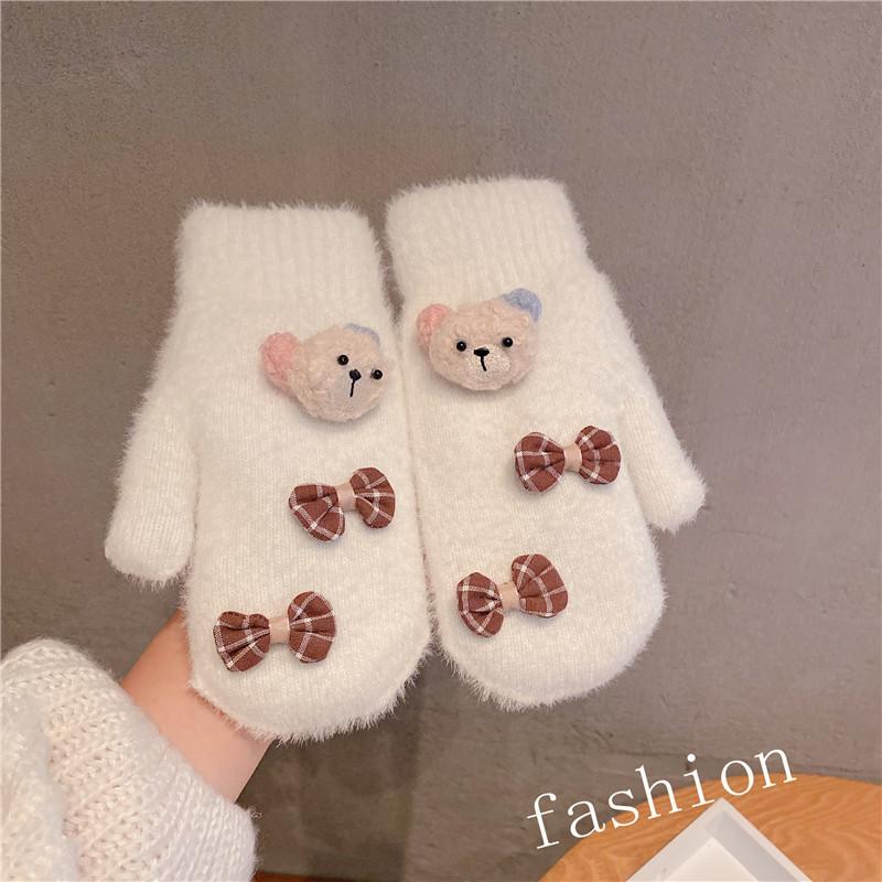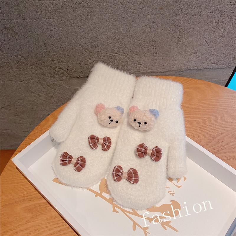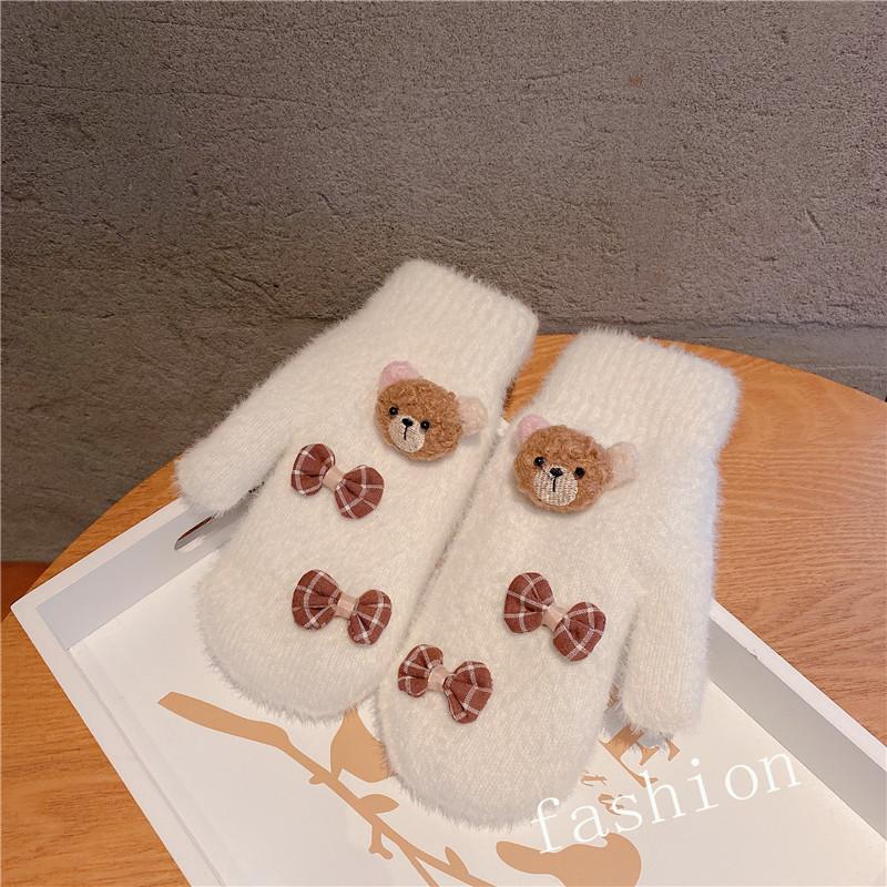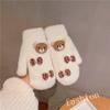 Guantes de dibujos animados de oso de peluche para mujer, de invierno, gruesos, para ciclismo, estudiantes, de terciopelo, cálidos y resistentes al frío.