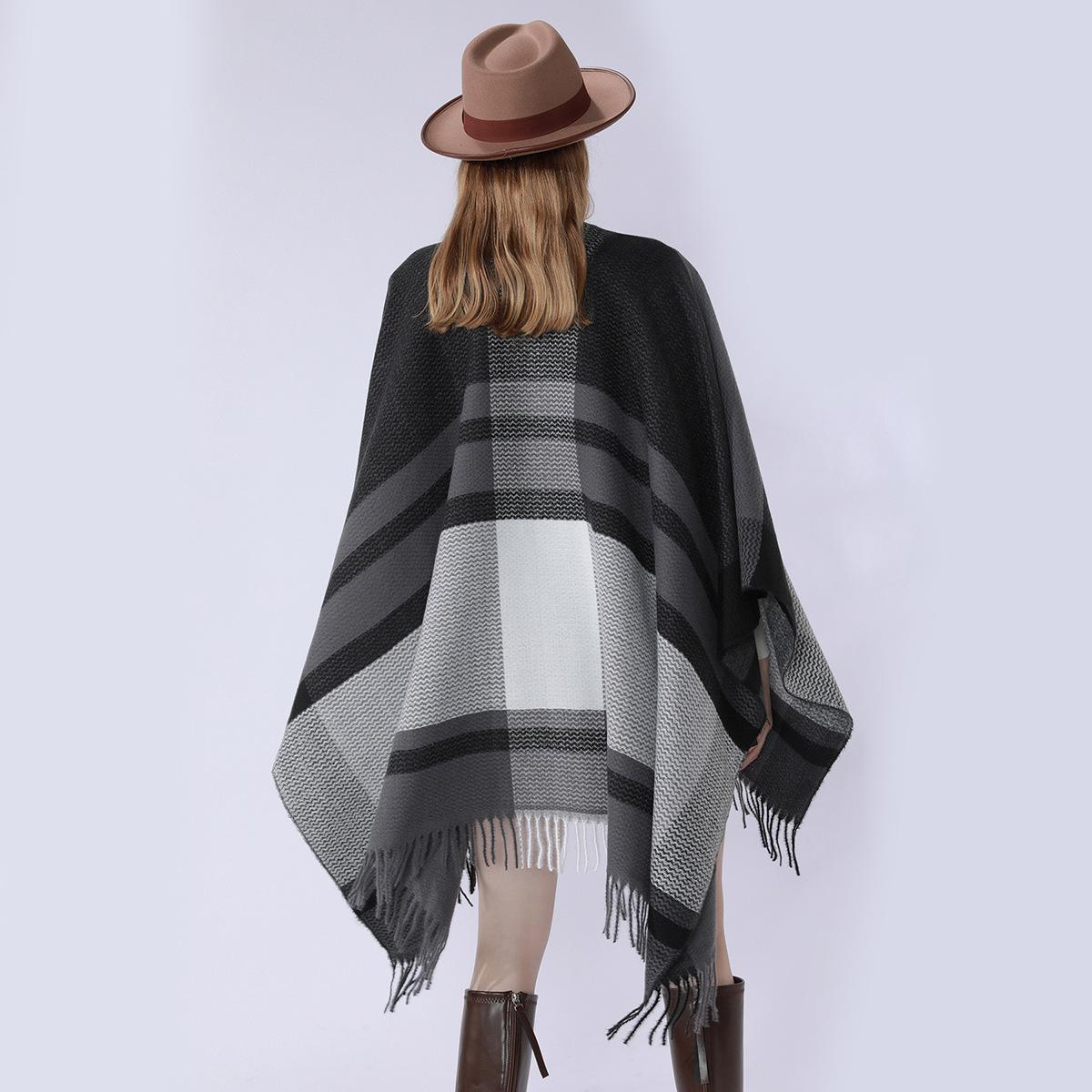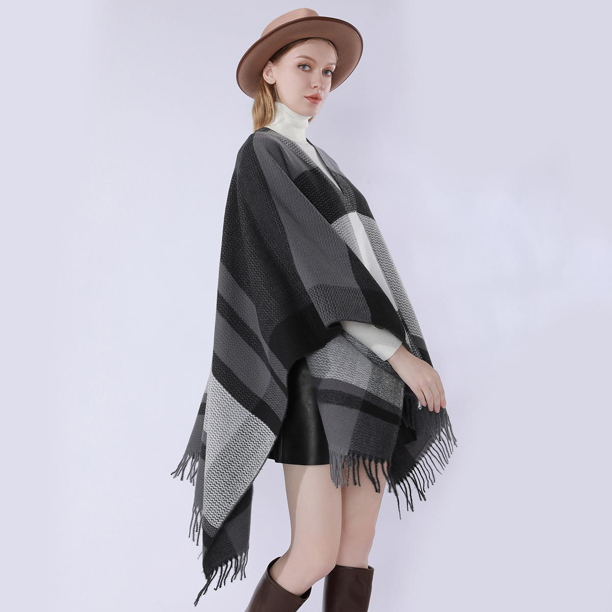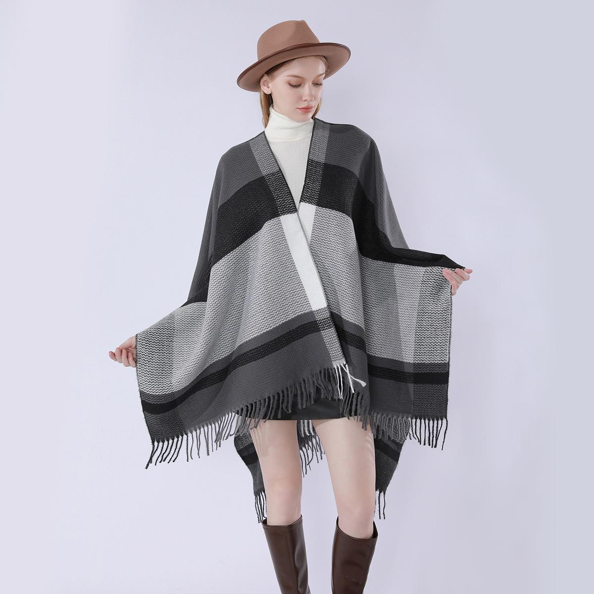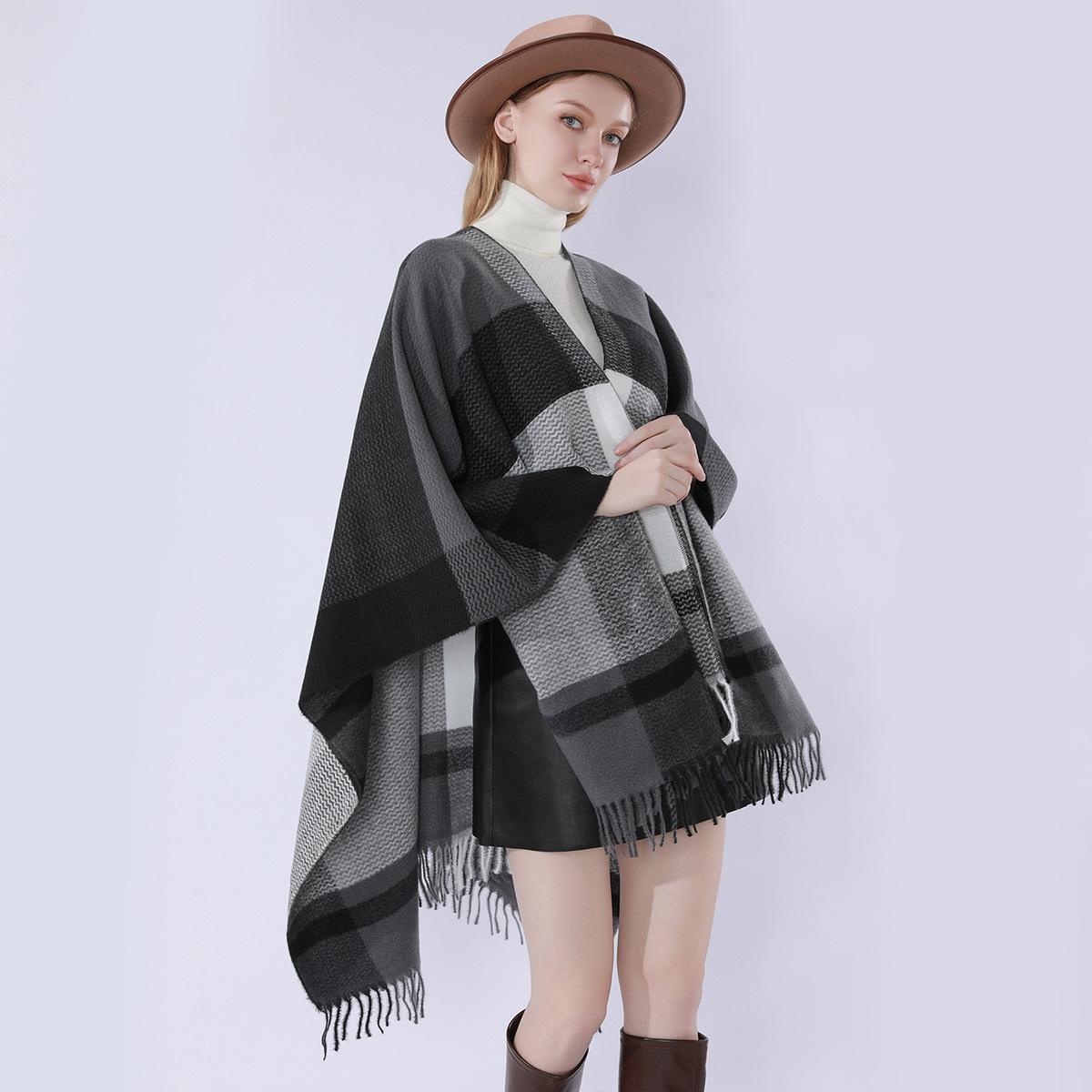 Nueva moda transfronteriza, chal a cuadros de doble propósito, capa simple y versátil, ropa de viaje, capa exterior cálida de otoño e invierno