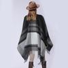 Capa exterior tipo chal a cuadros europeos y americanos con degradado de Amazon transfronterizo 2024, capa exterior cálida con borlas para otoño e invierno