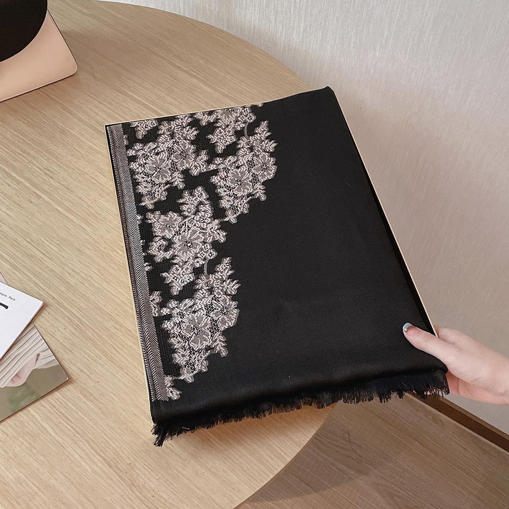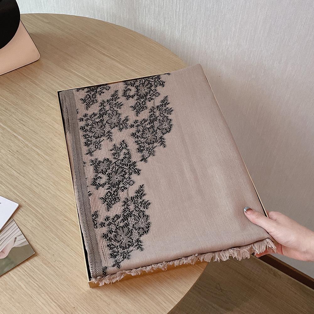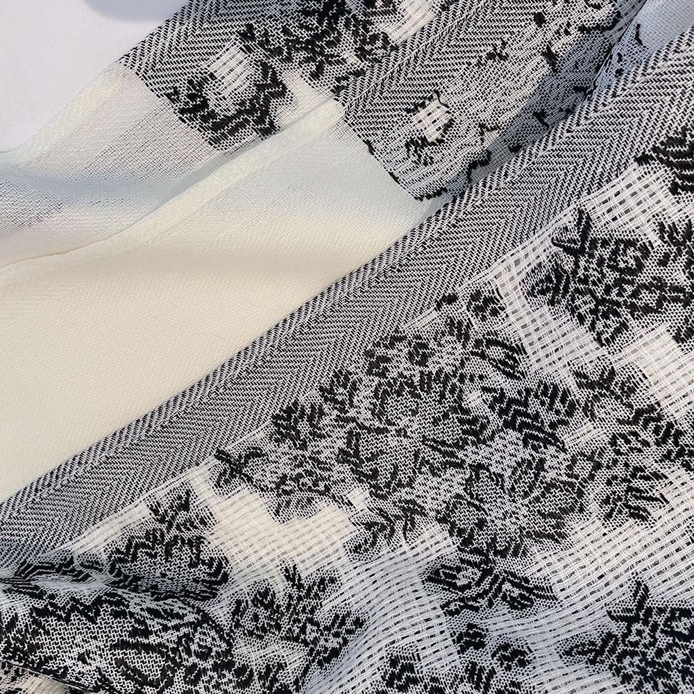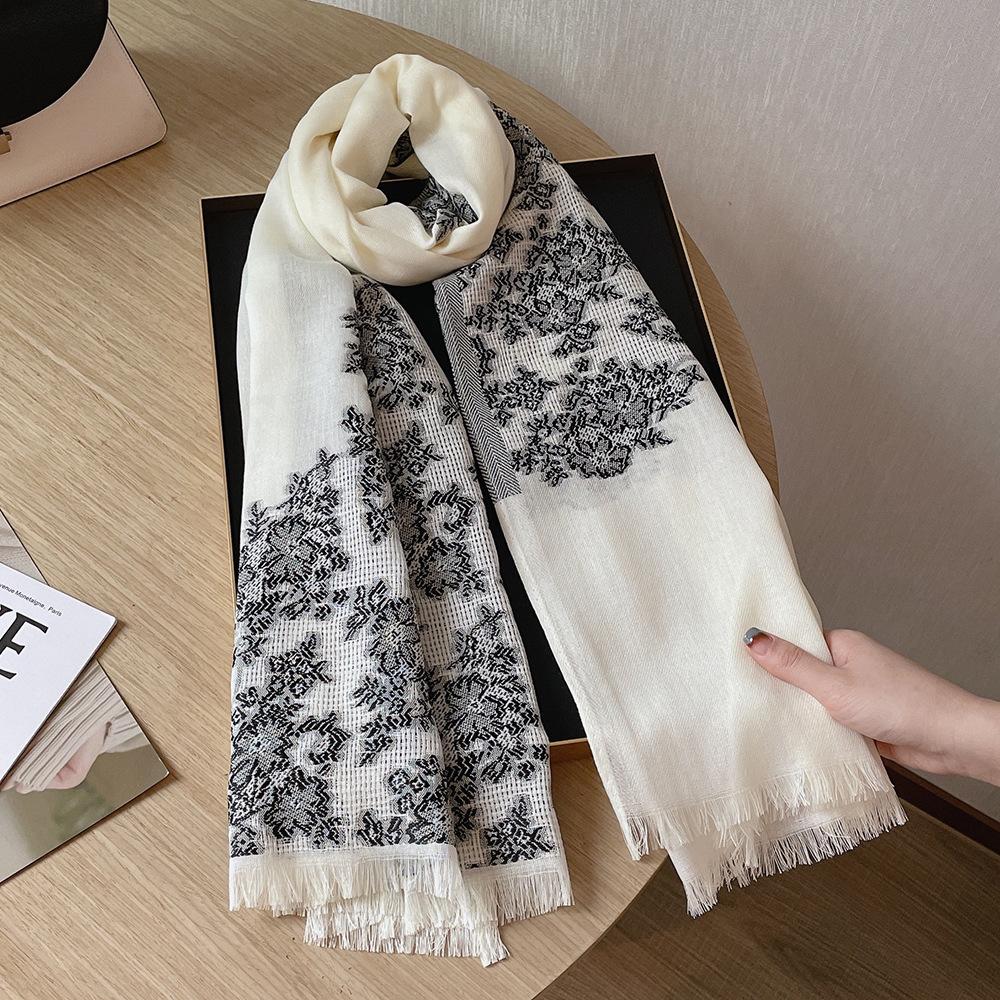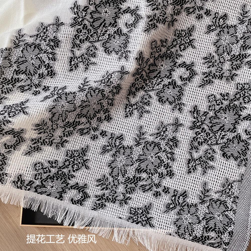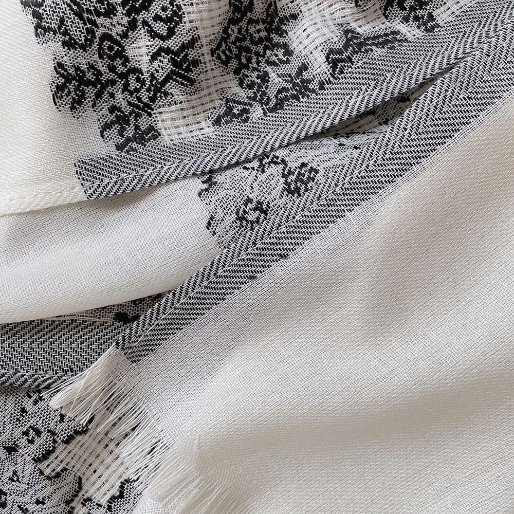Las flores de estilo étnico en el centro están hechas con tecnología jacquard por computadora. Esta bufanda es suave y elegante, especialmente las de color blanco crema y negro, que son realmente súper hermosas~