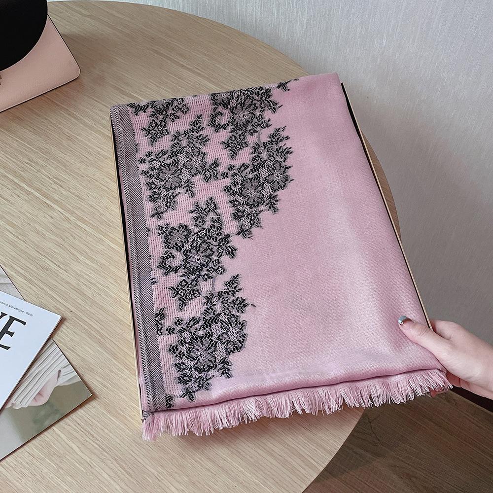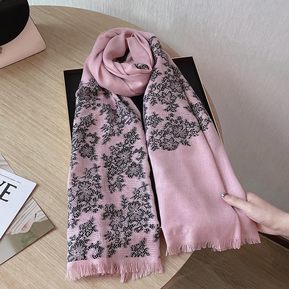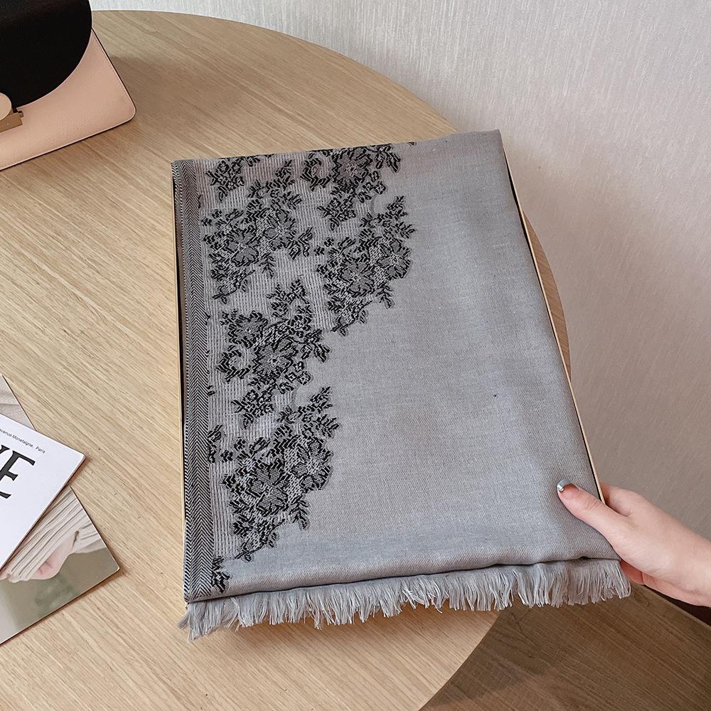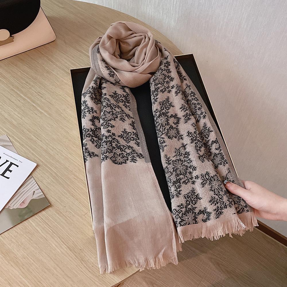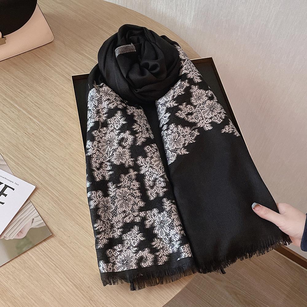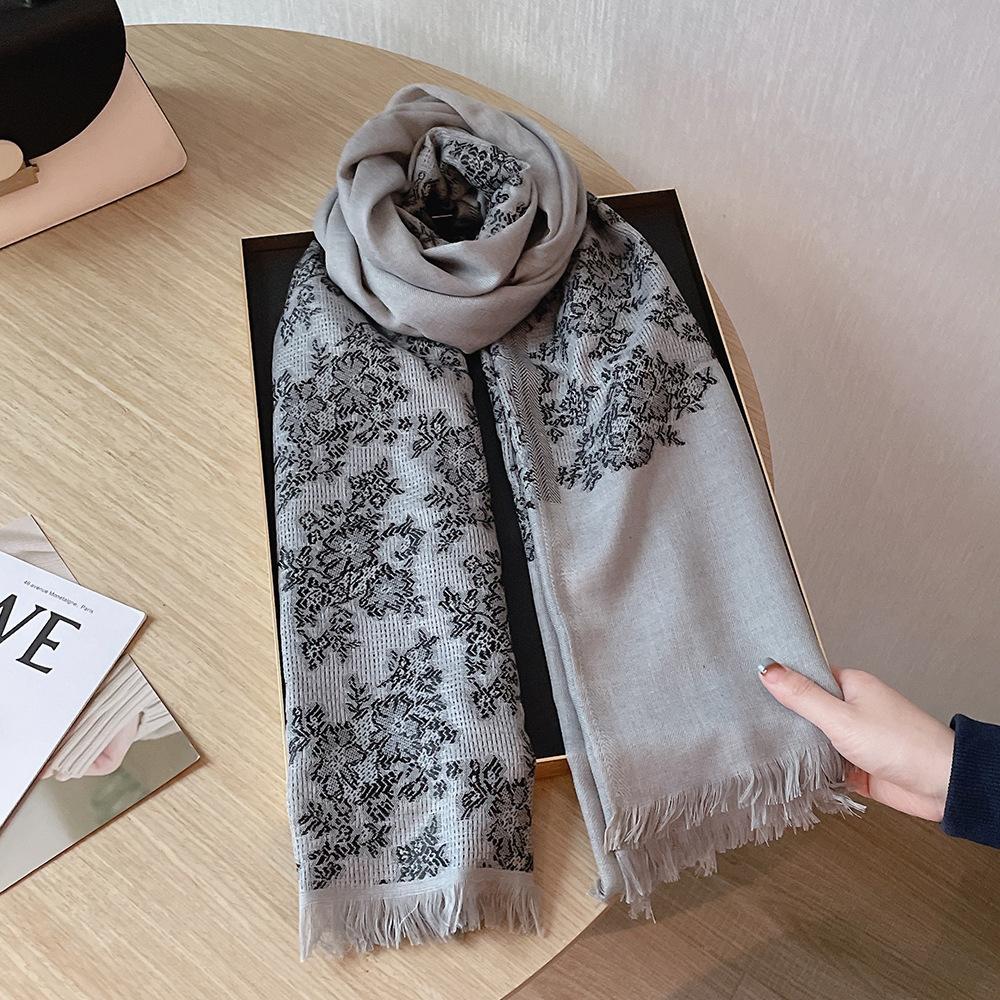 Las flores de estilo étnico en el centro están hechas con tecnología jacquard por computadora. Esta bufanda es suave y elegante, especialmente las de color blanco crema y negro, que son realmente súper hermosas~