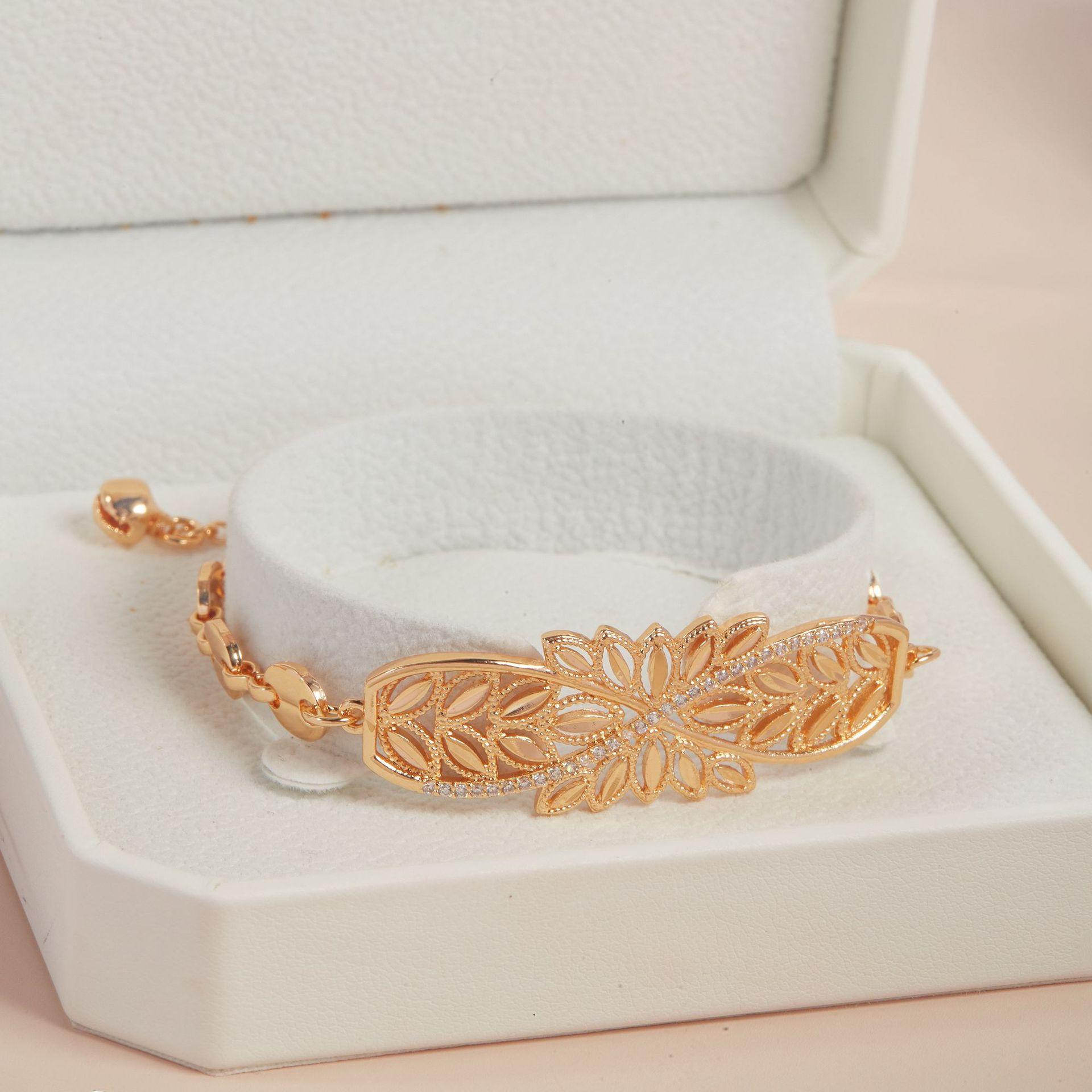 Joyería Nicho Transfronteriza Lujo Ligero Pulsera de Hoja Calada Europea y Americana de Moda Más Vendida Pulsera de Hoja con Diamantes Micro-Incrustados al Por Mayor