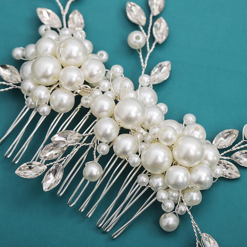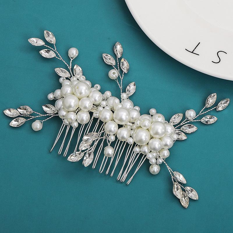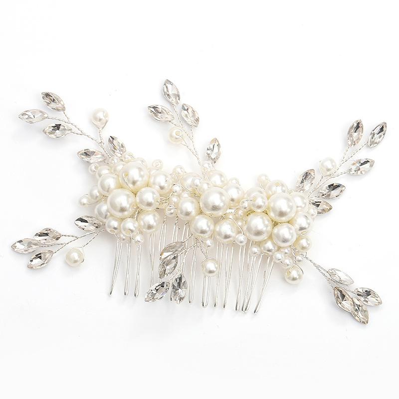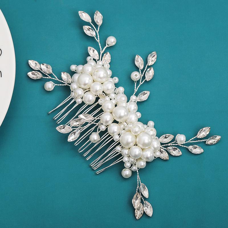 Peine de perlas de moda transfronteriza europea y americana, peine de pelo de cristal de diamantes de imitación tejido a mano, tocado de novia para fotos de boda