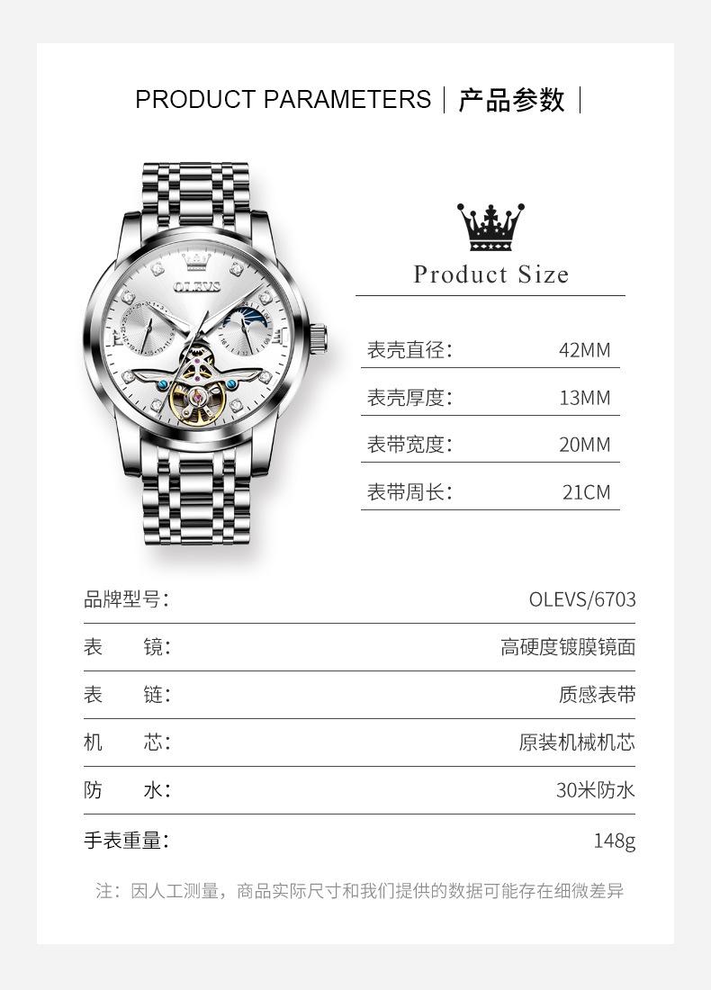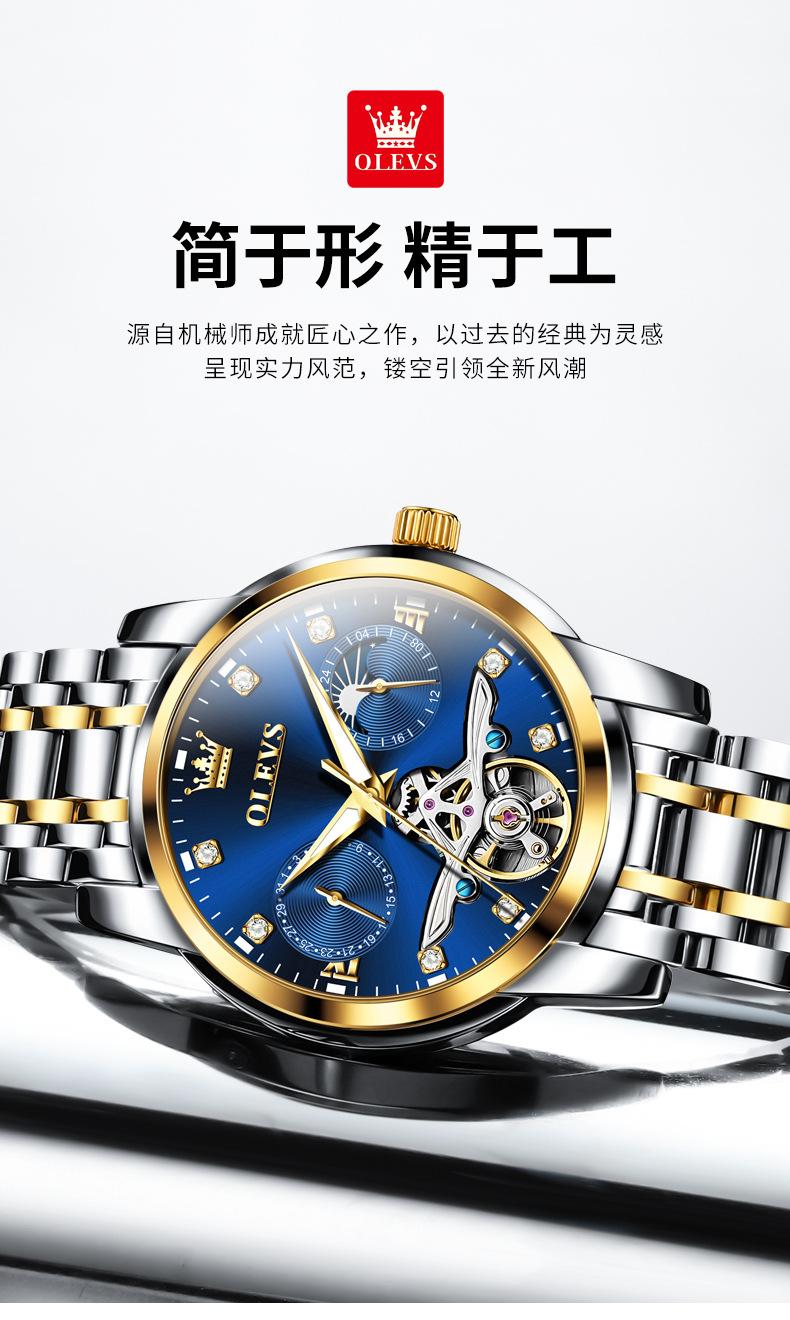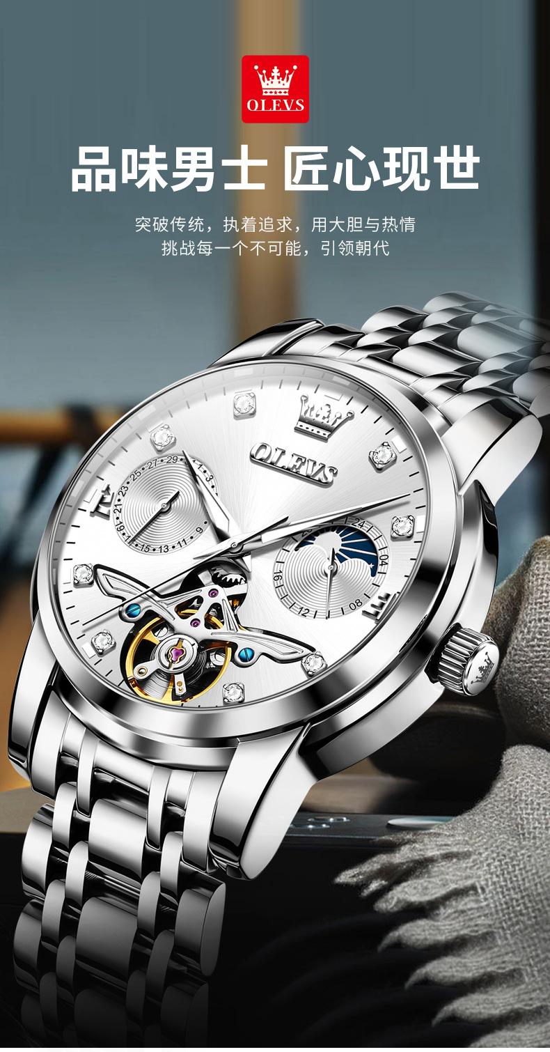 Una generación de relojes nuevos de la marca Oli, reloj mecánico para hombre, correa de acero multifuncional, reloj para hombre resistente al agua, reloj para hombre