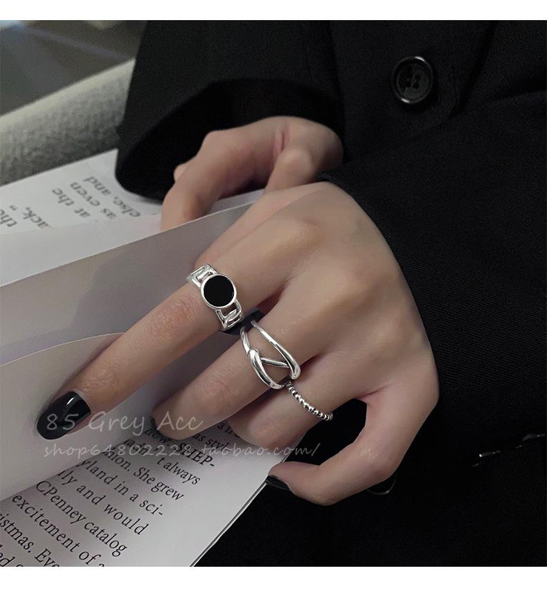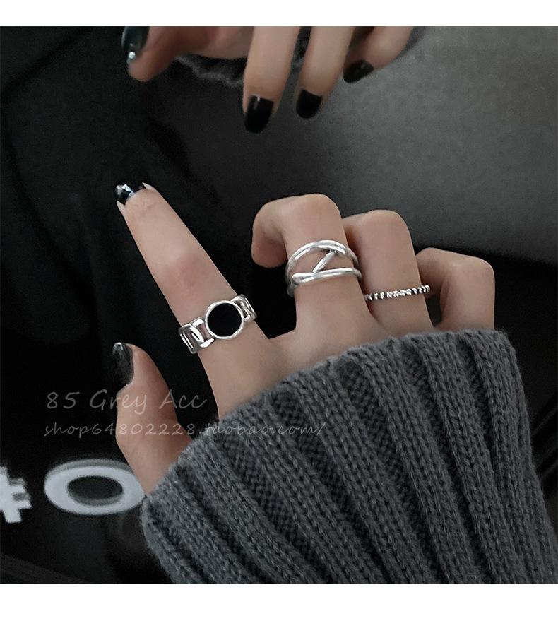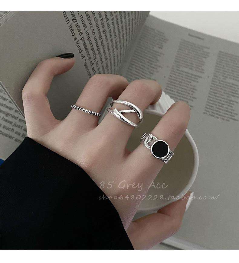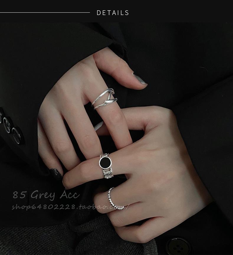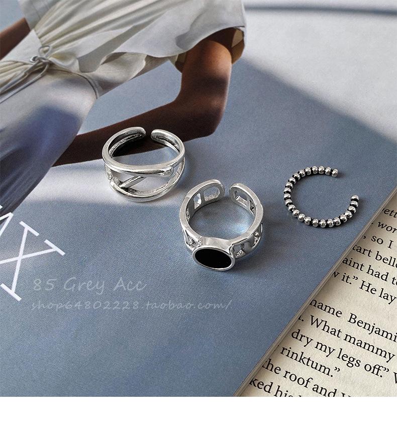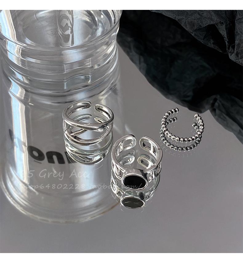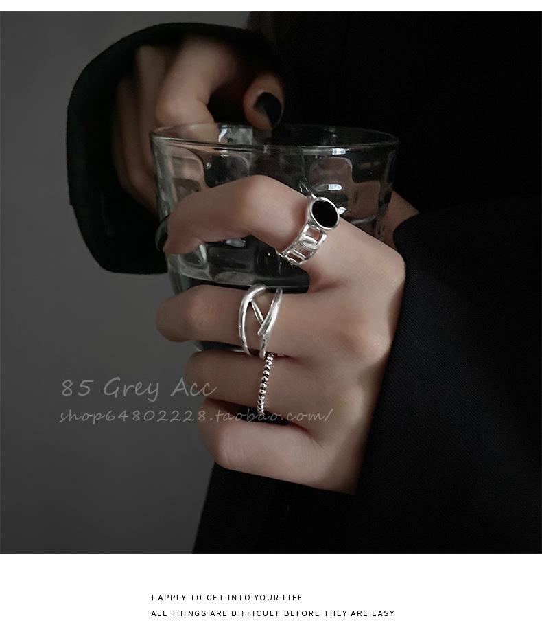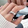 Anillo Apilado Hip Hop para Mujer Estilo Coreano Sentido del Diseño de Moda Plata S925 Cadena Geométrica Anillo Abierto para Dedo Niche Anillo para Dedo de Comida