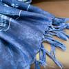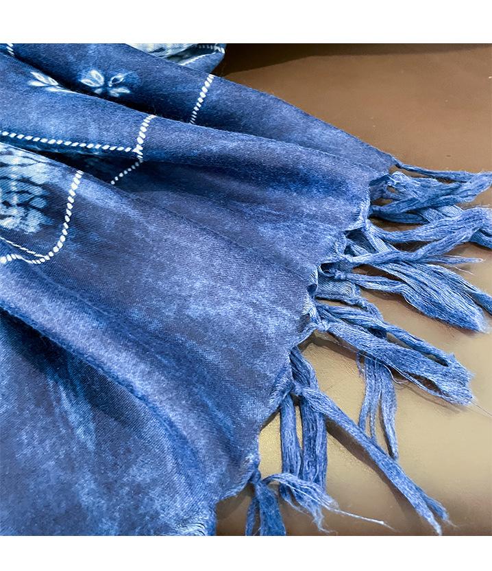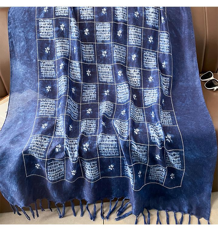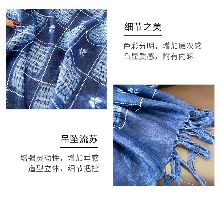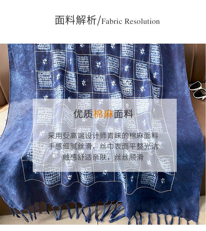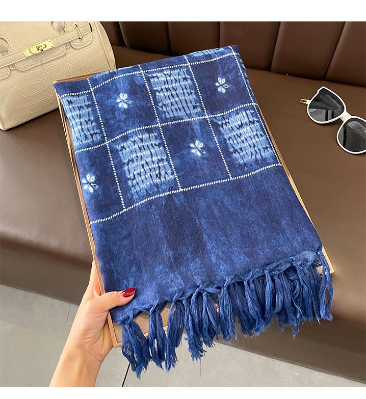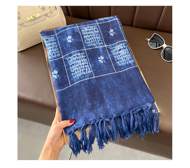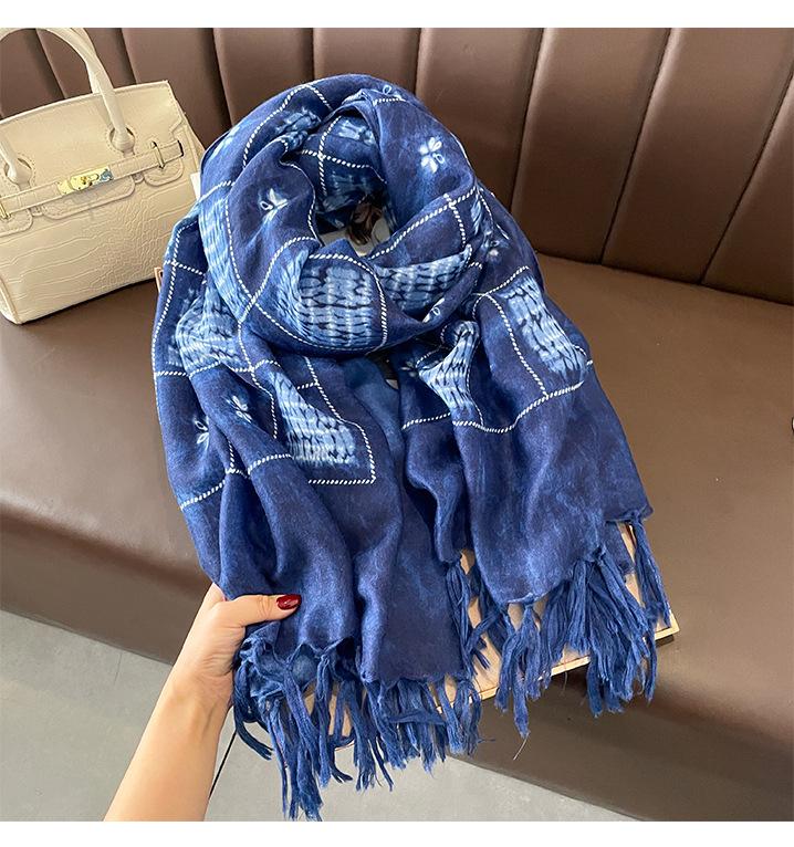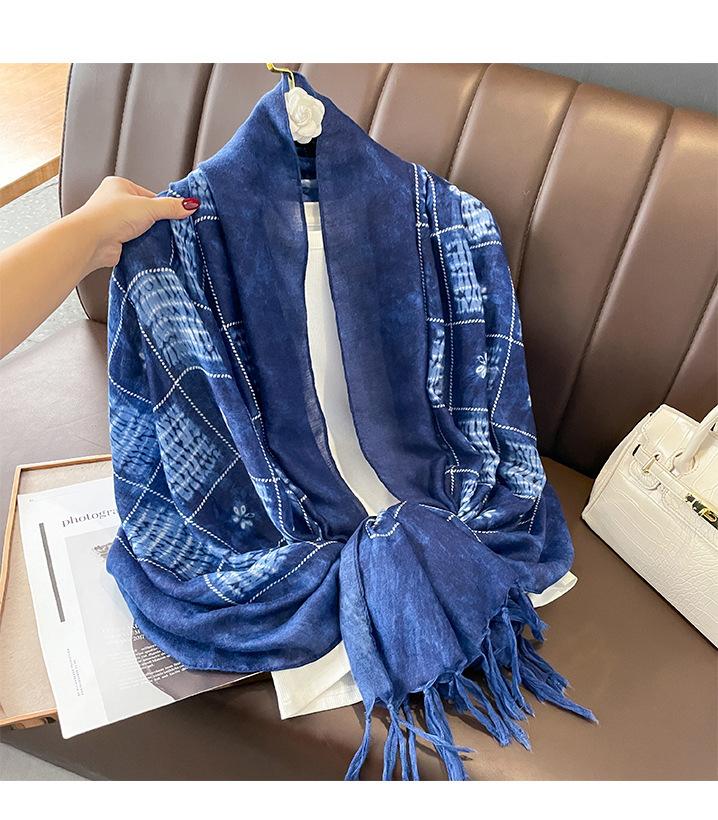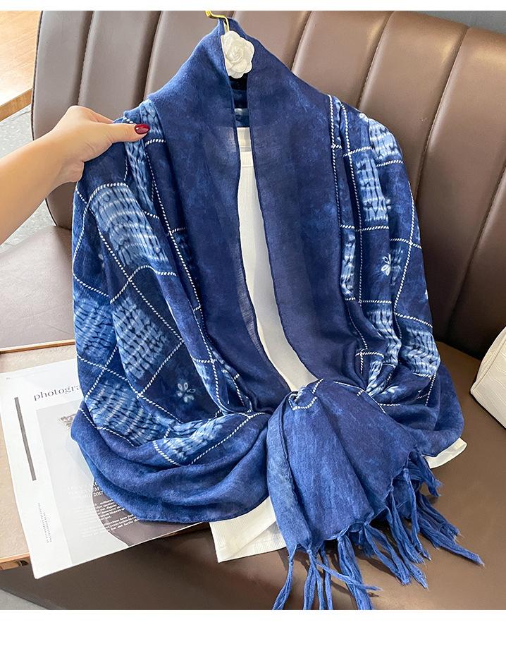 Bufanda larga fina de algodón y lino azul para mujer, con protección solar, combinable, de estilo occidental, cálida y de moda, de doble uso, para primavera y otoño.