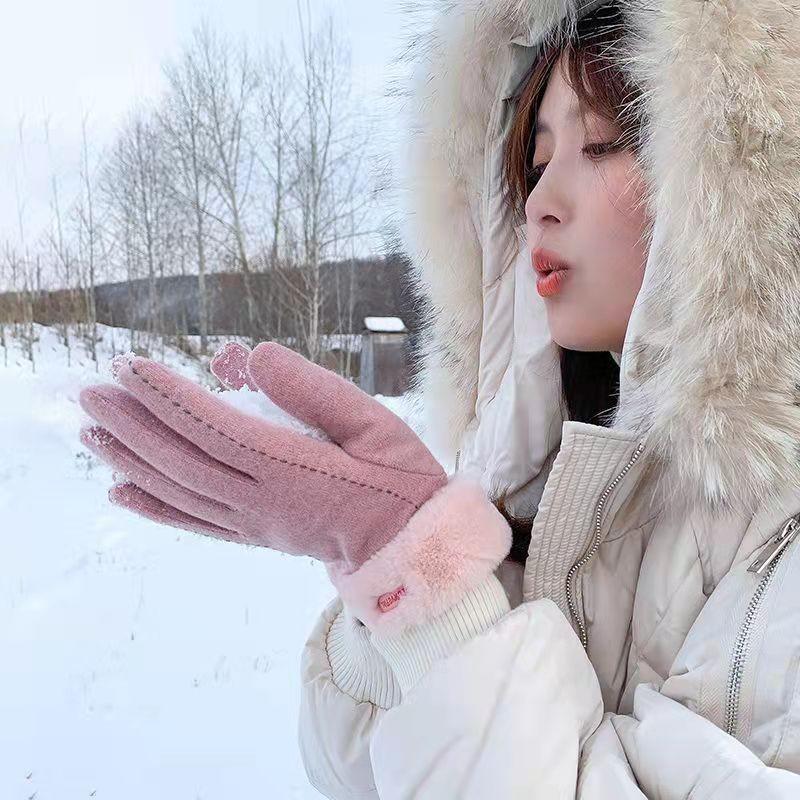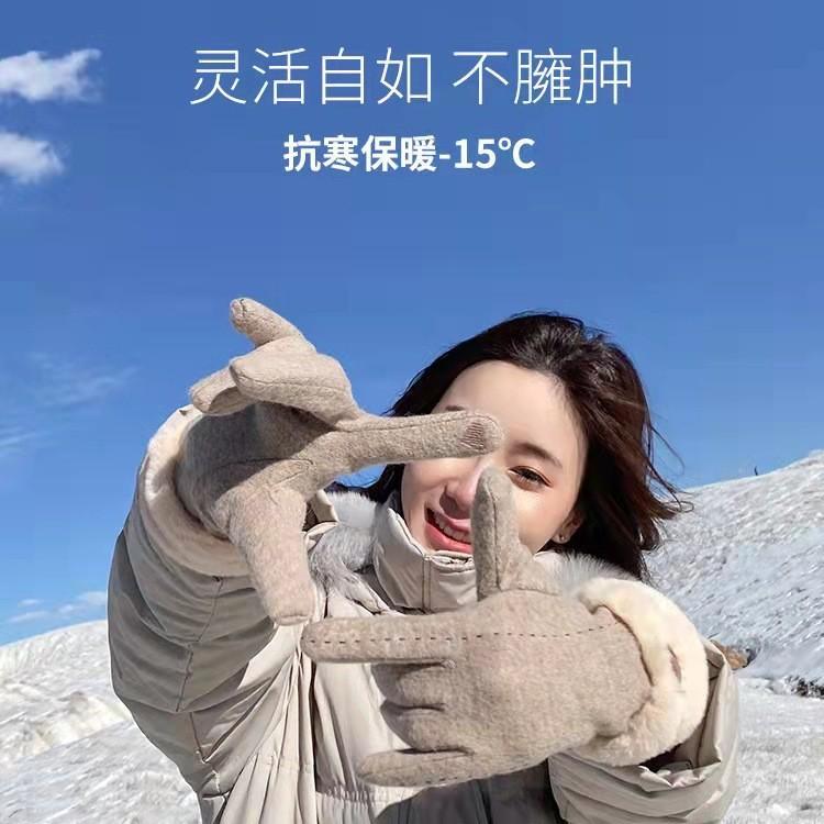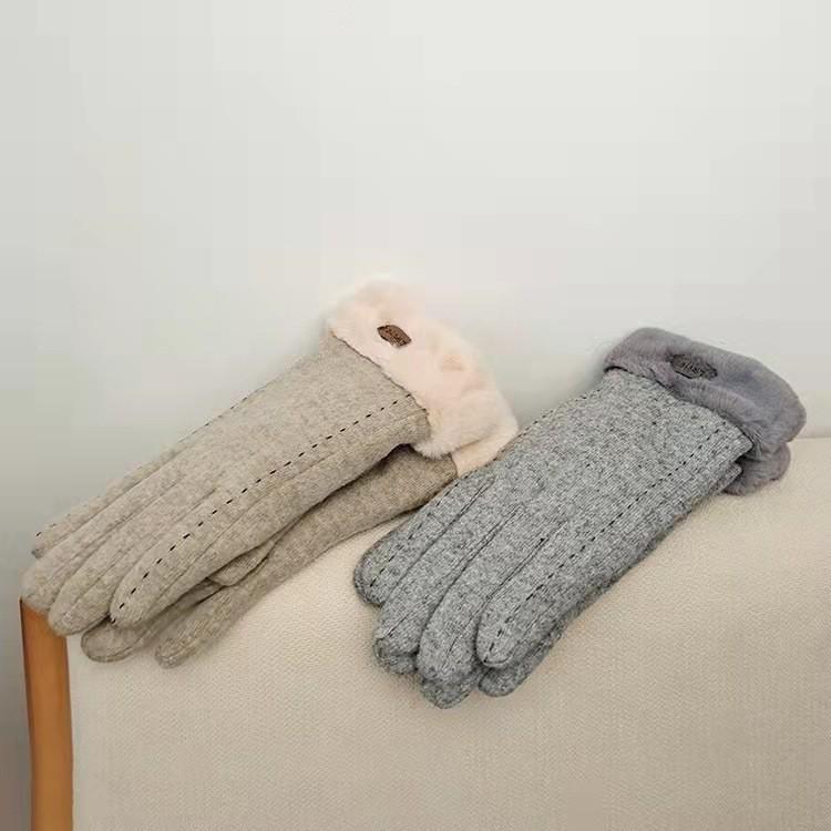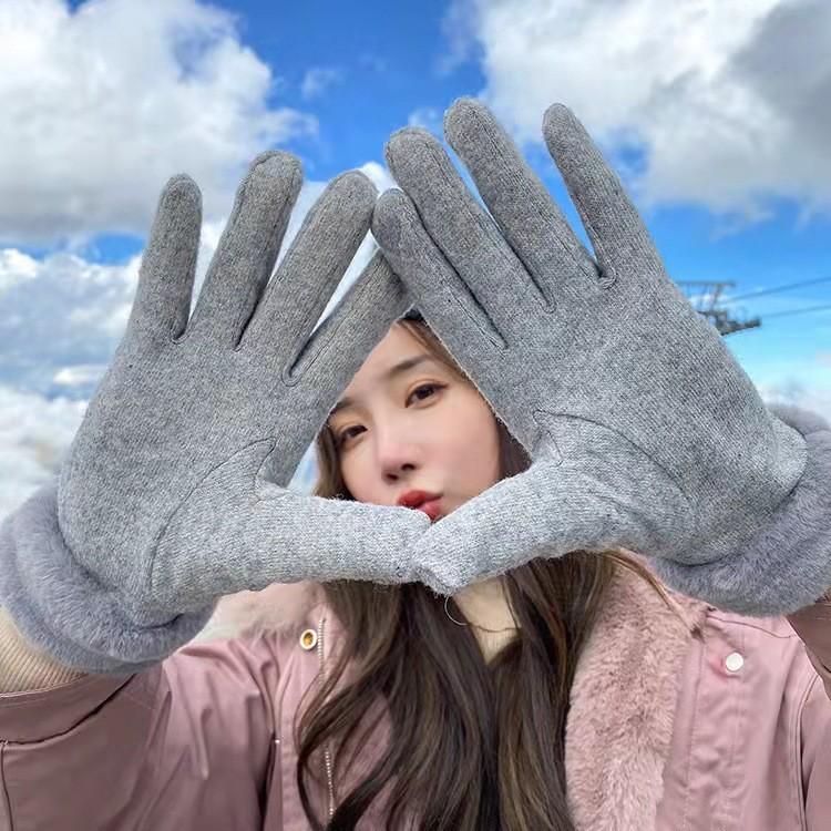 Guantes de Lana de Invierno Cachemira para Mujer Guantes de Piel de Conejo con Forro Polar Dedos Divididos Pantalla Táctil Cachemira Estudiante Ciclismo Guantes Cálidos
