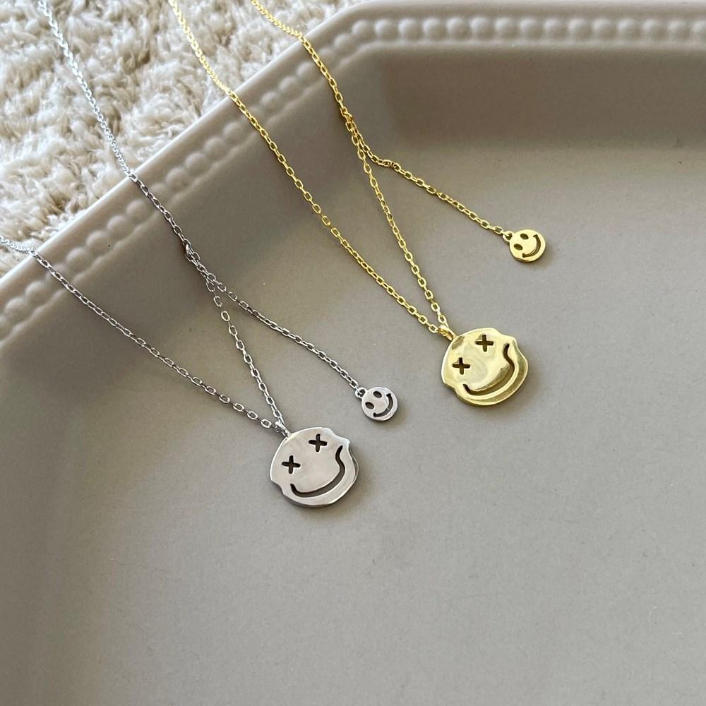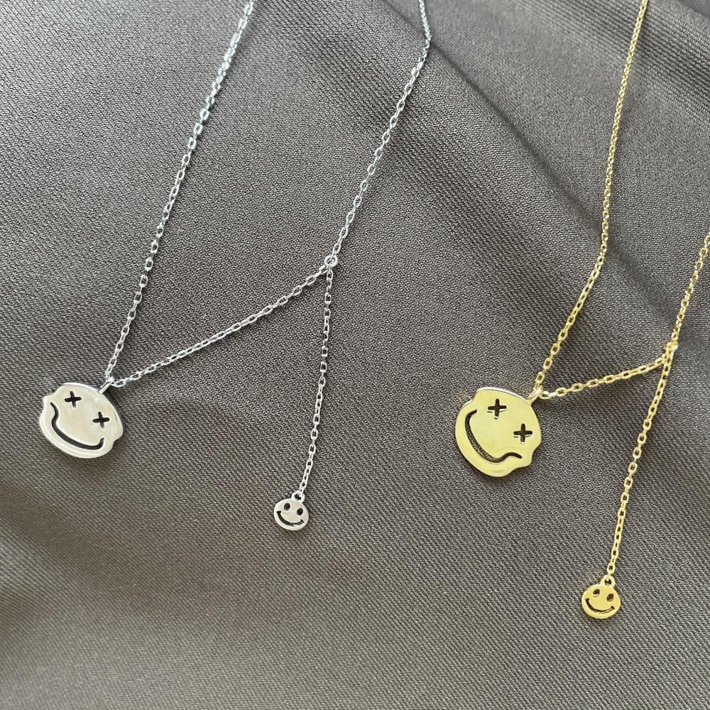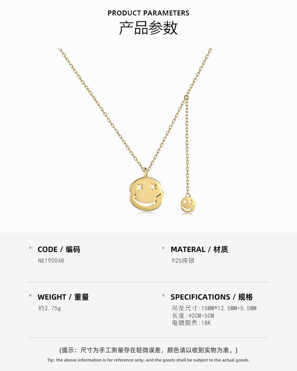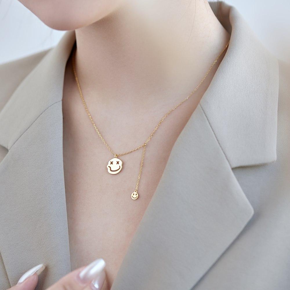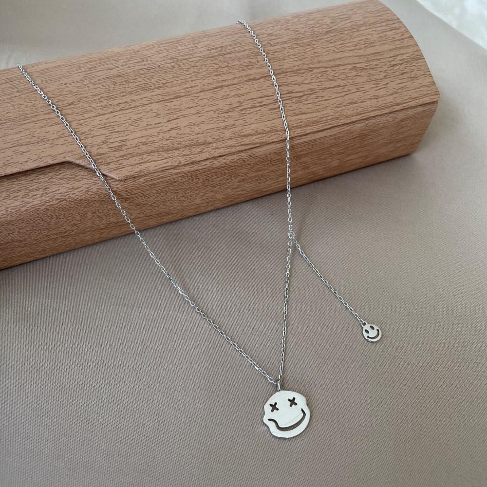Collar de plata de ley S925 de lujo ligero, estilo japonés y coreano, con diseño de sonrisa personalizada, estilo hip-hop sencillo, cadena de clavícula redonda para pareja.