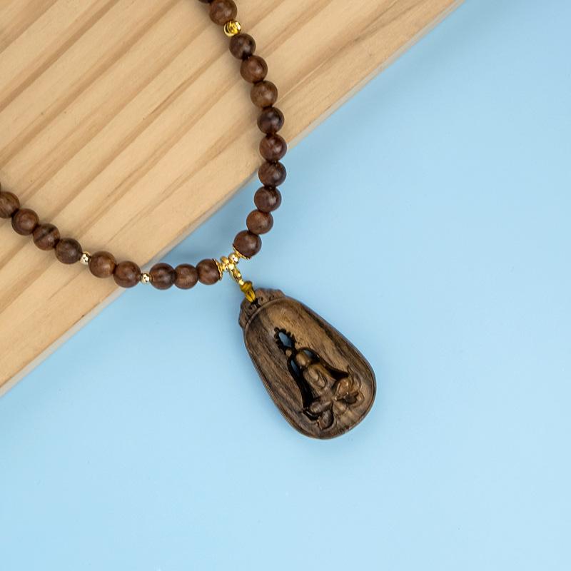 Collar de mujer con cadena de suéter y cuentas de jade hetiano de Buda de la iluminación de pera negra con aloe, juego Wen, suministro al por mayor
