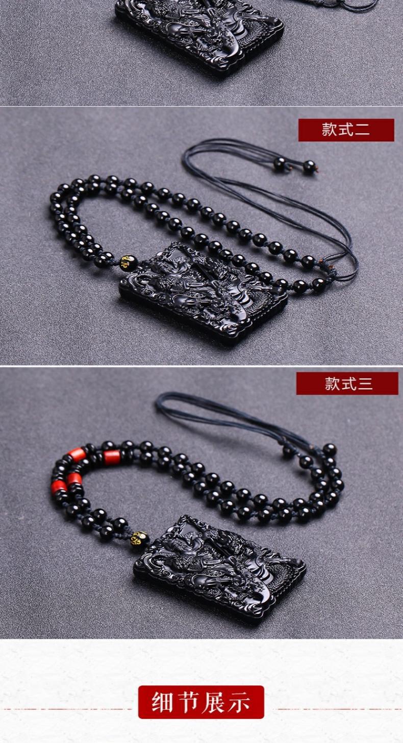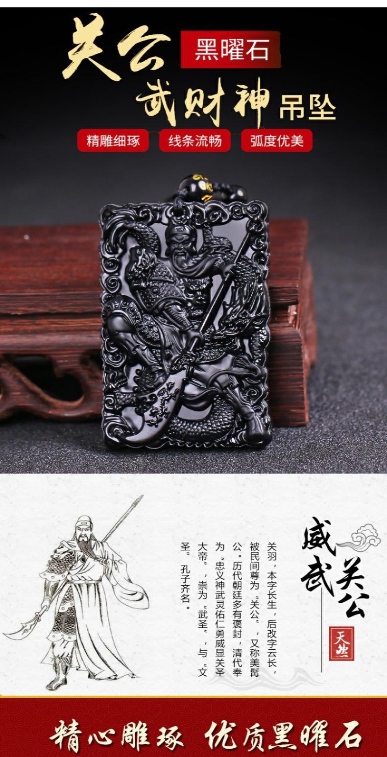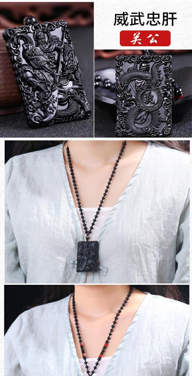 Doble cara tallada imitación obsidiana Guan Gong Zhongyi Wu Dios de la riqueza colgante collar Xianglong Guan Yu Guan Erye hombres