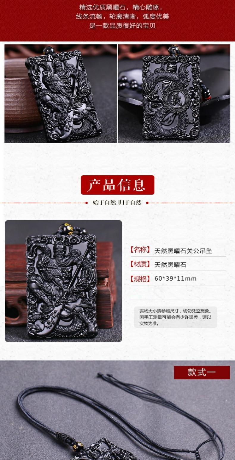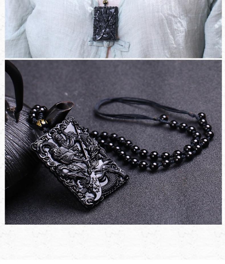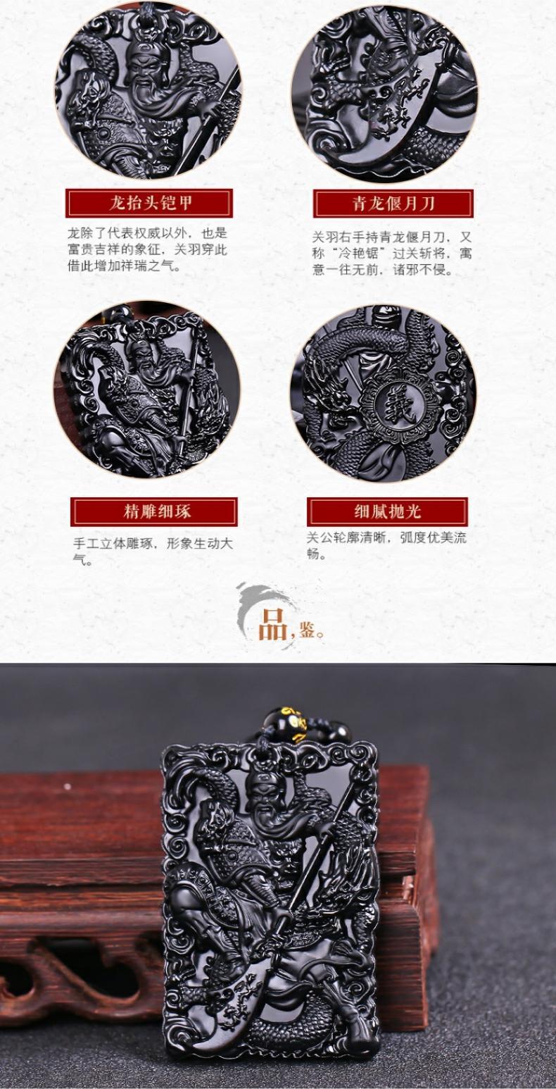 Doble cara tallada imitación obsidiana Guan Gong Zhongyi Wu Dios de la riqueza colgante collar Xianglong Guan Yu Guan Erye hombres