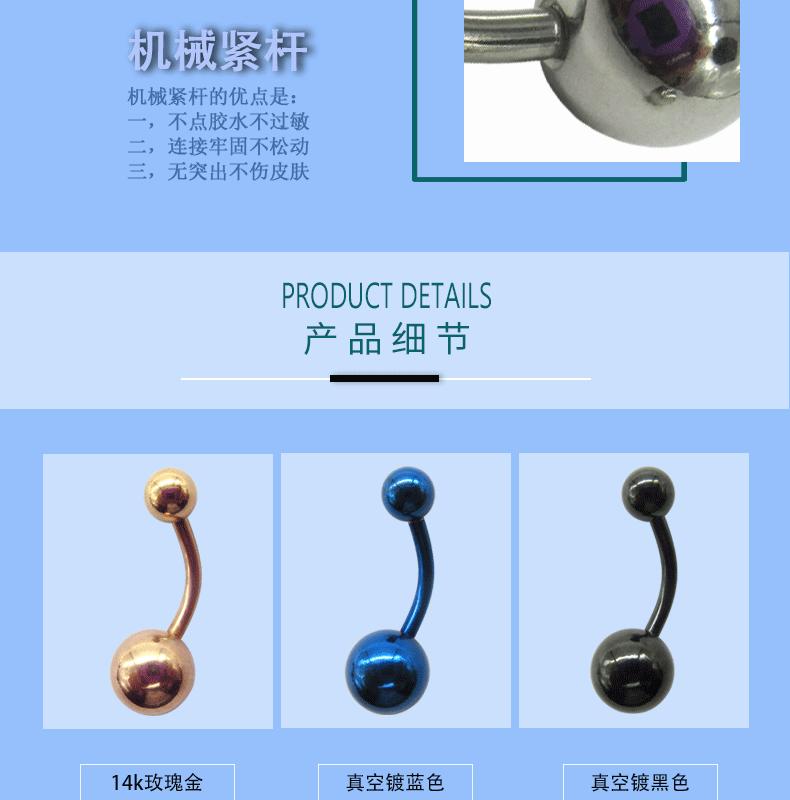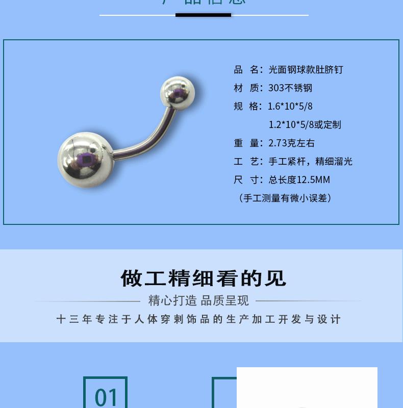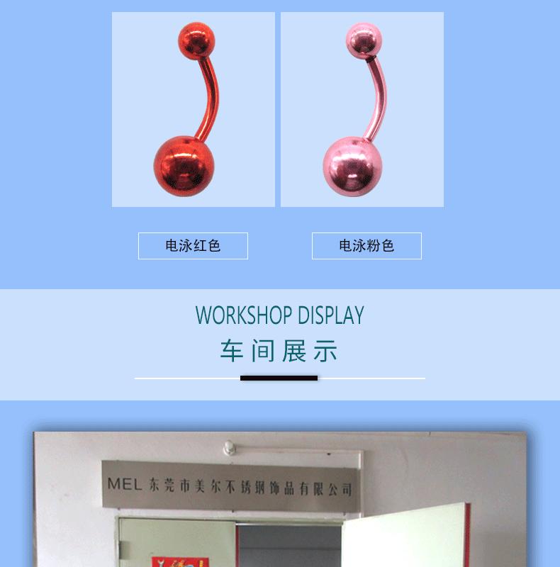 Meiqi acero inoxidable bola anillo para ombligo básico sin diamante uña para ombligo bola ligera joyería para piercing corporal para ombligo