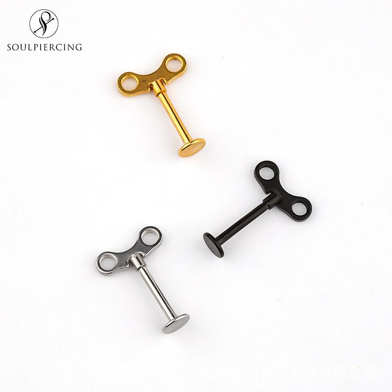 Nuevo piercing unisex transfronterizo para labio, uña, acero inoxidable, perforación, uña para nariz, anillo para nariz, tres colores, forma de T, joyería para piercing europea y americana