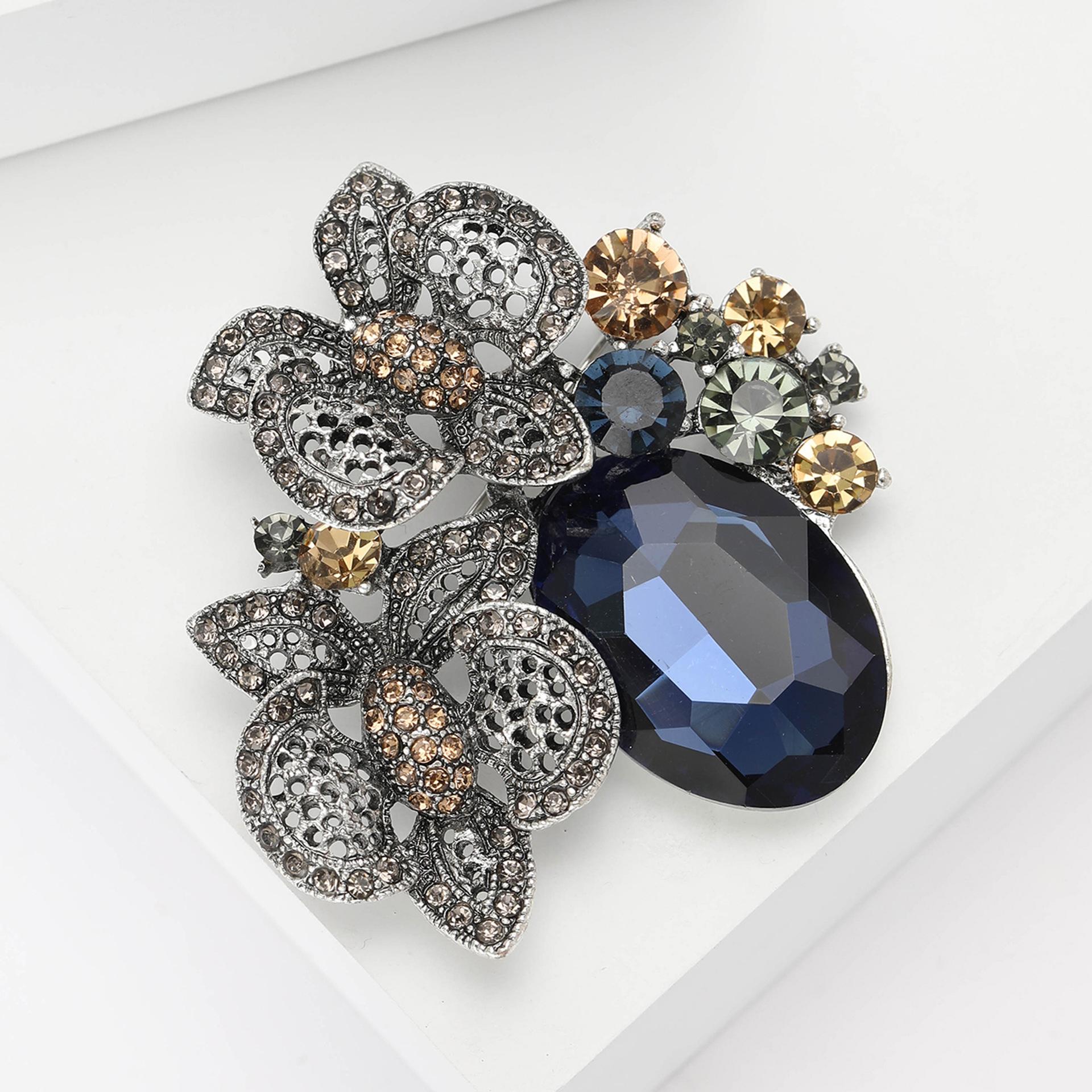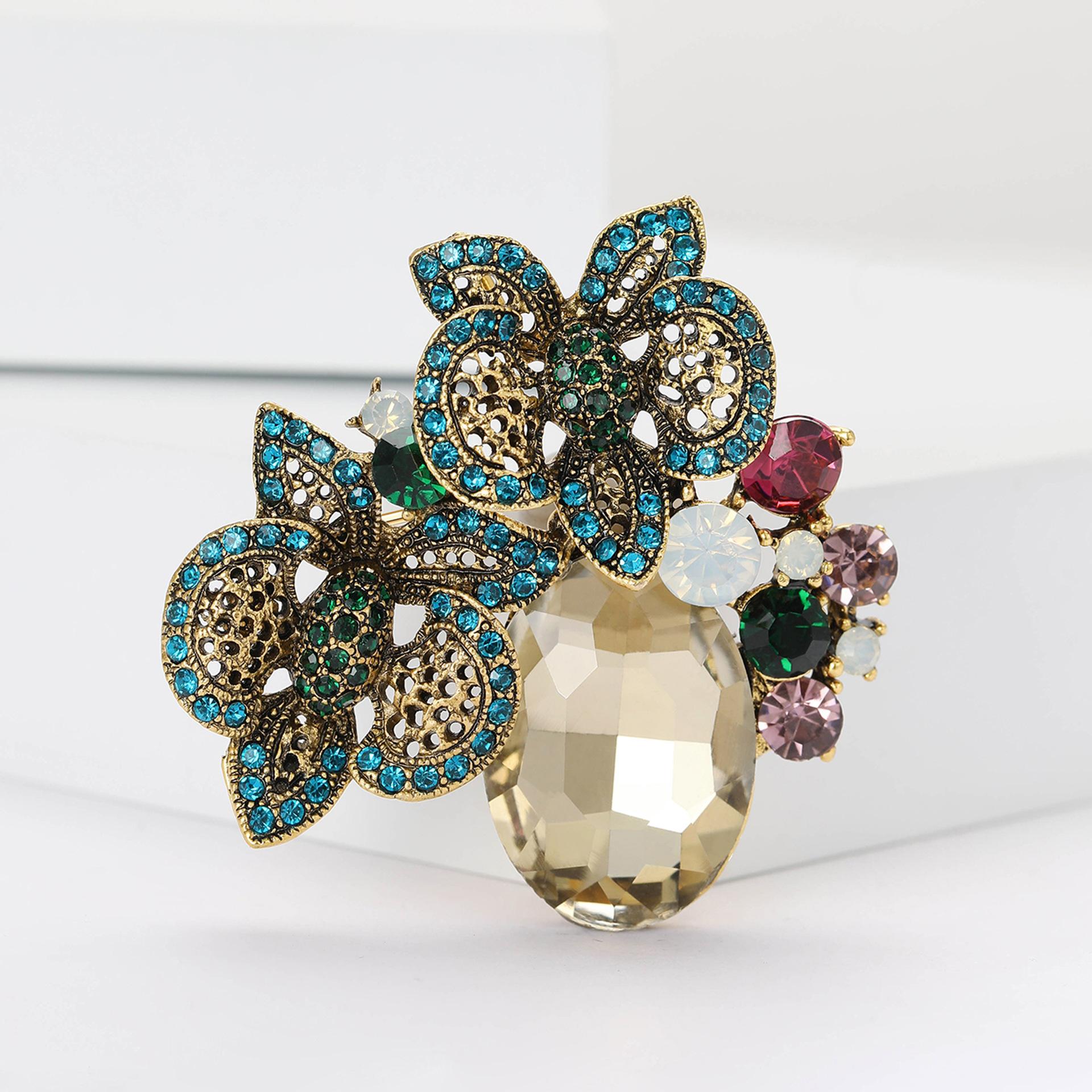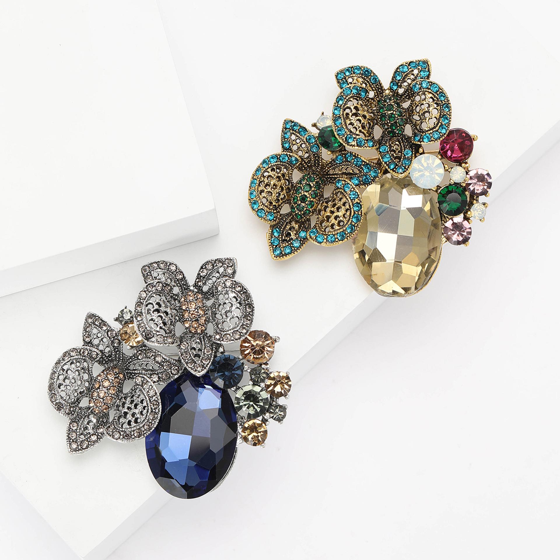 Broche de flor de diamantes de imitación de aleación vintage de moda europea y americana, exquisito broche de ramillete para chal de mujer, alfiler de joyería