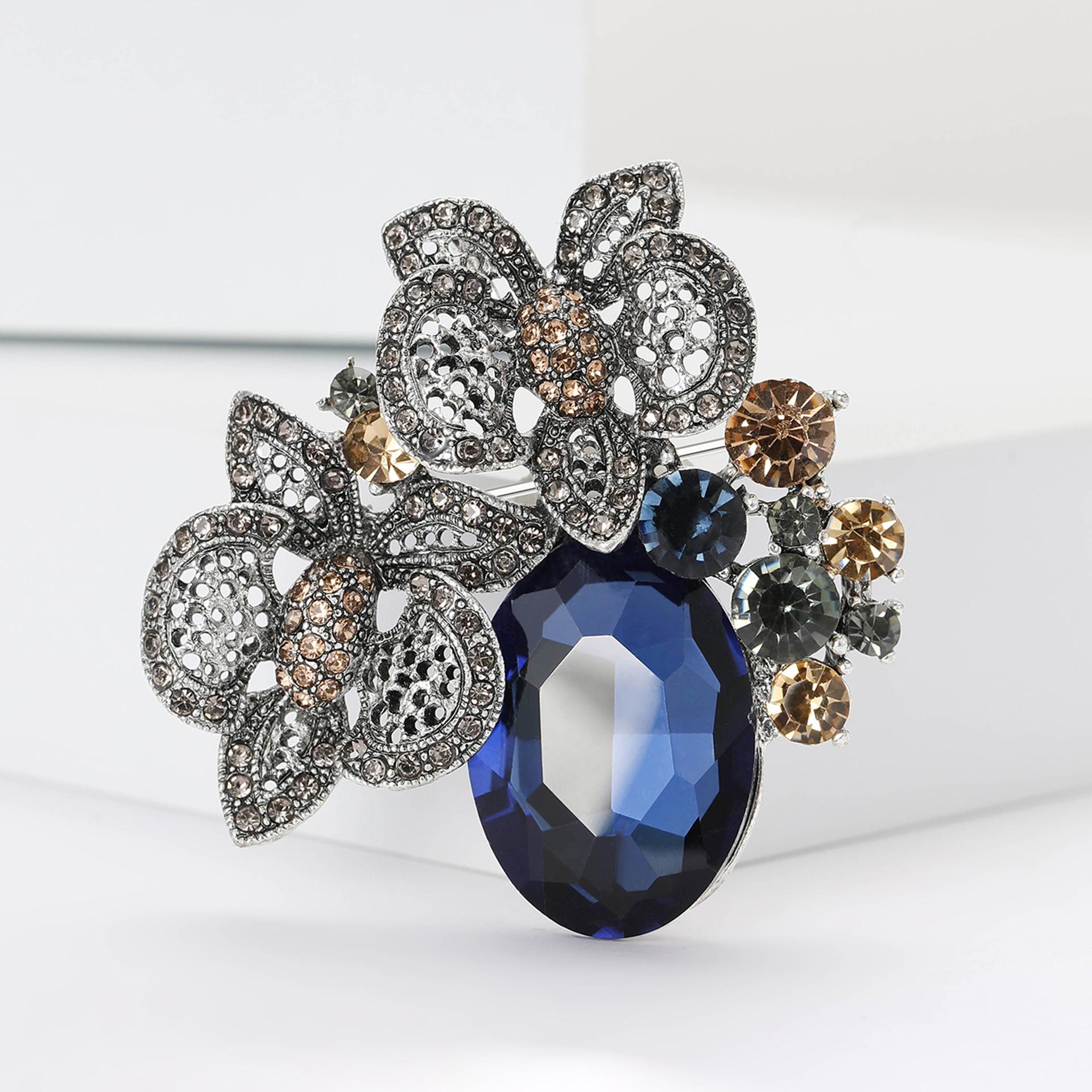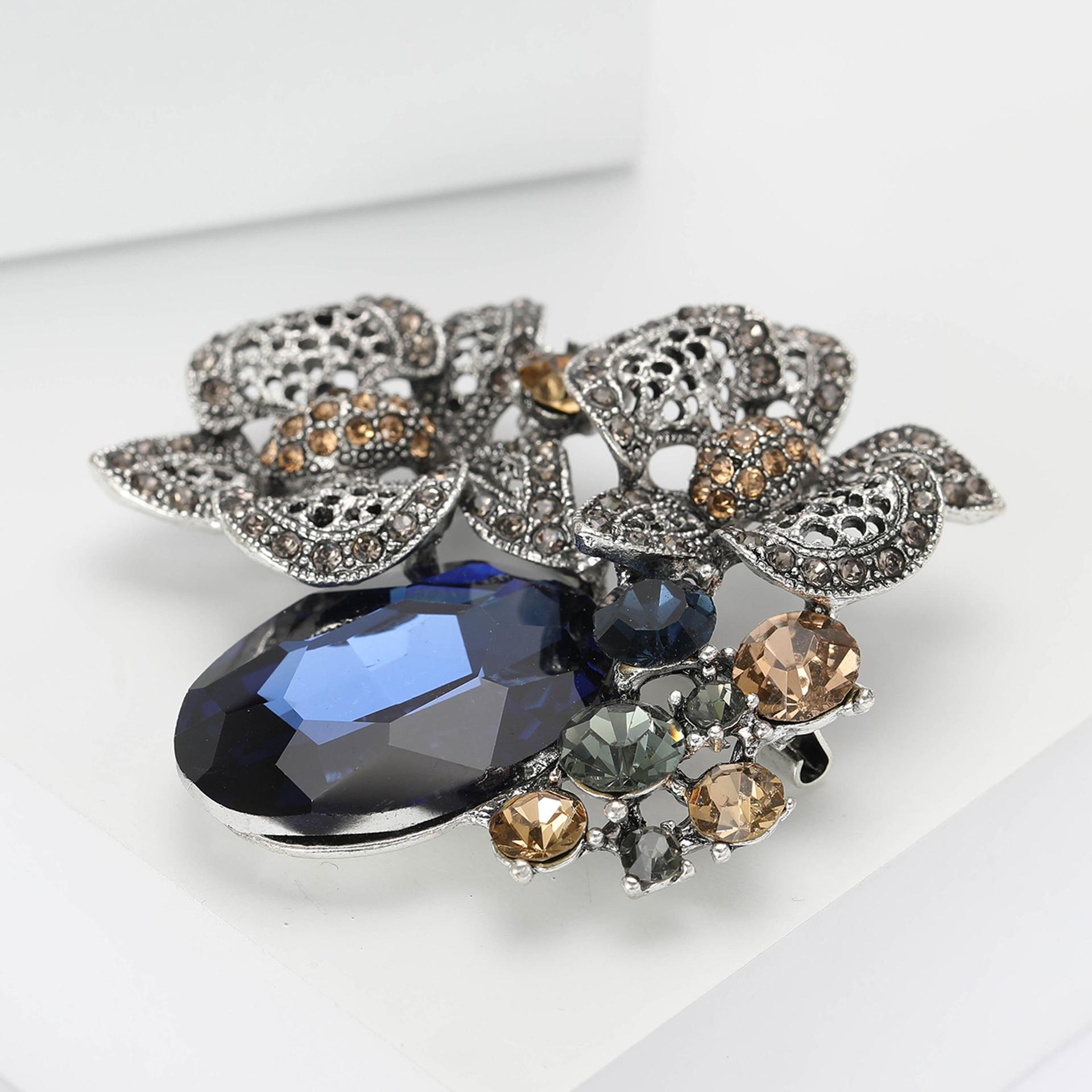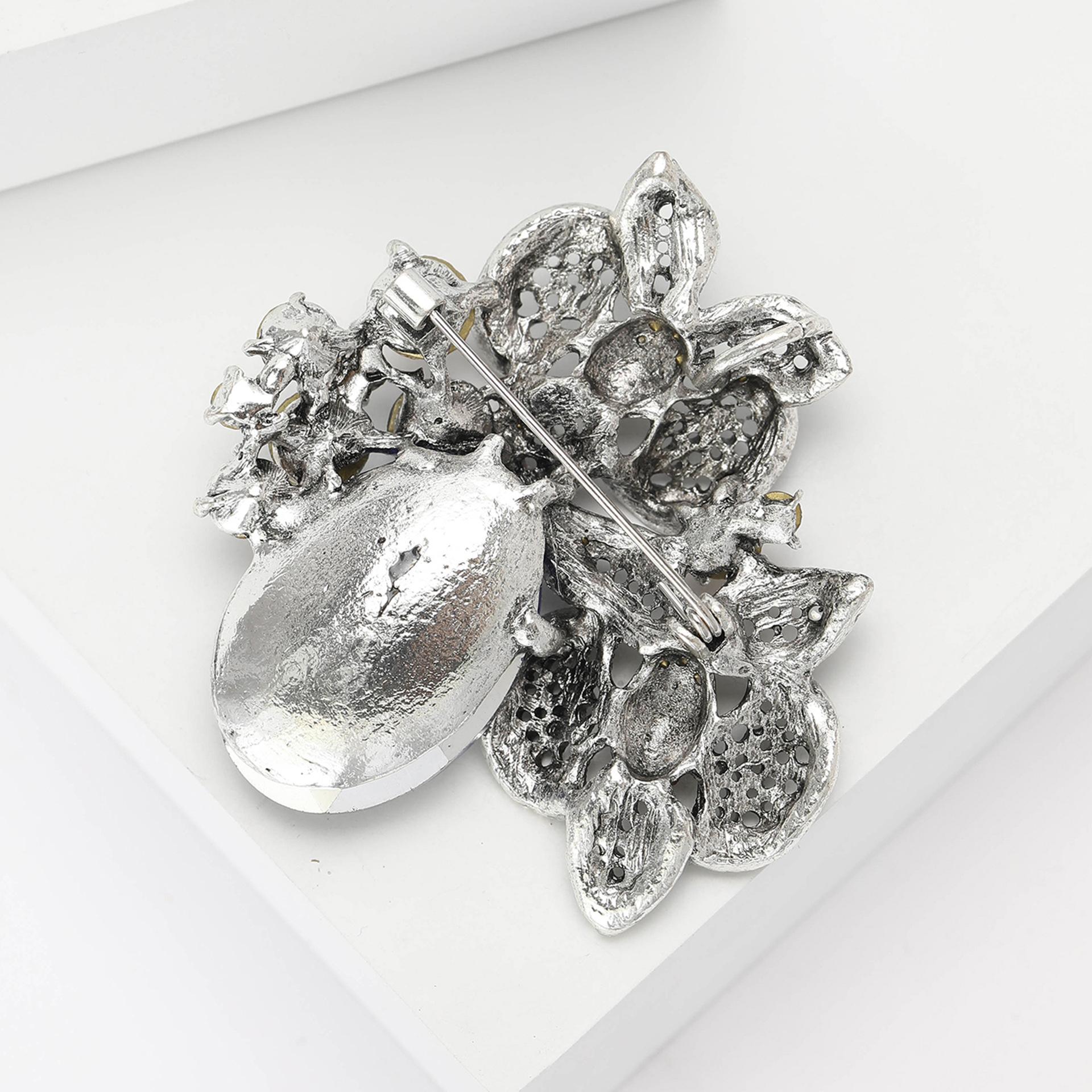 Broche de flor de diamantes de imitación de aleación vintage de moda europea y americana, exquisito broche de ramillete para chal de mujer, alfiler de joyería