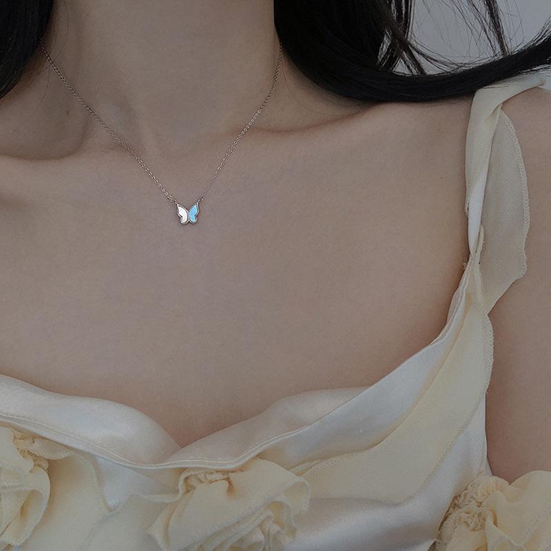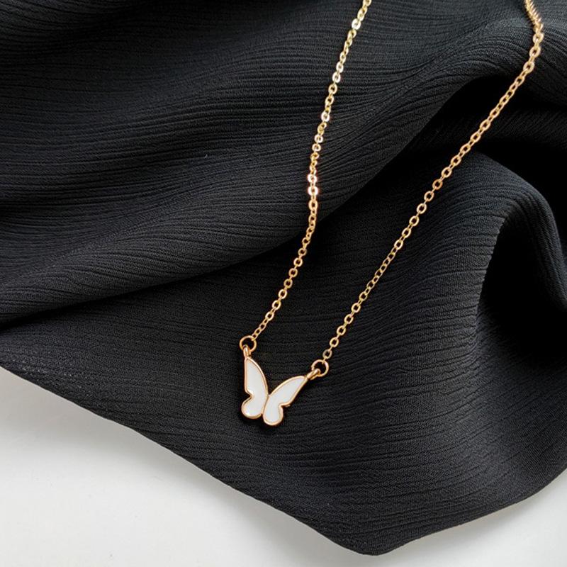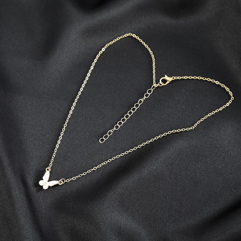 Collar de mariposa estilo europeo y americano con cadena de clavícula para mujer, estilo frío, elegante y sencillo, con cadena de clavícula y gota de aceite.