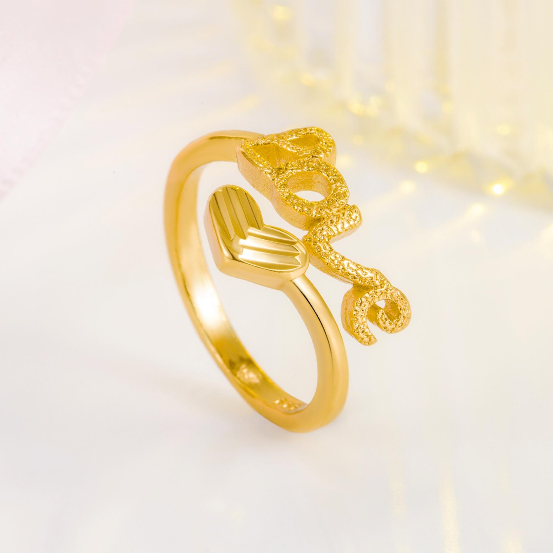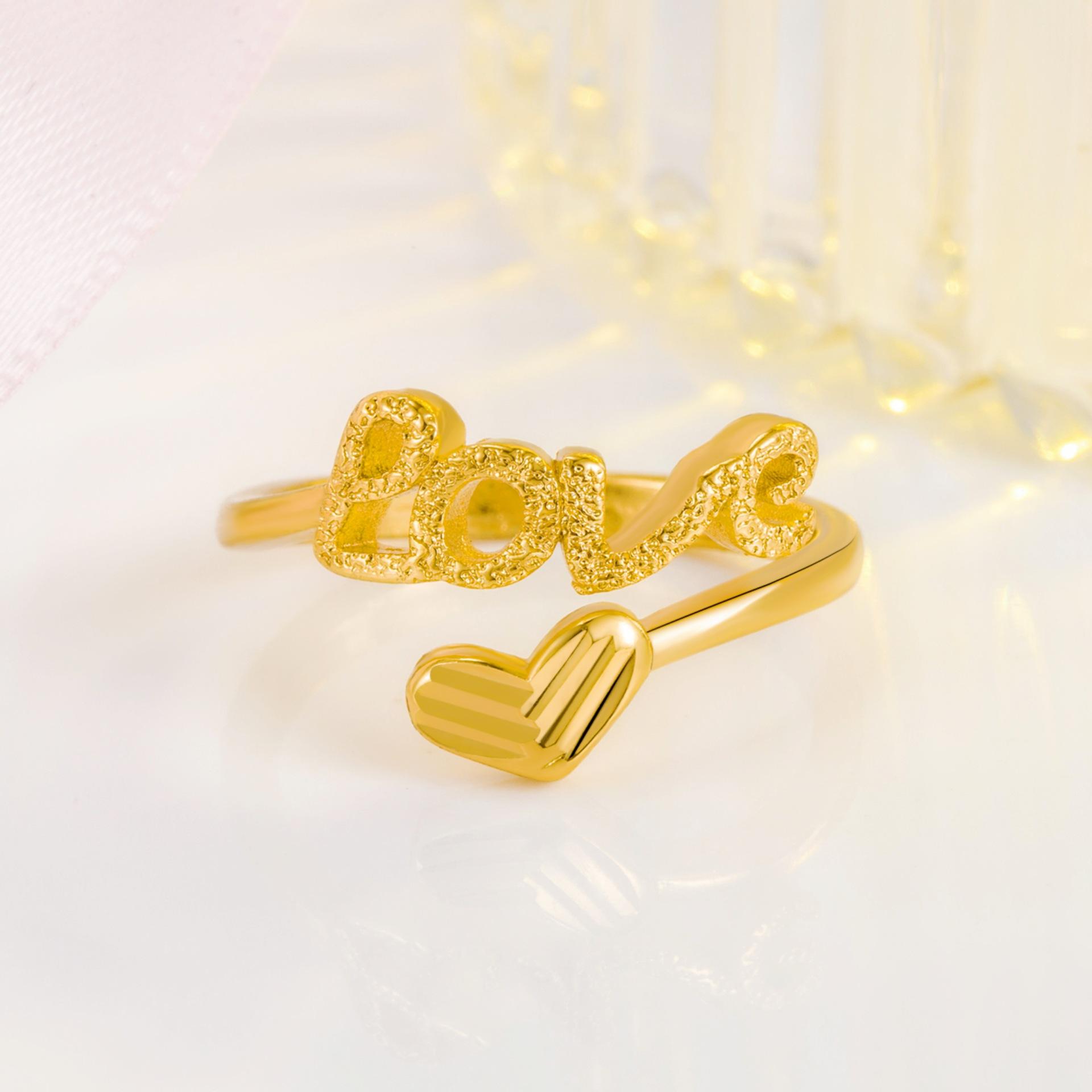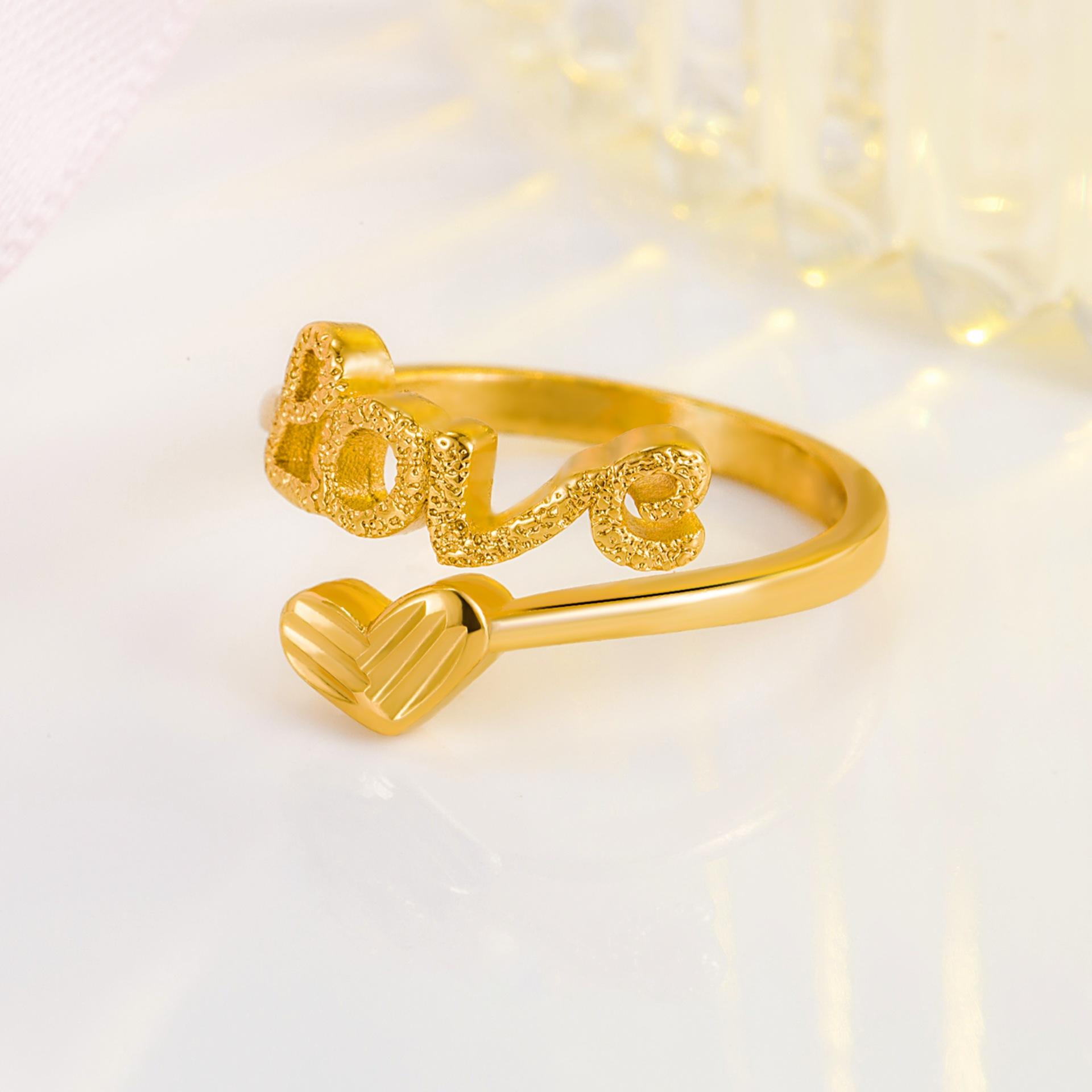 Anillo de Amor Chapado en Oro de Moda y Simple Anillo para Mujer Abierto Esmerilado Boca Viva Princesa en Forma de Corazón de Melocotón con Forma de Amor