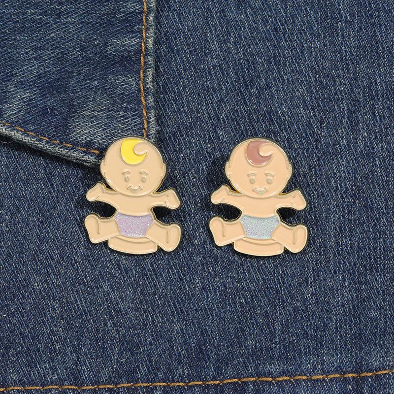 Insignia Transfronteriza Nuevo Dibujo Animado Hombrecito Divertido Estúpido Forma de Bebé Gemelo Broche de Metal Decoración