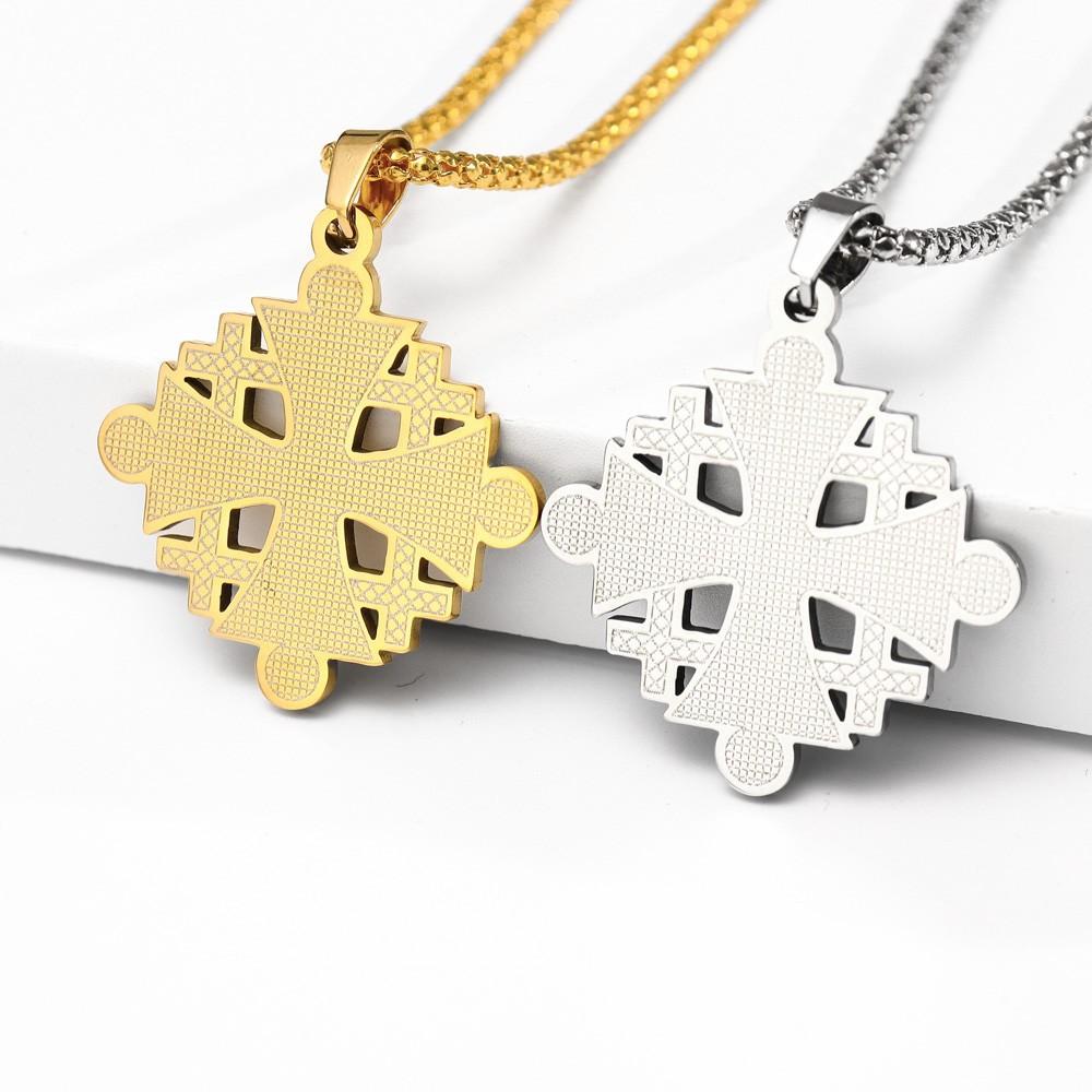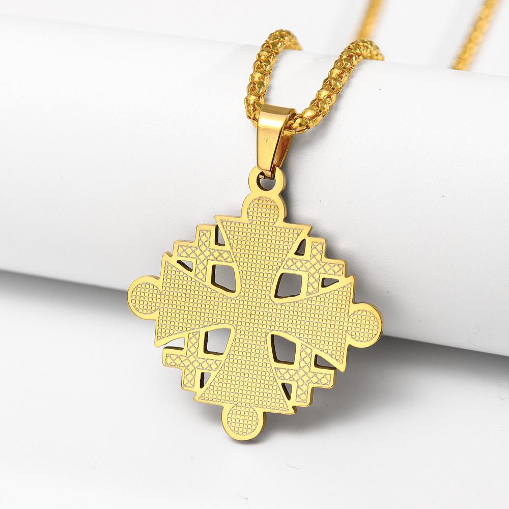 Collar con colgante de acero inoxidable en oferta de Temu, collar con colgante de cruz de Jerusalén y circonitas cúbicas