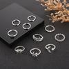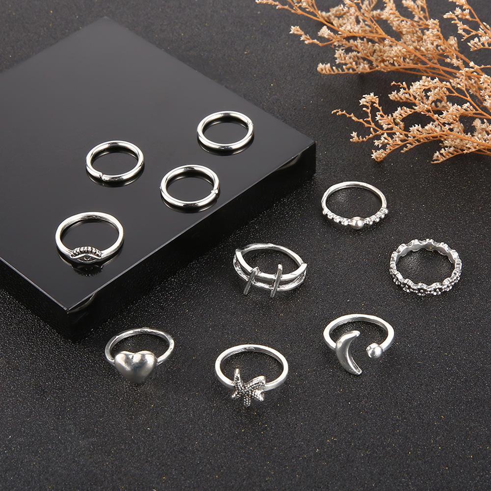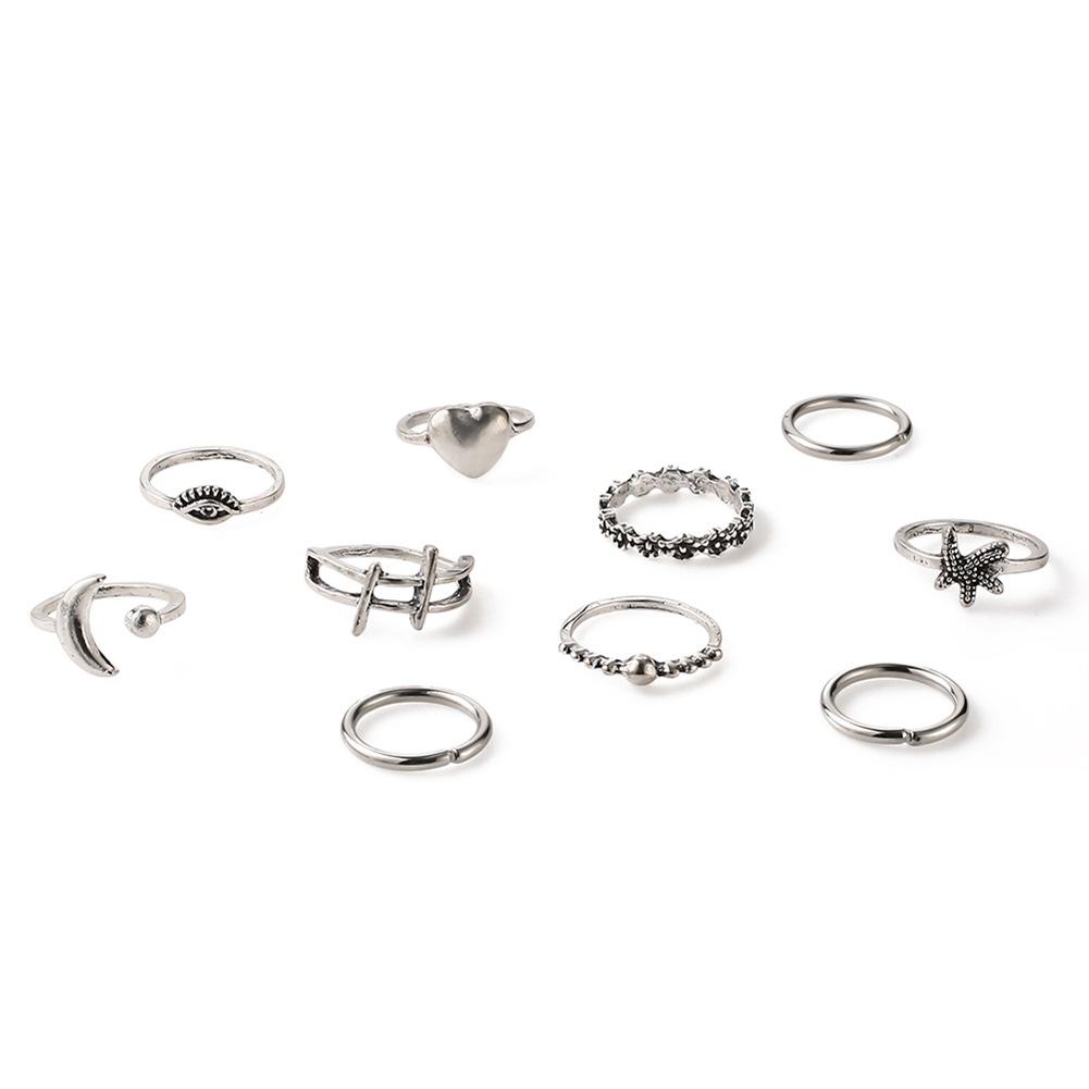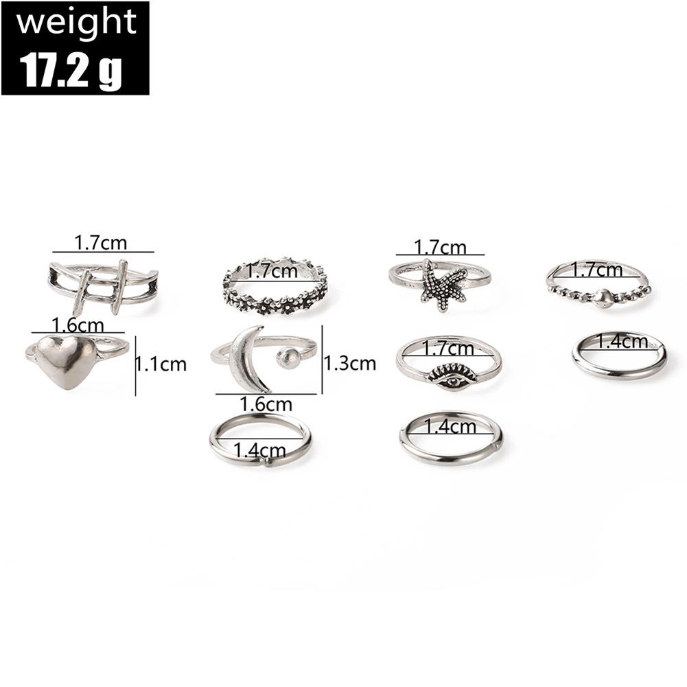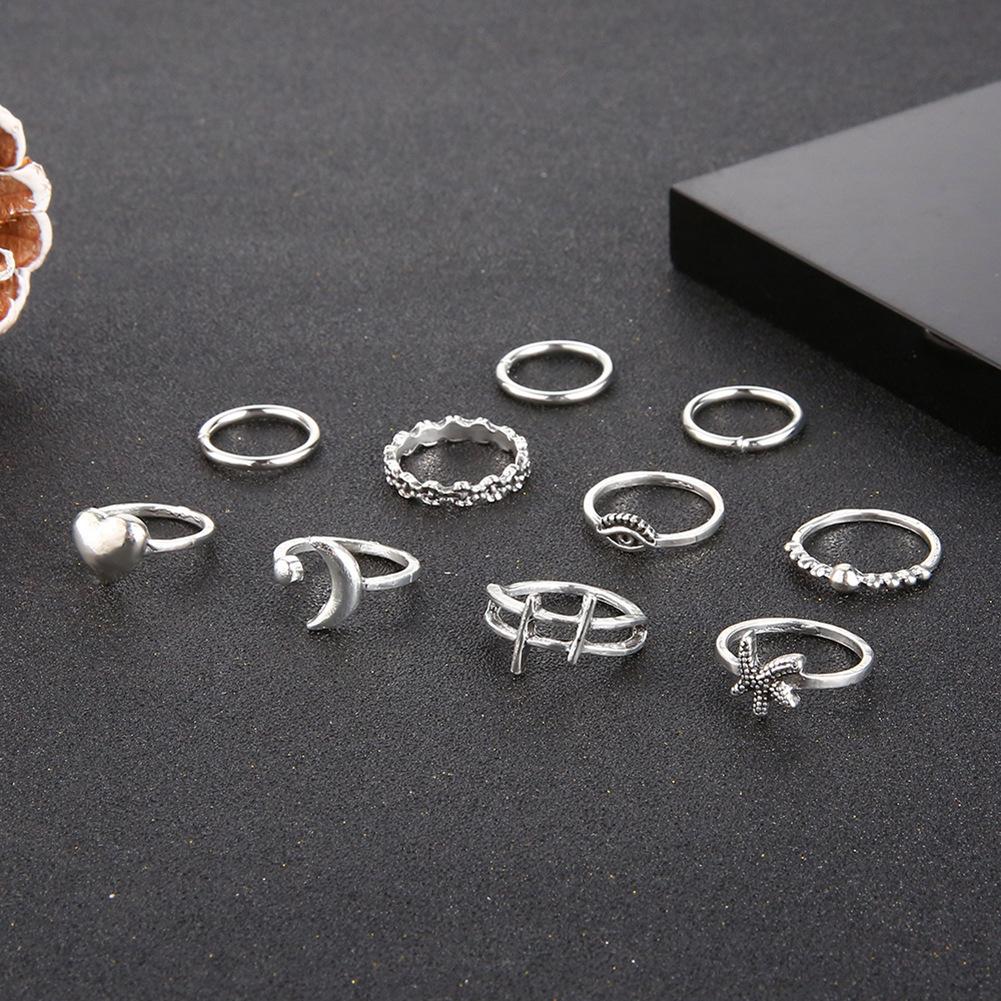 Anillo Europeo y Americano Bohemio Fenghai Xingmang Media Luna de 10 piezas Anillo Abierto de Doble H con Letra Inglesa
