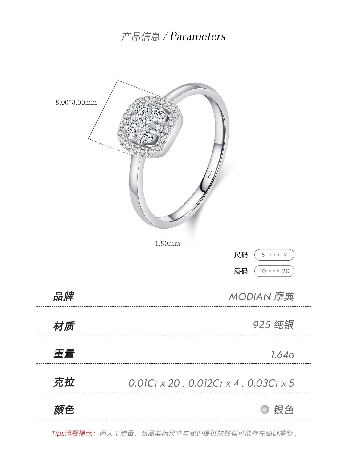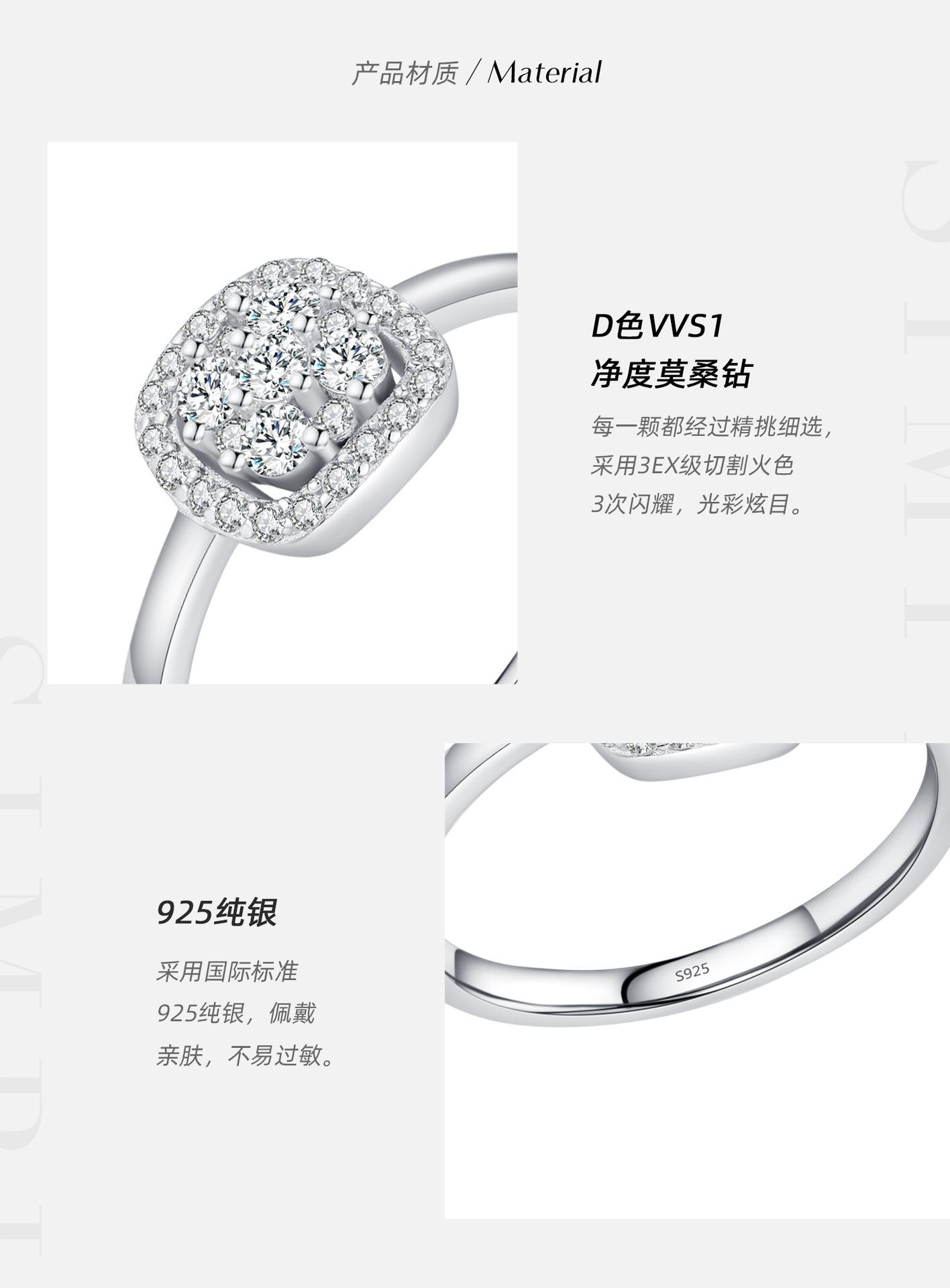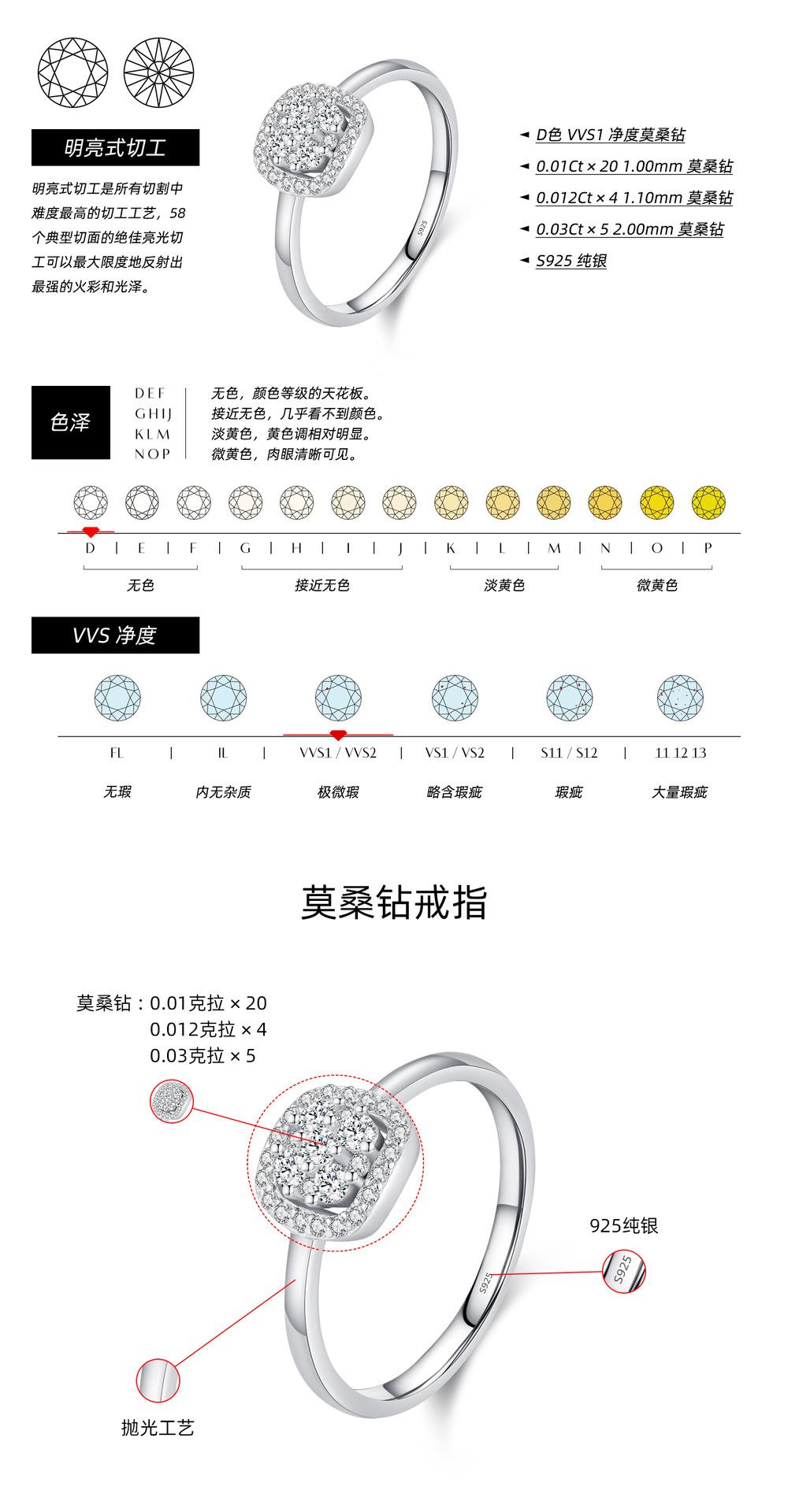 Modian Moissanita Plata Esterlina S925 Super Flash Anillo de Diamantes Completo Lujo Accesible Elegante Alta Gama Compromiso Anillo de Diamantes para Mujer